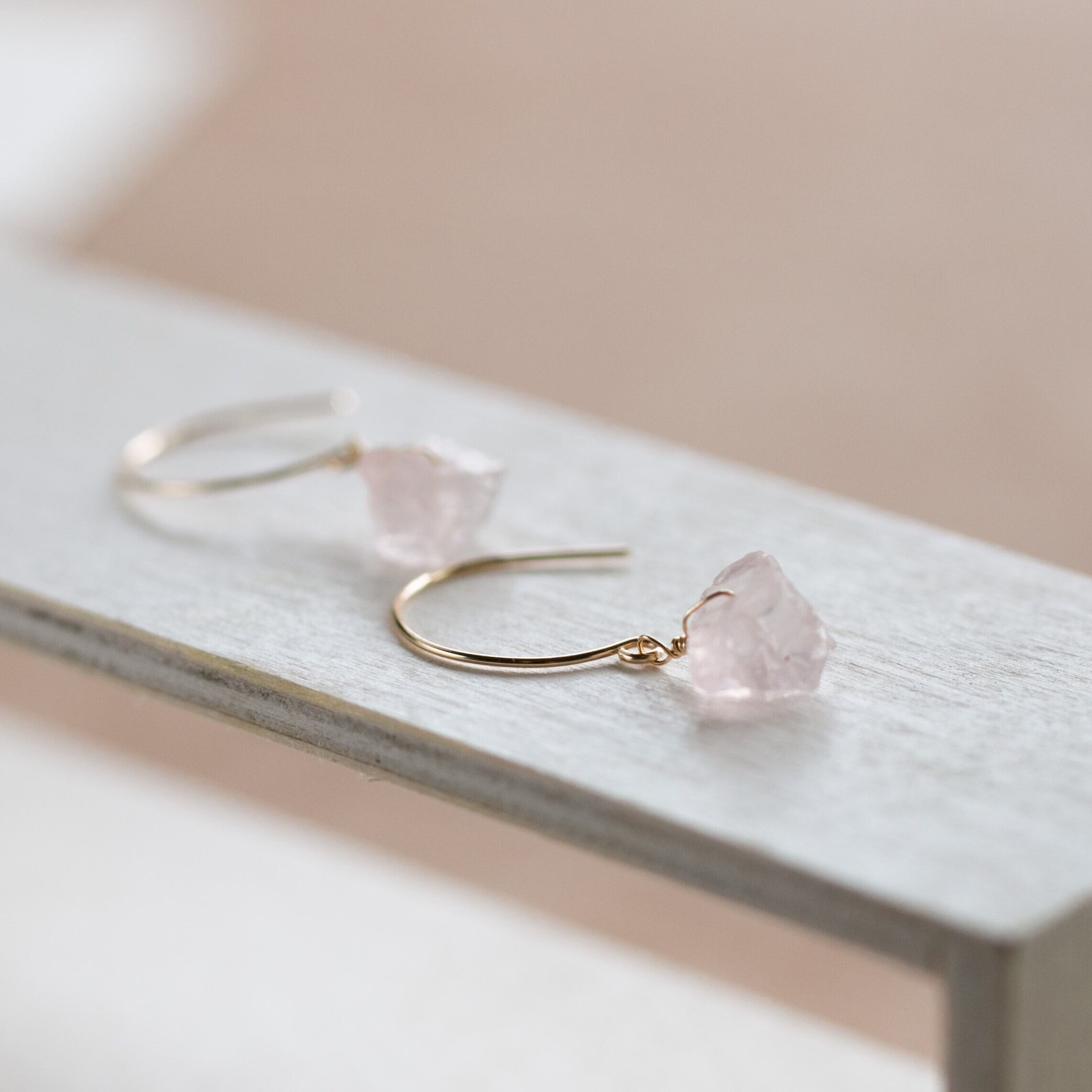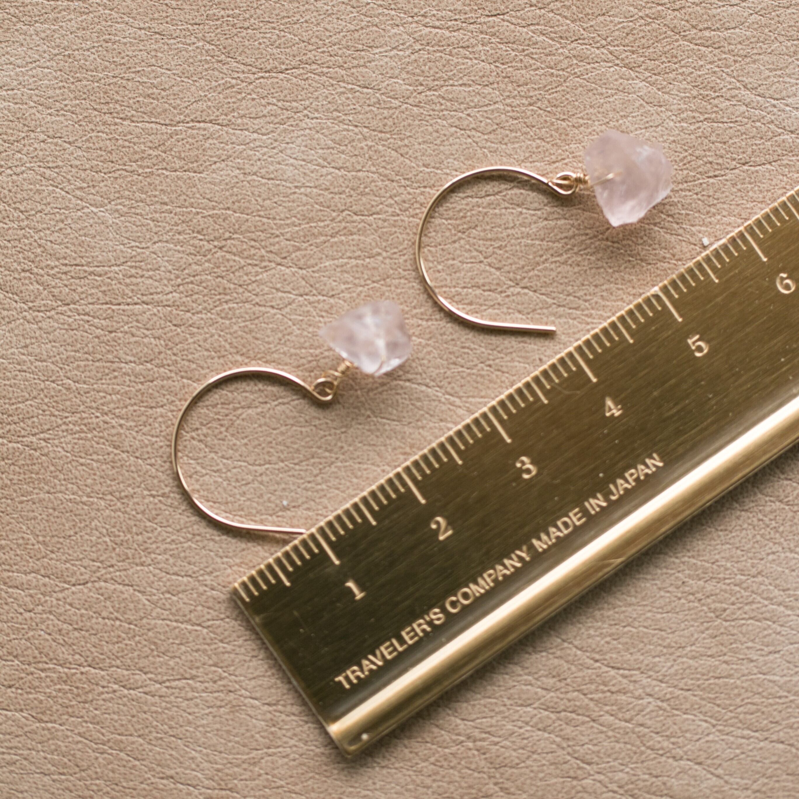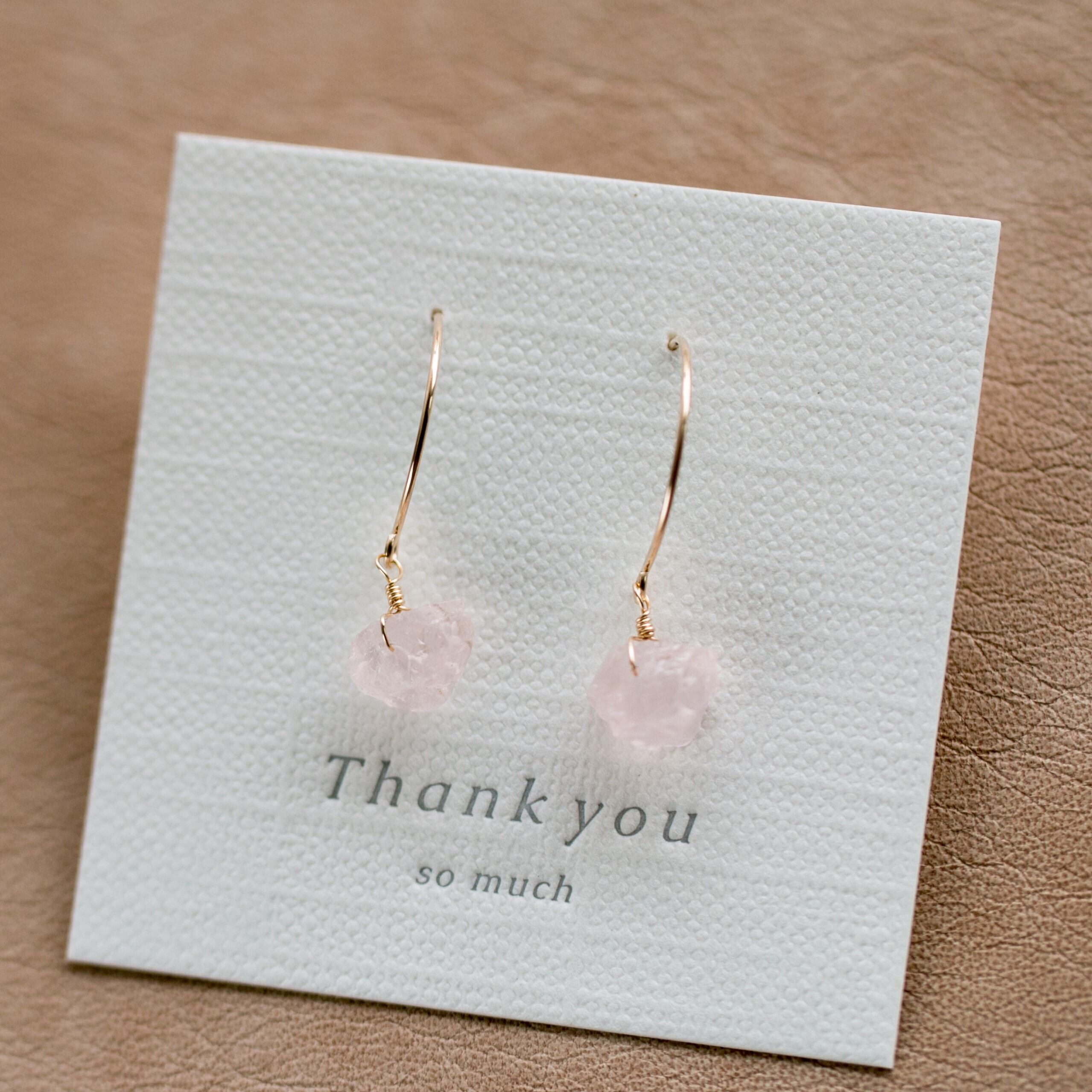 レア☆ローズクォーツ原石ラフカットAAA★ラウンドフックピアス☆14kgf☆イヤリング変更無料!