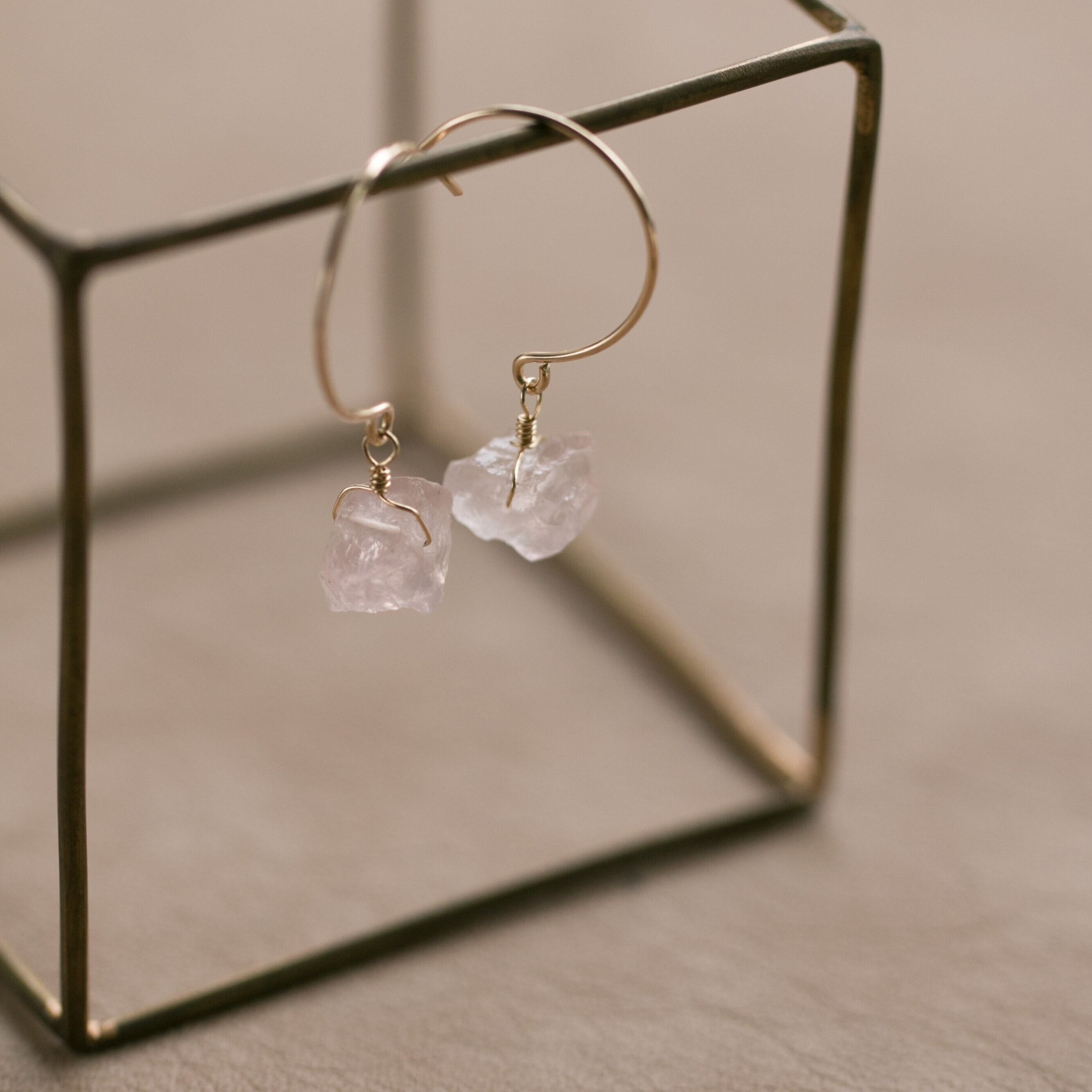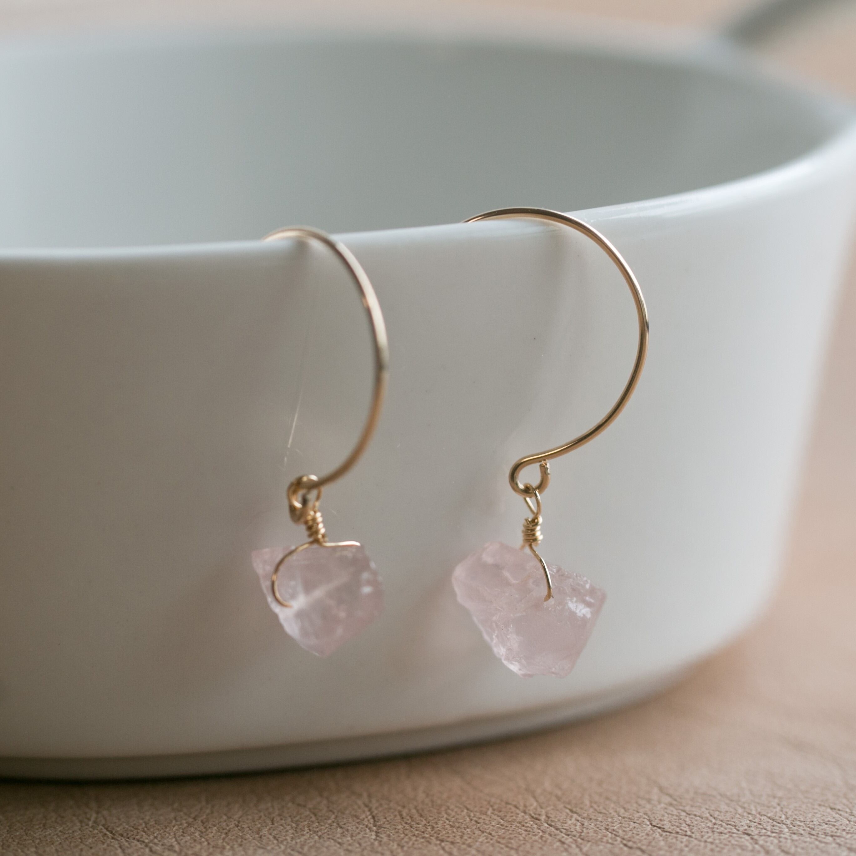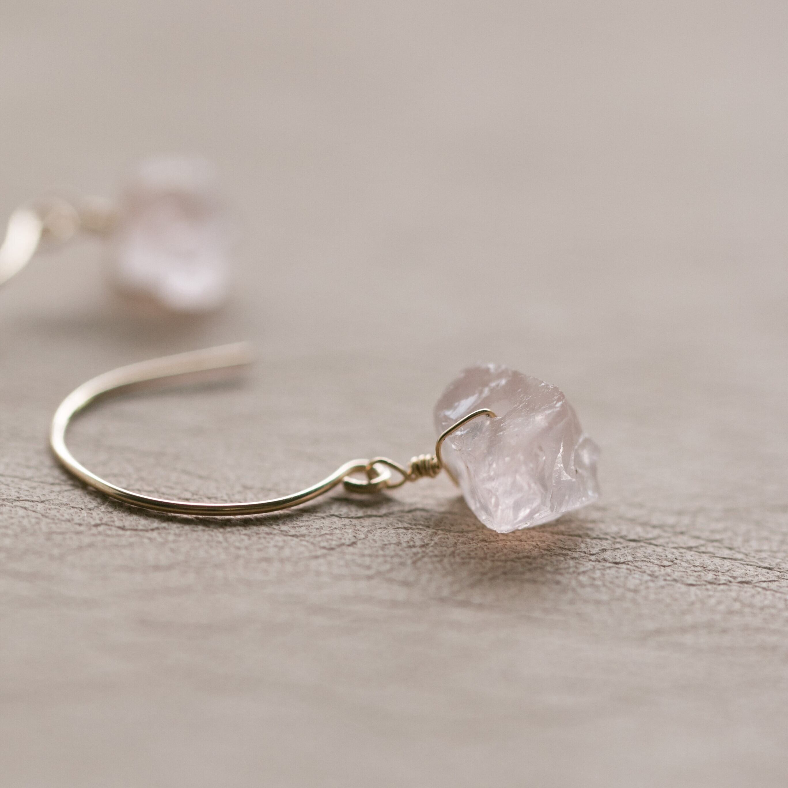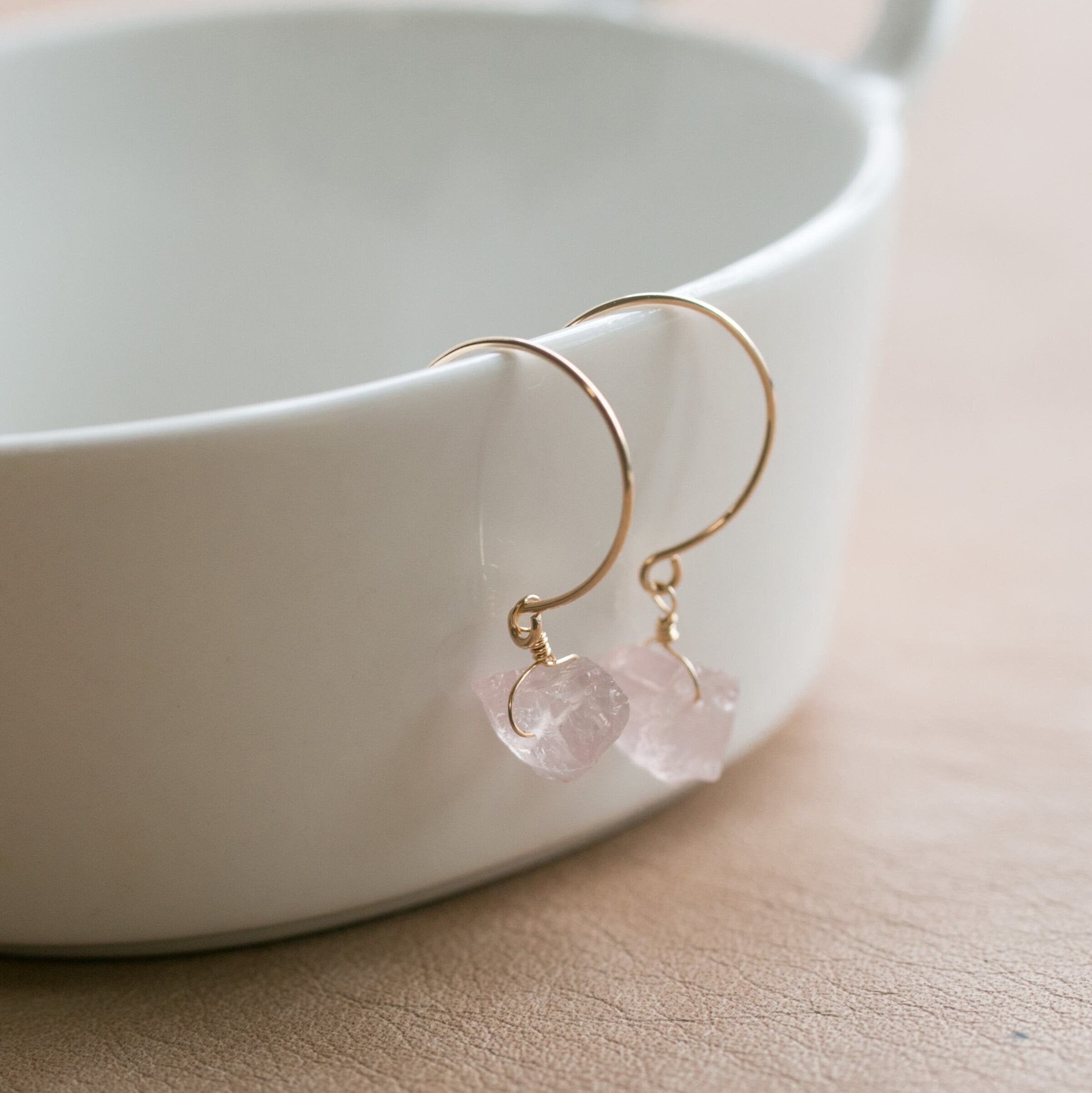 レア☆ローズクォーツ原石ラフカットAAA★ラウンドフックピアス☆14kgf☆イヤリング変更無料!
