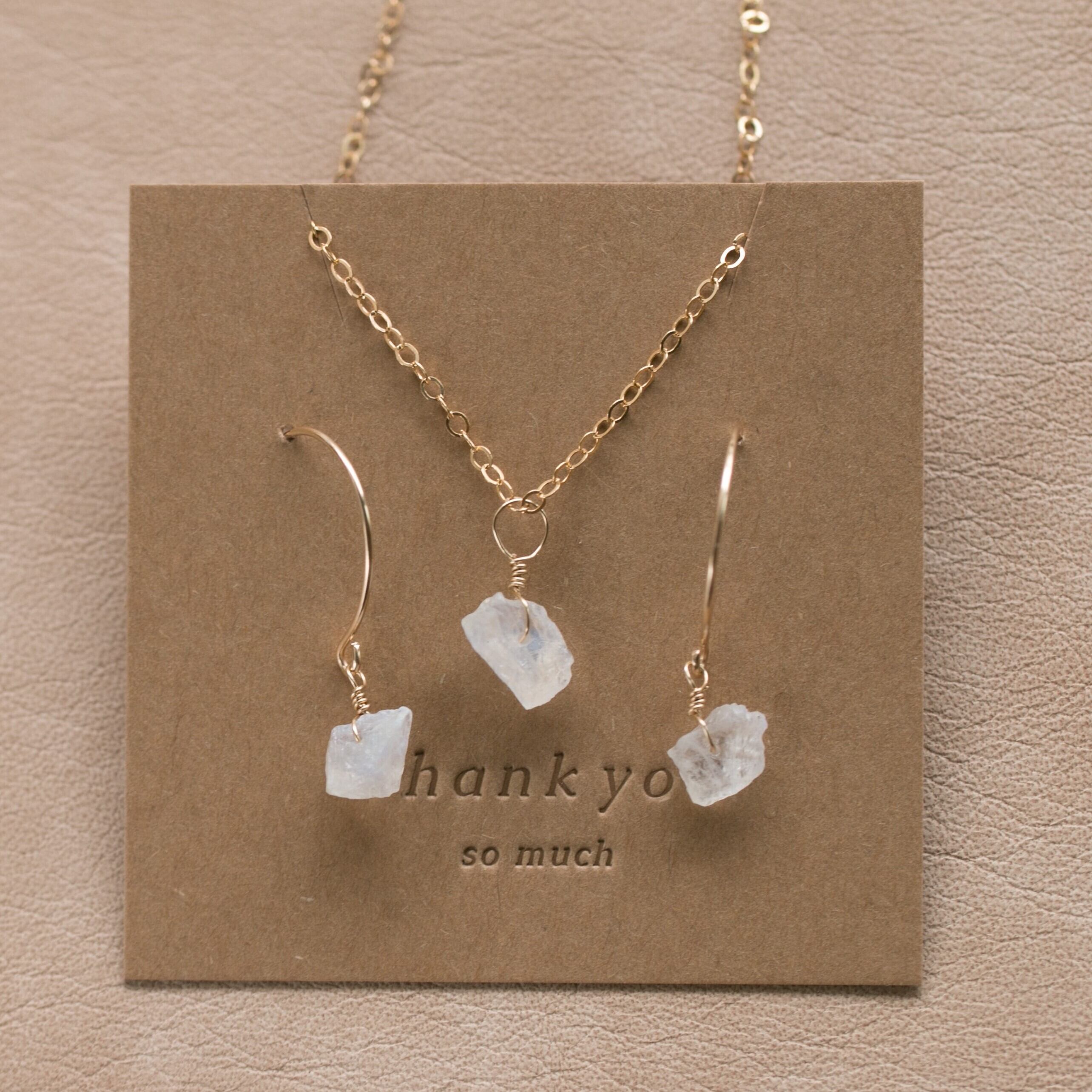 ギフトラッピング無料☆ロイヤルムーンストーン原石ラフカットAAA★一粒ペンダントとピアスのセット☆イヤリング変更無料