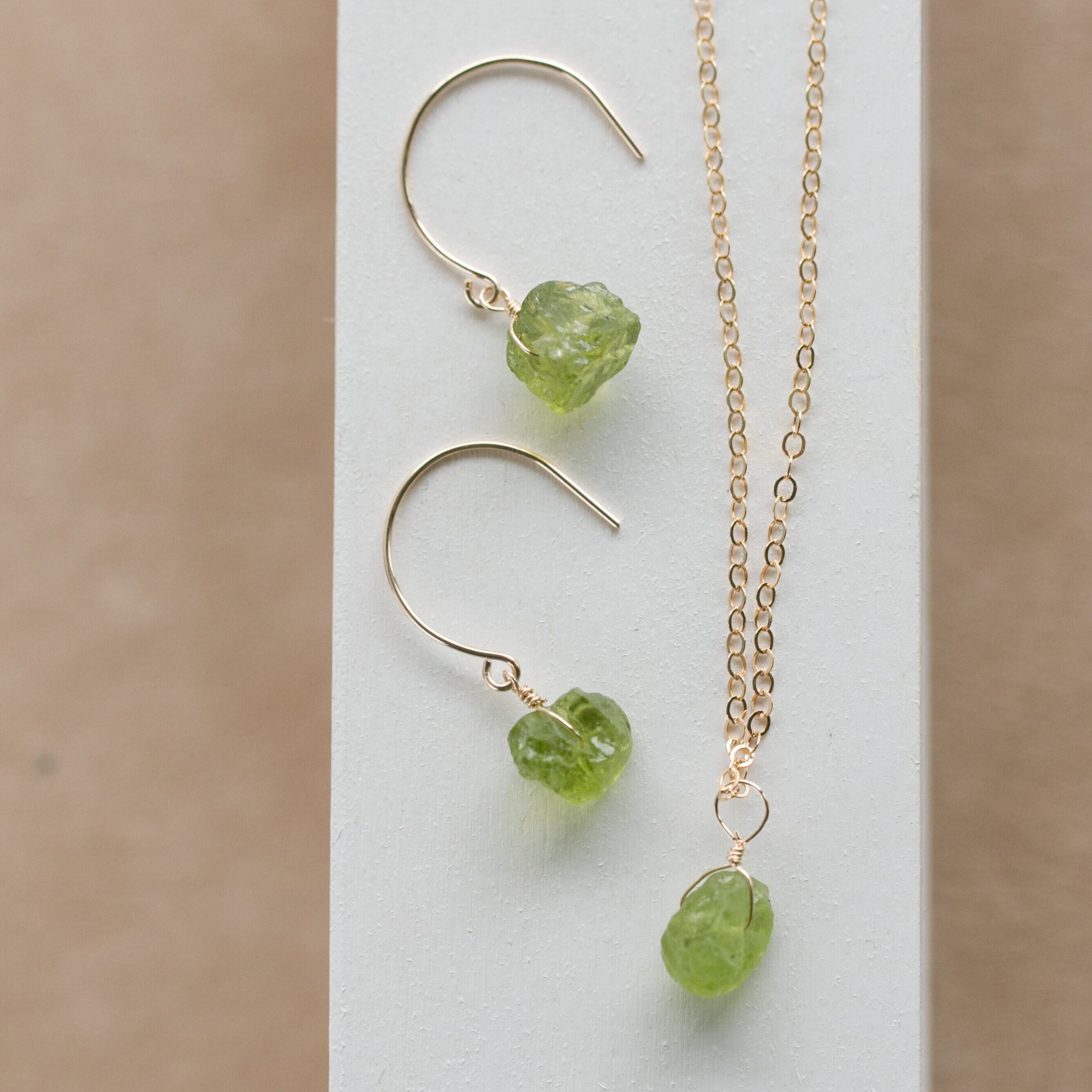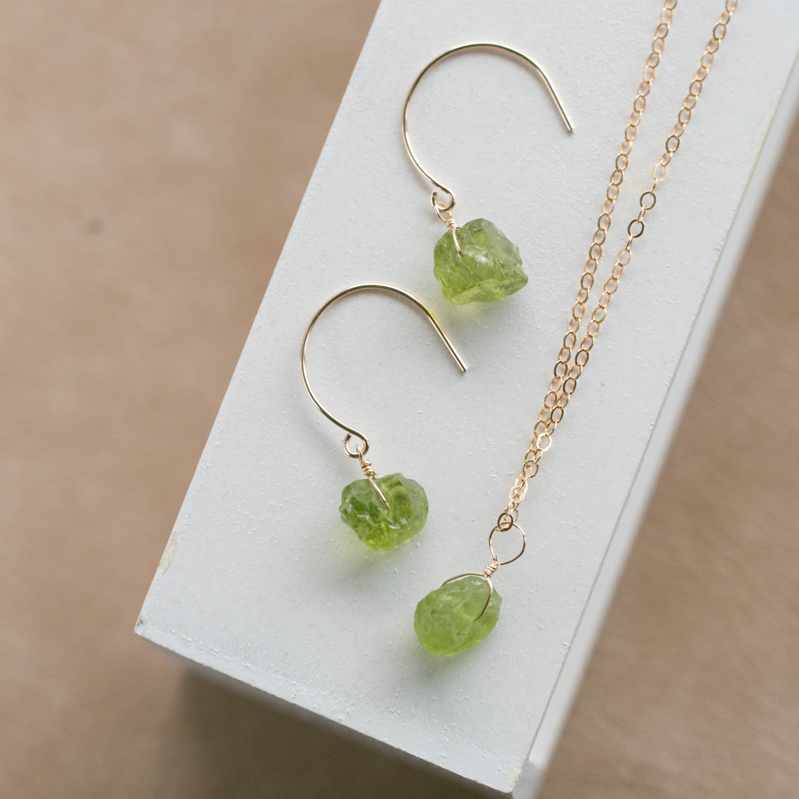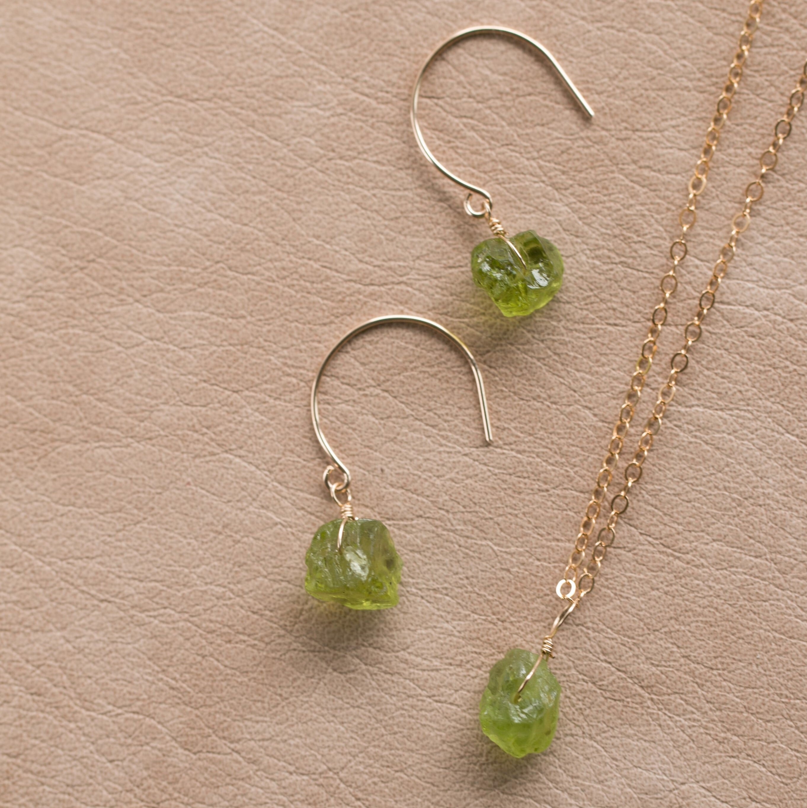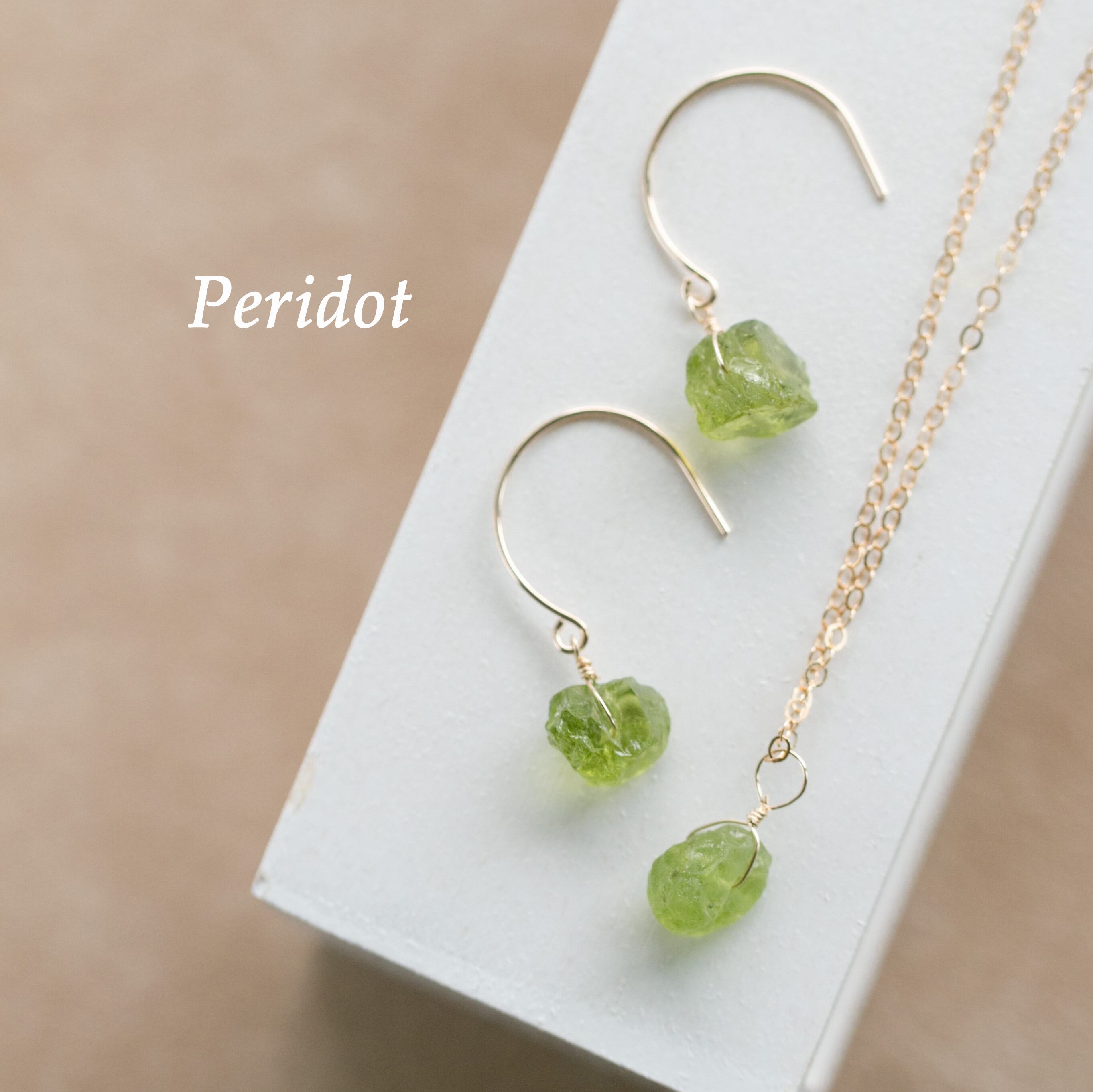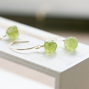 ギフトラッピング無料☆レア☆ペリドット原石ラフカットAAA★一粒ペンダントとピアスのセット☆14kgピアス・イヤリングへの変更無料♪