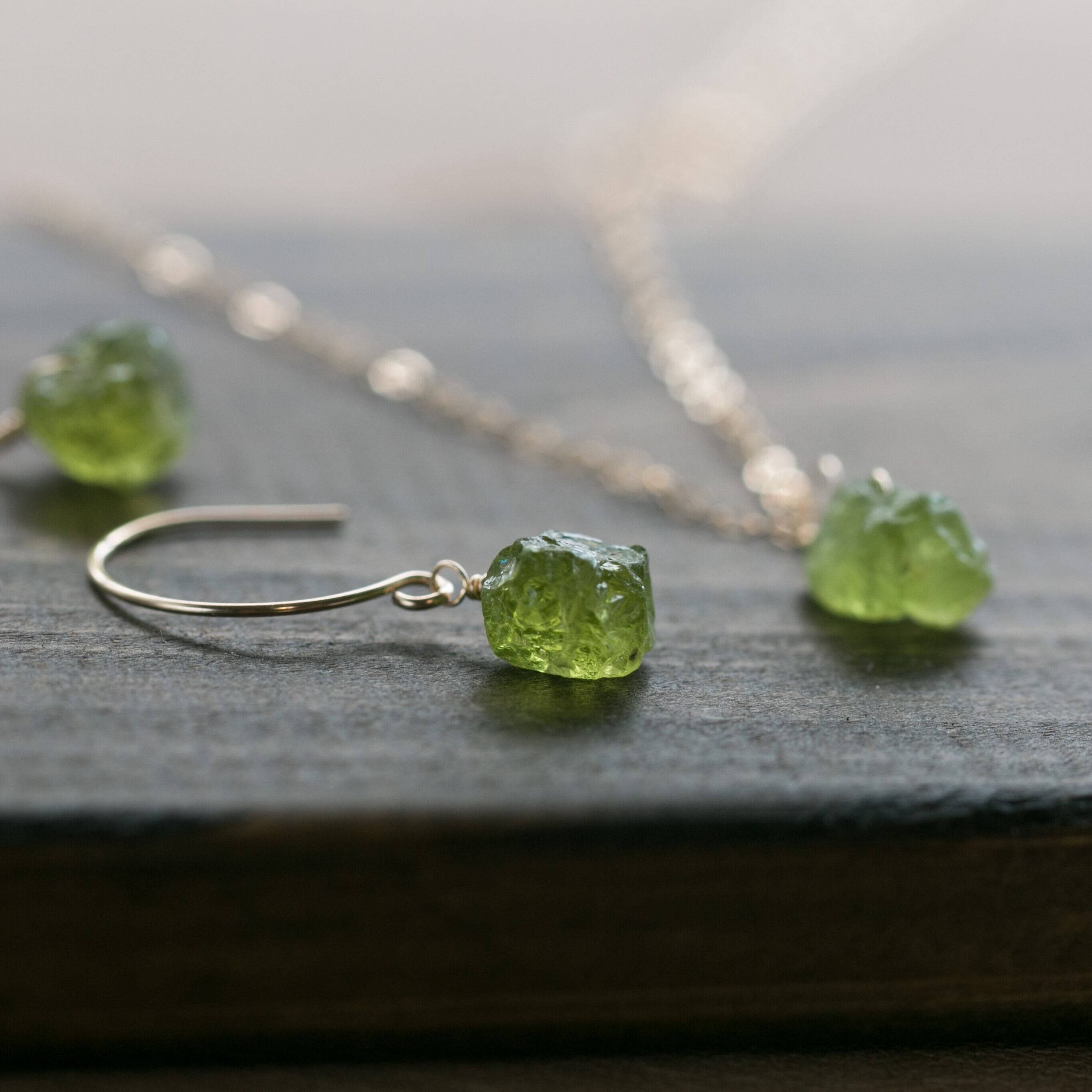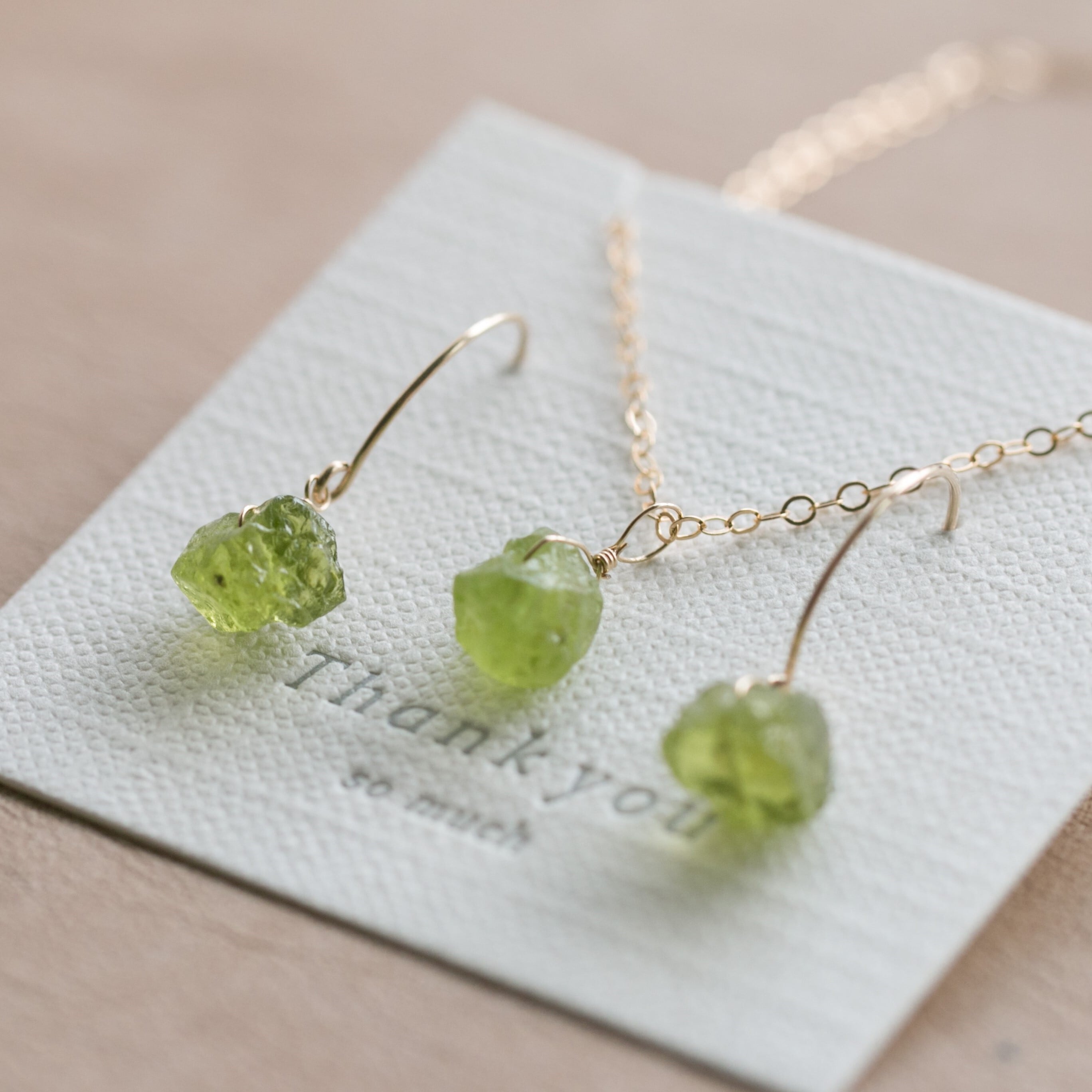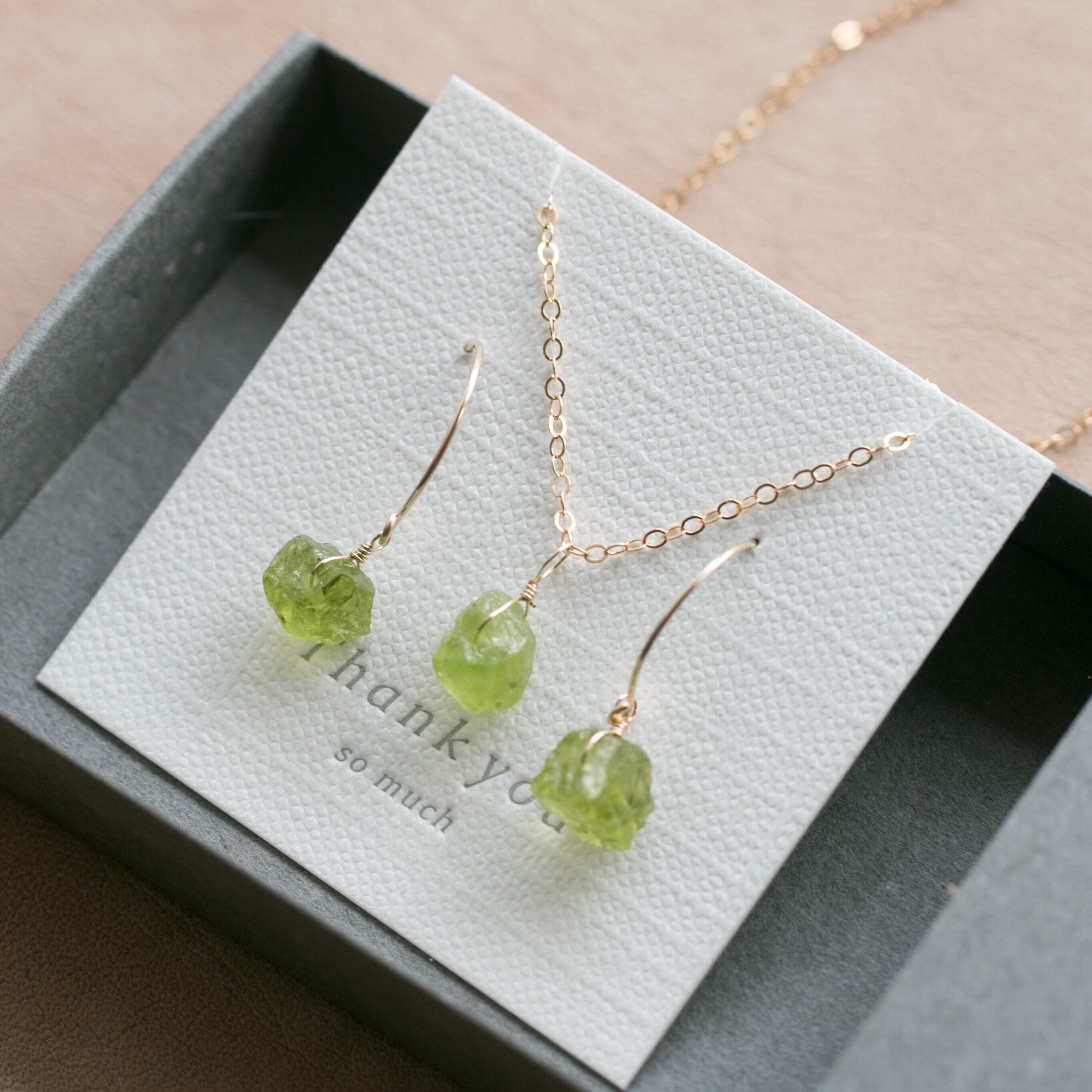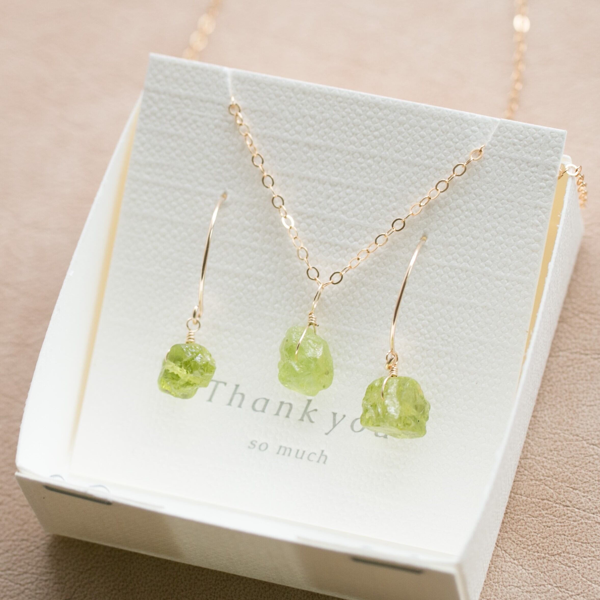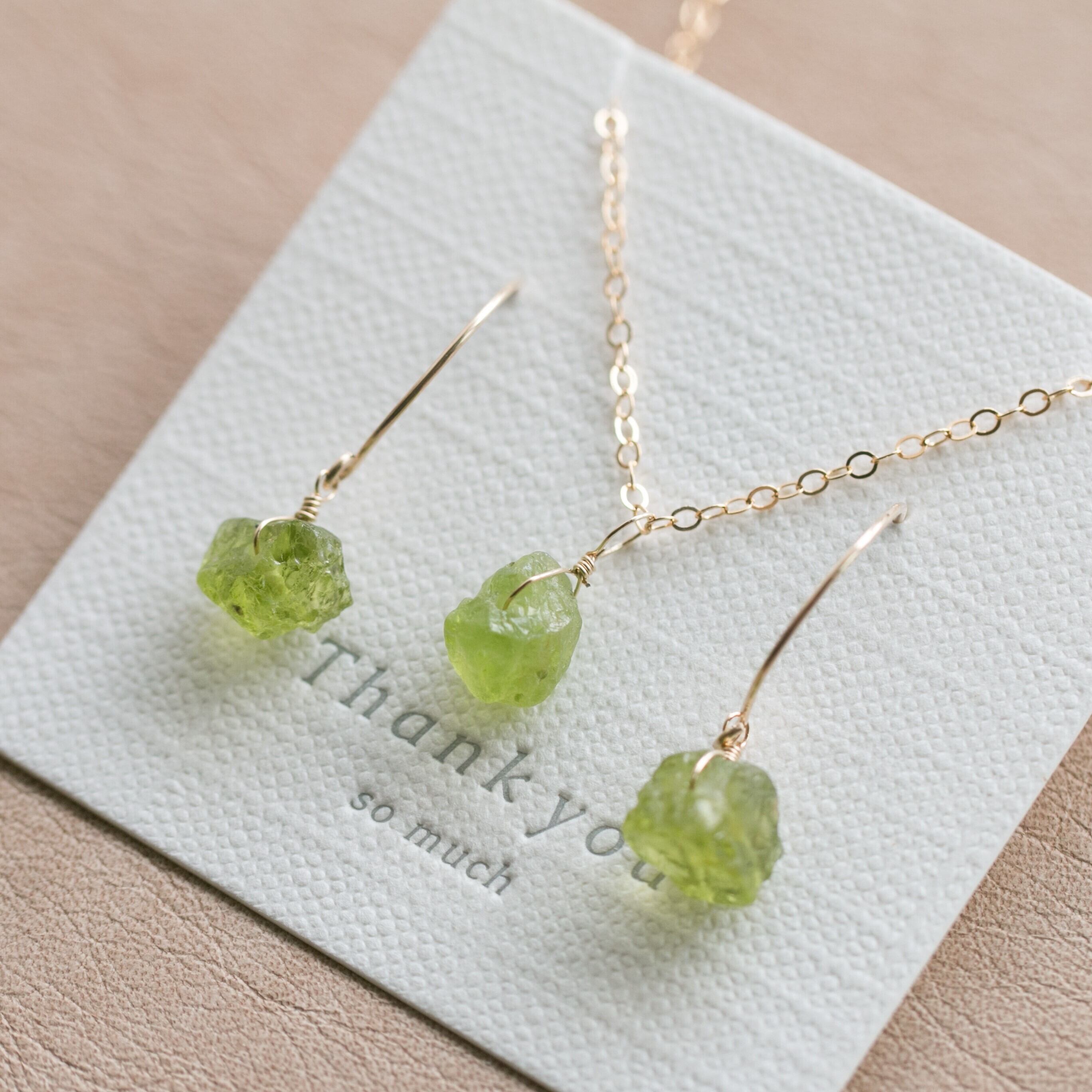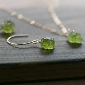セット販売☆ペリドット原石ラフカットAAA★一粒ペンダントとピアスのセット☆イヤリング変更無料