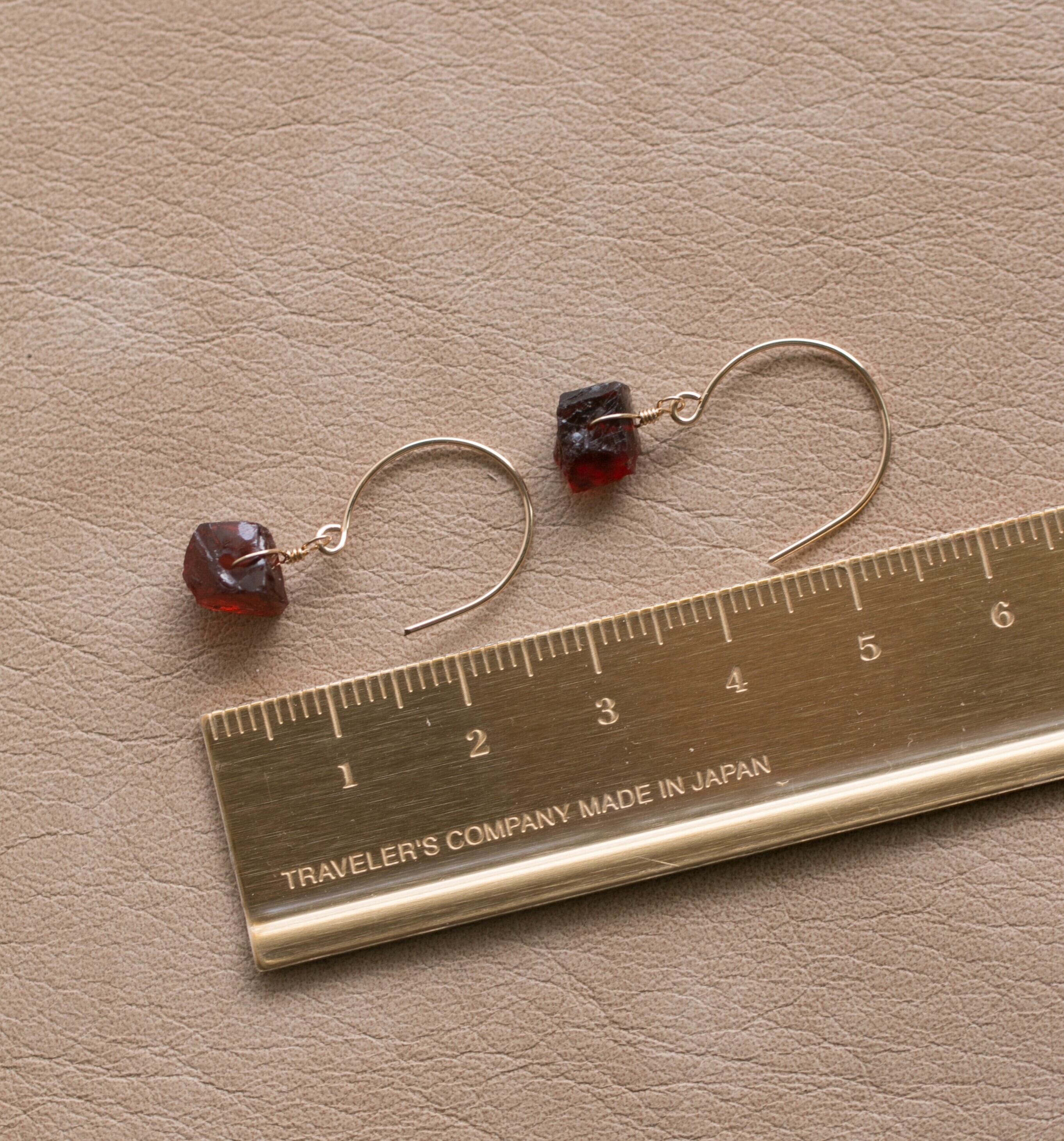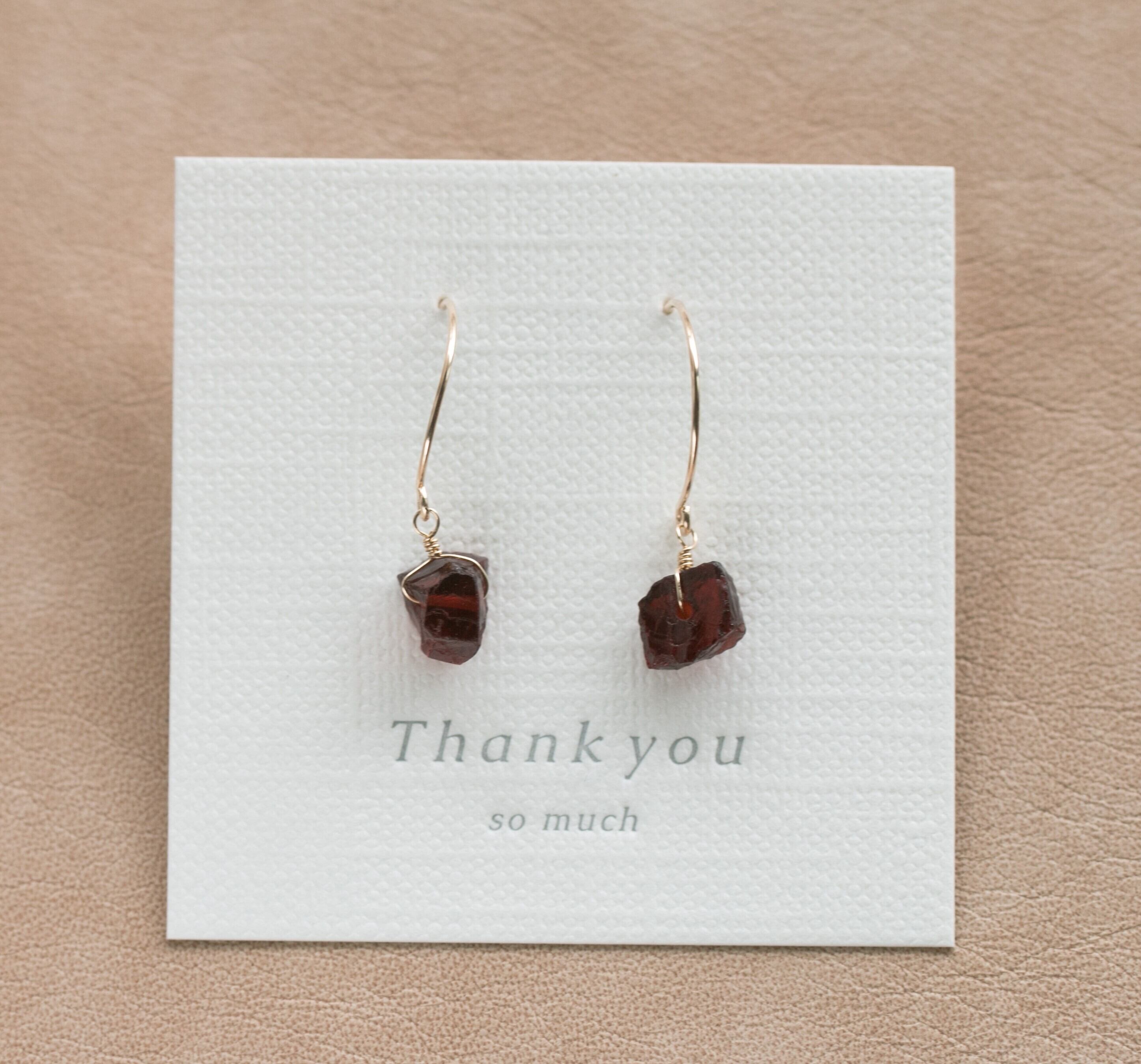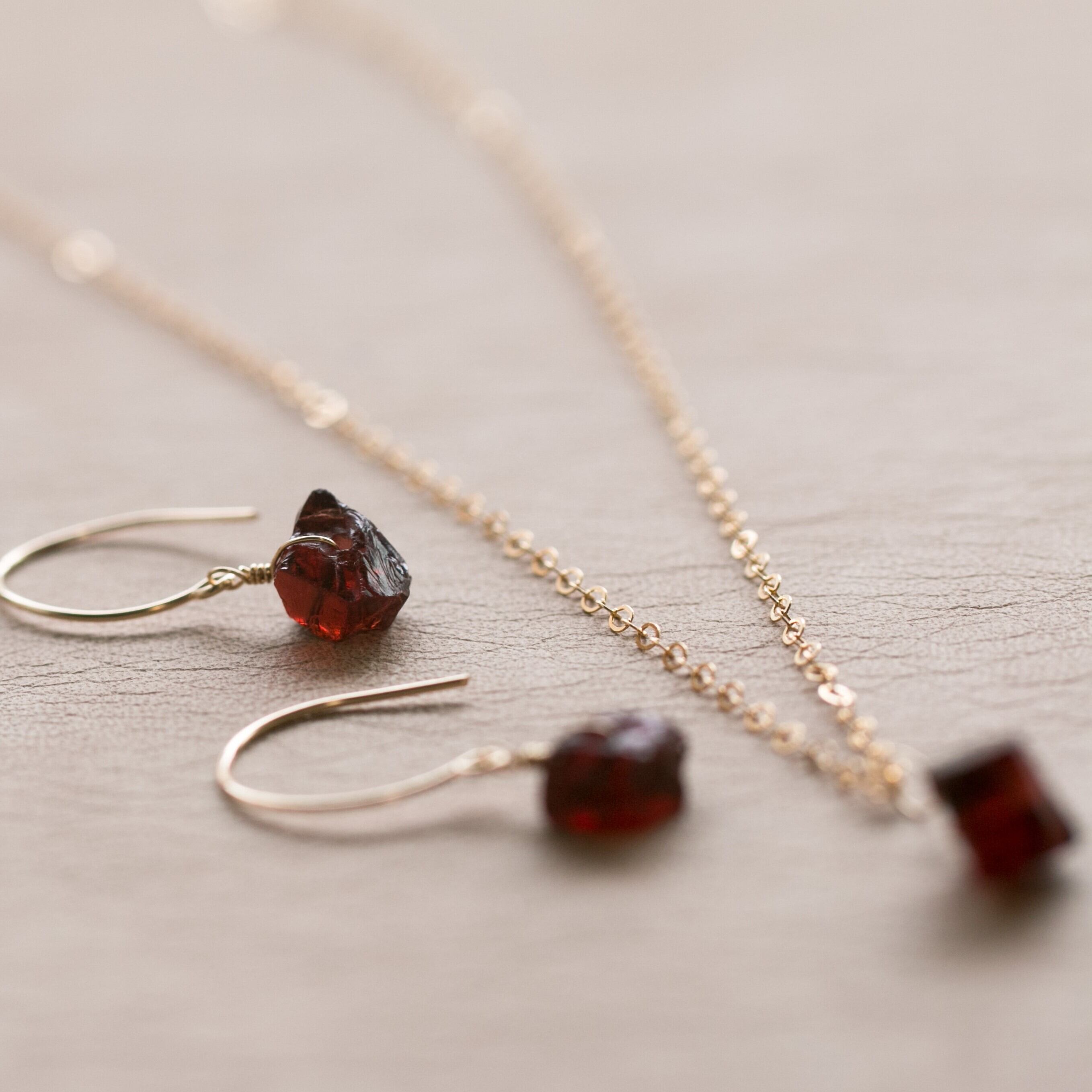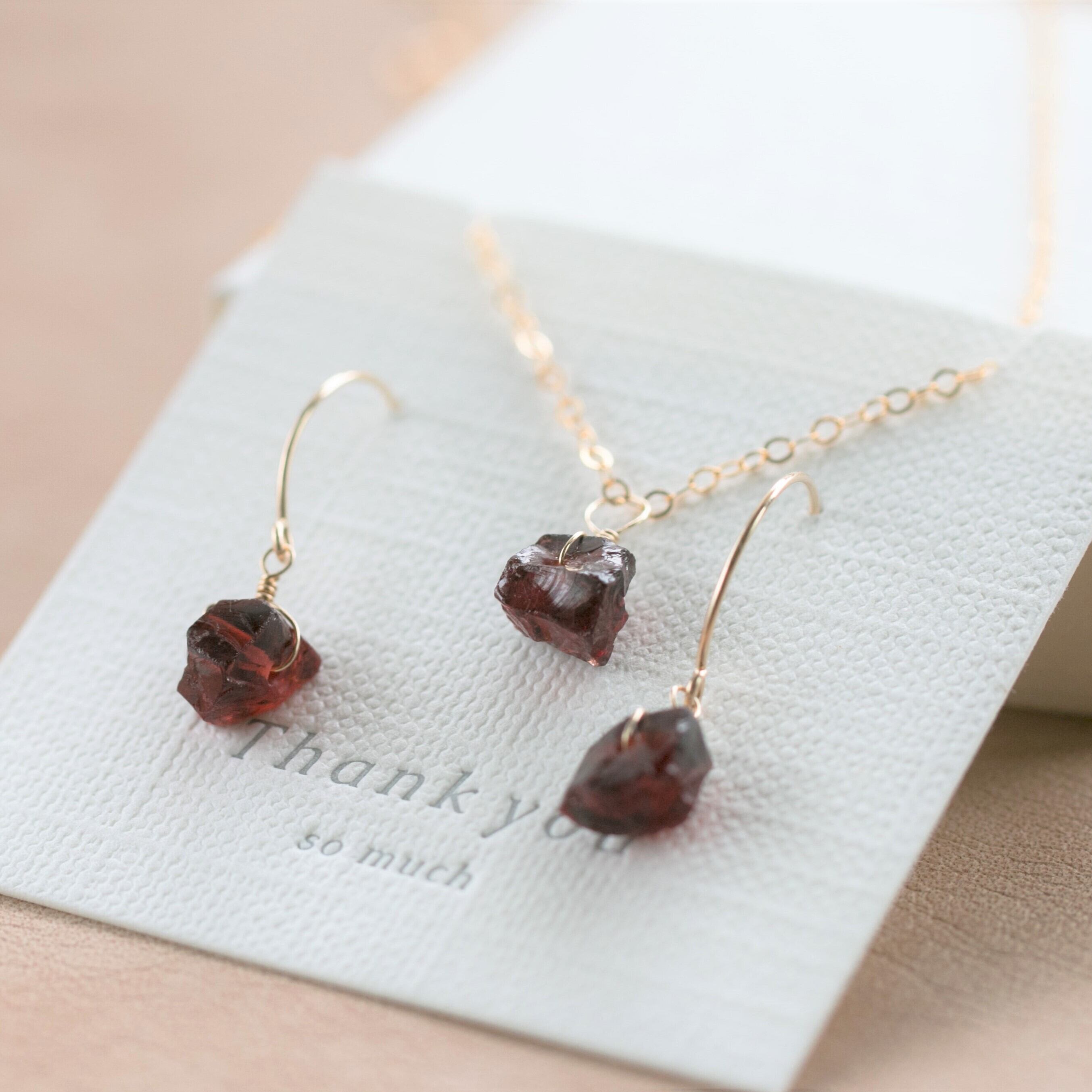 ギフトラッピング無料☆レア☆ガーネット原石ラフカットAAA★一粒ペンダントとピアスのセット☆14kgfフックピアス・イヤリングへの変更無料♪