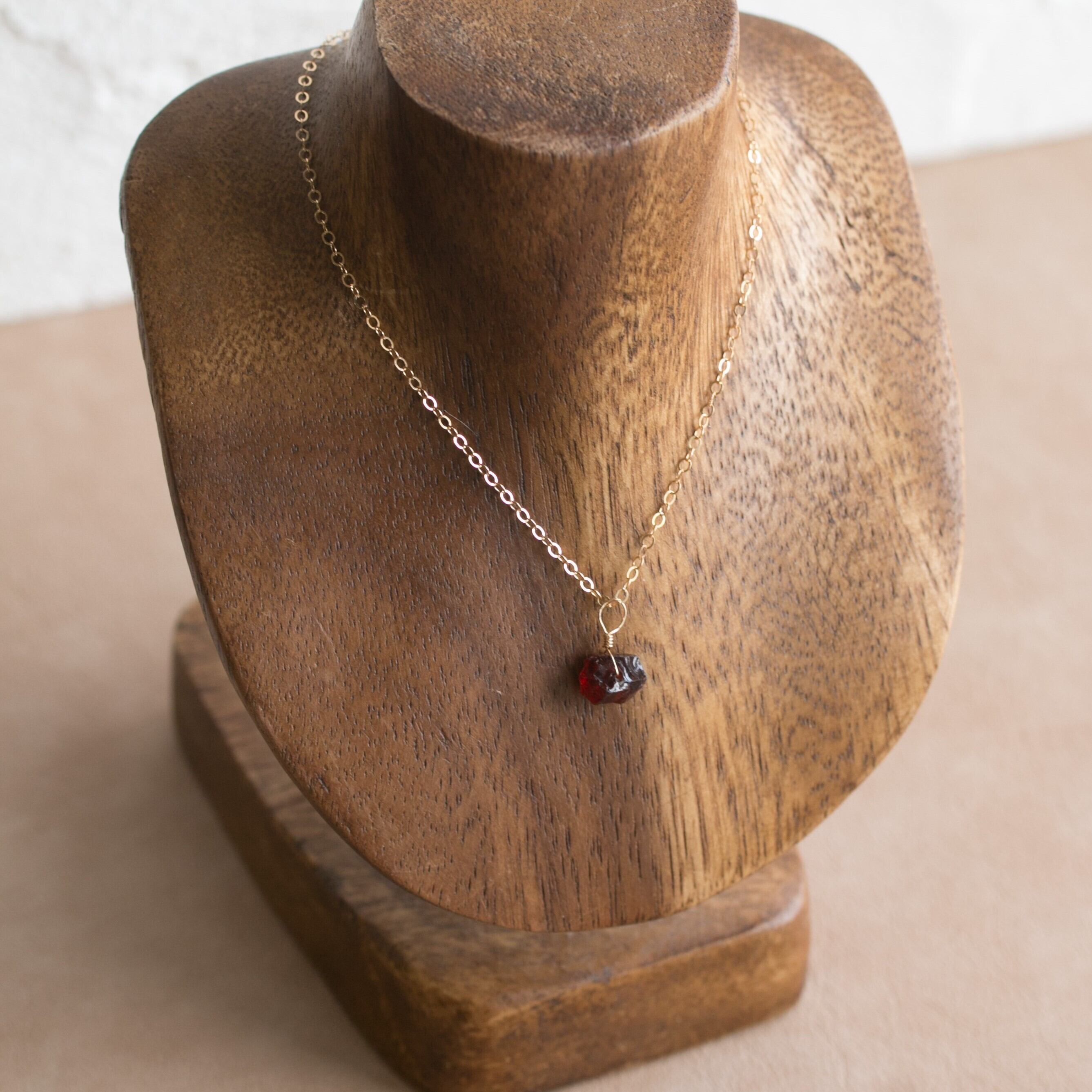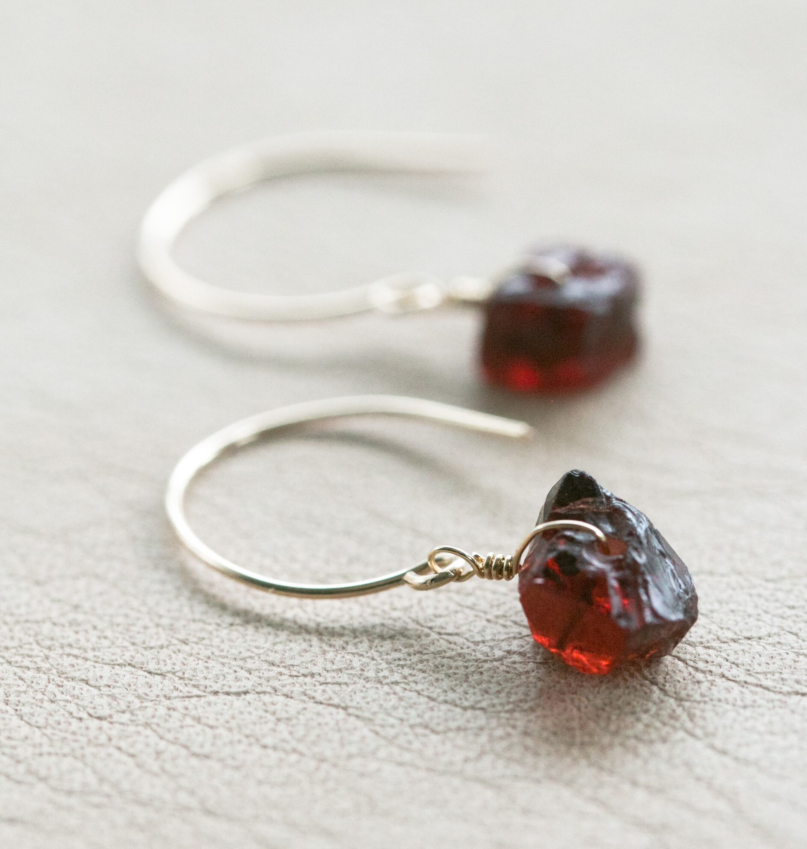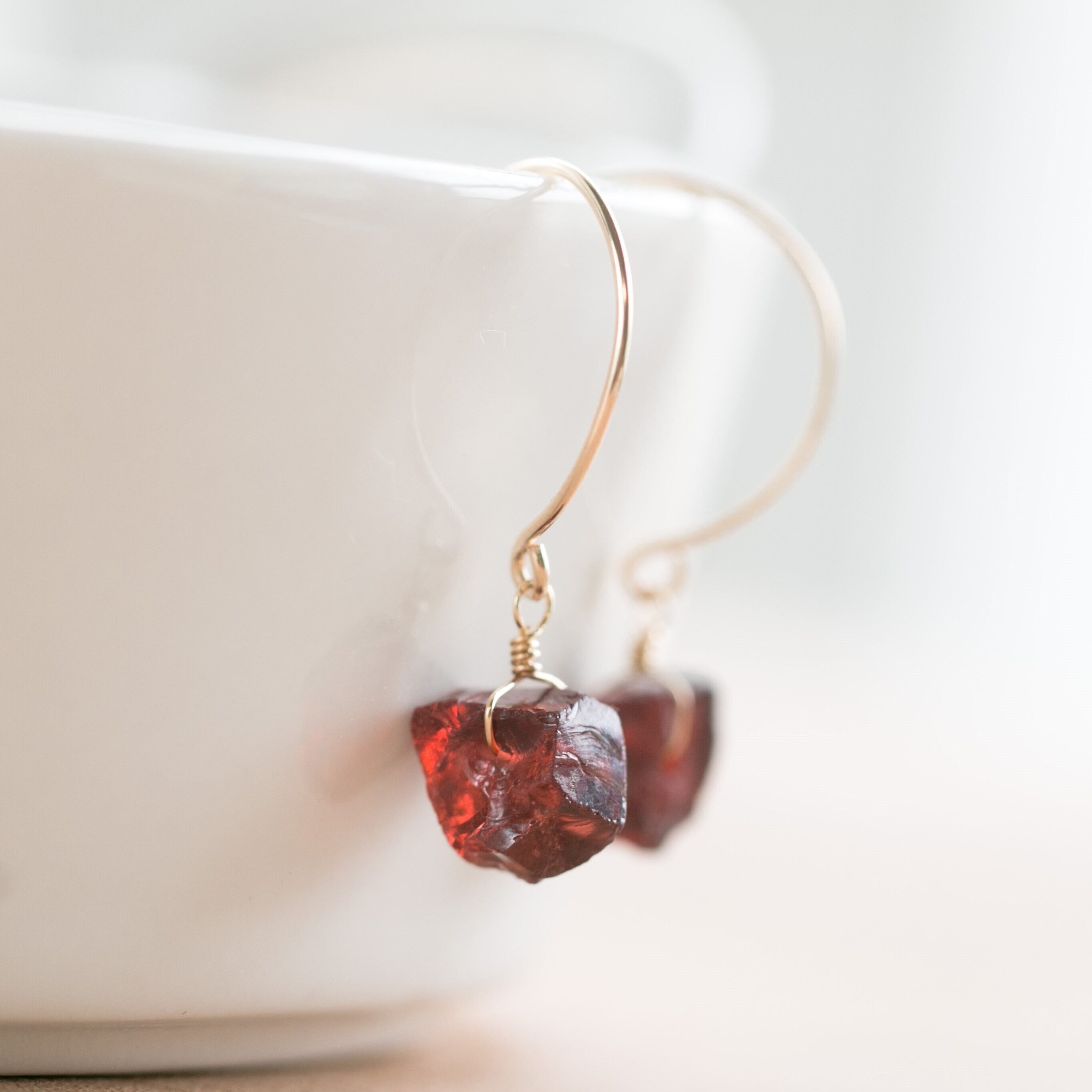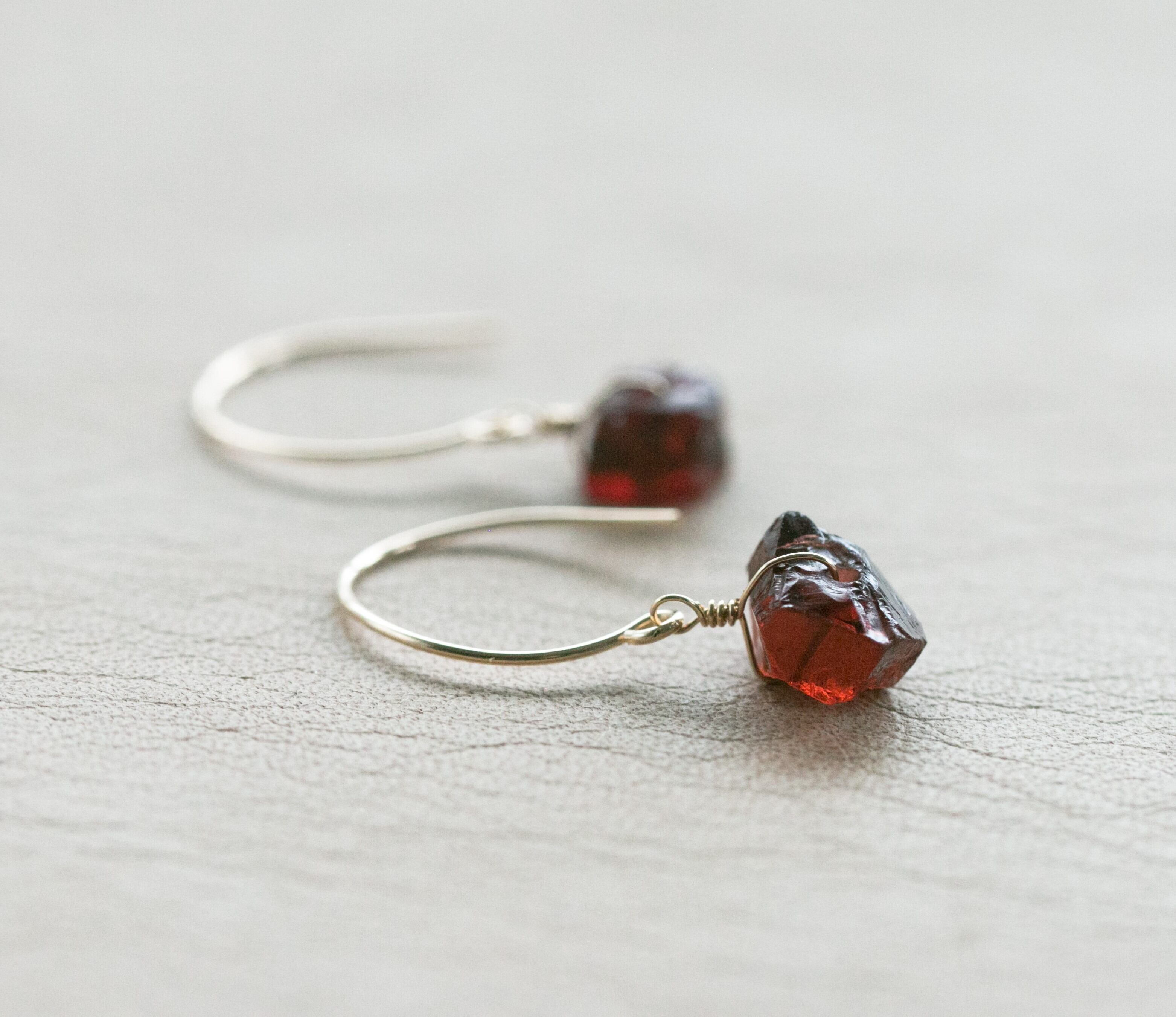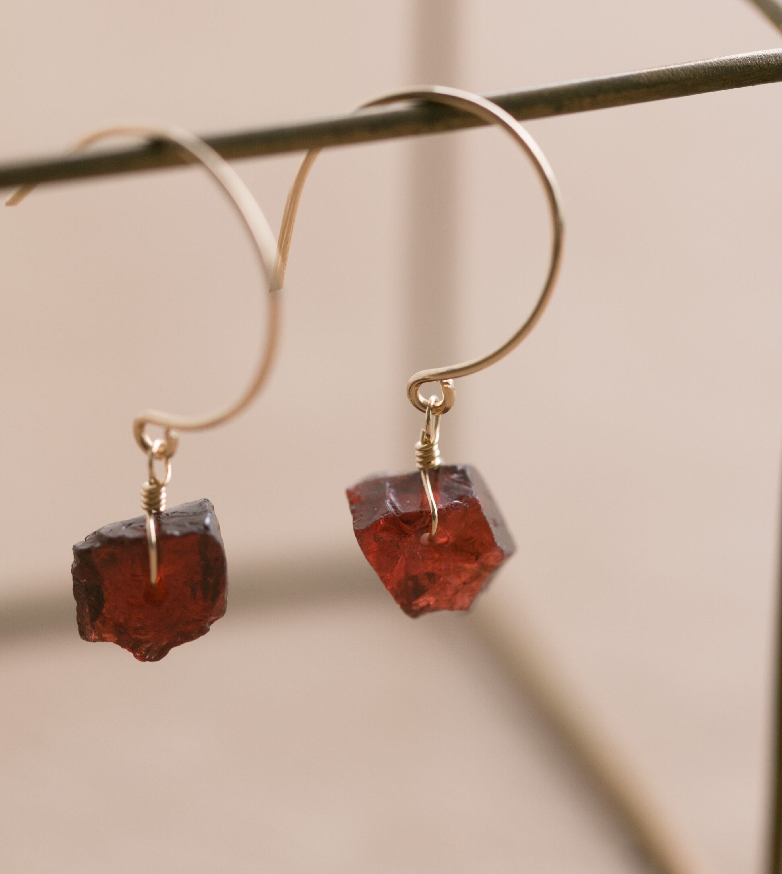 ギフトラッピング無料☆レア☆ガーネット原石ラフカットAAA★一粒ペンダントとピアスのセット☆14kgfフックピアス・イヤリングへの変更無料♪