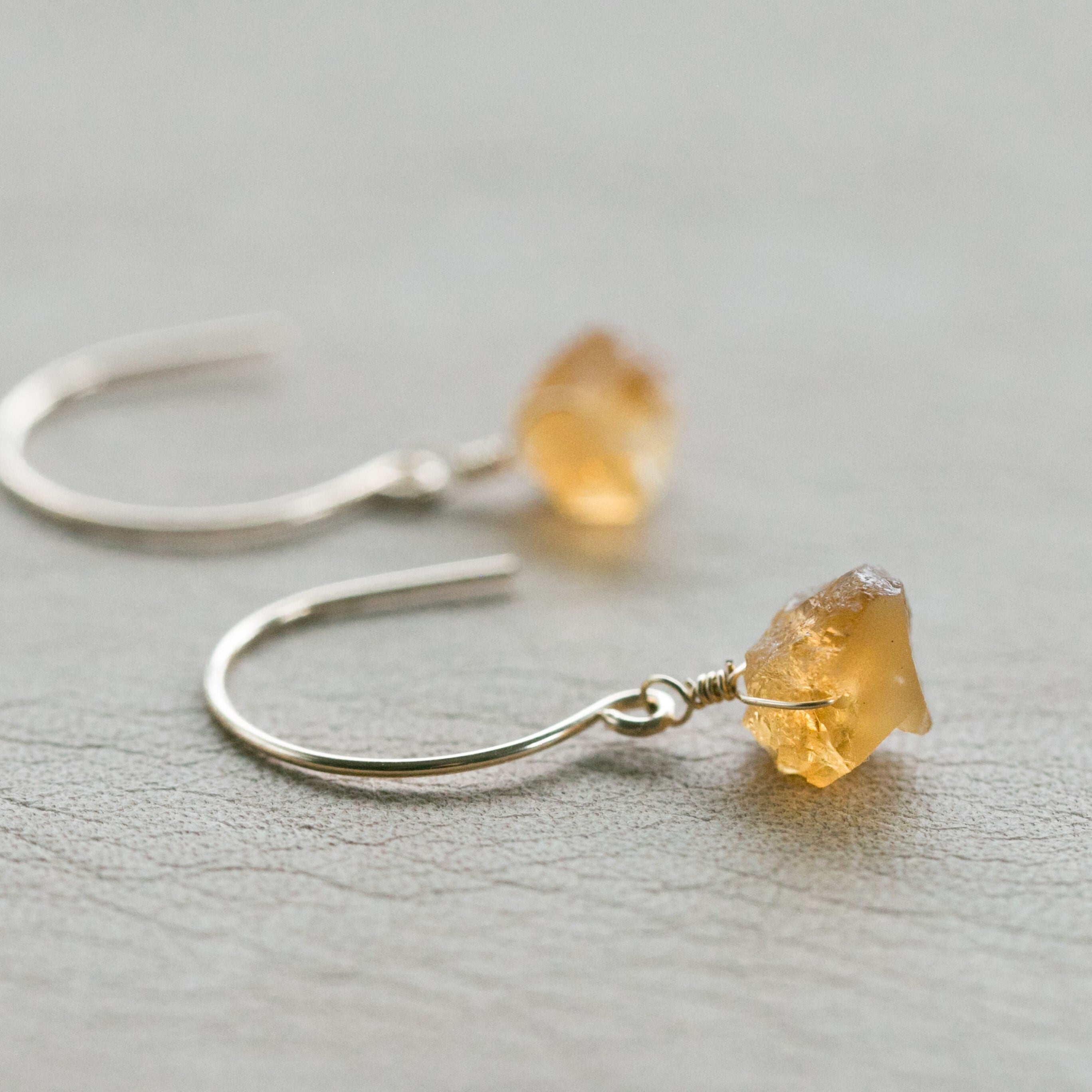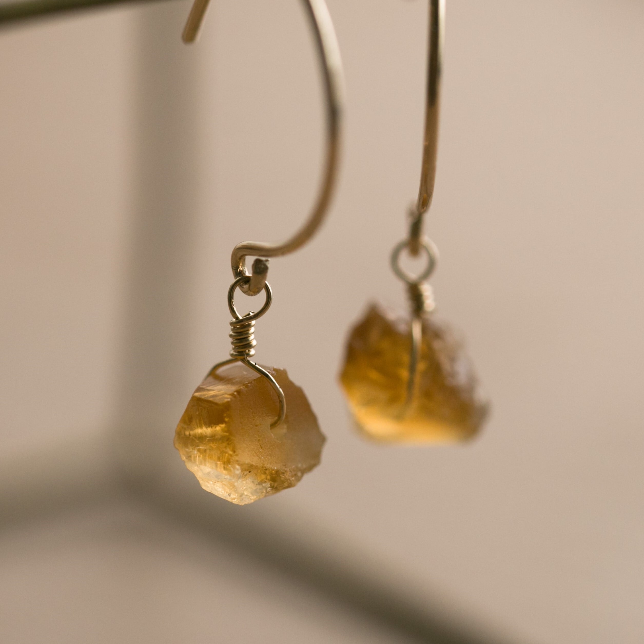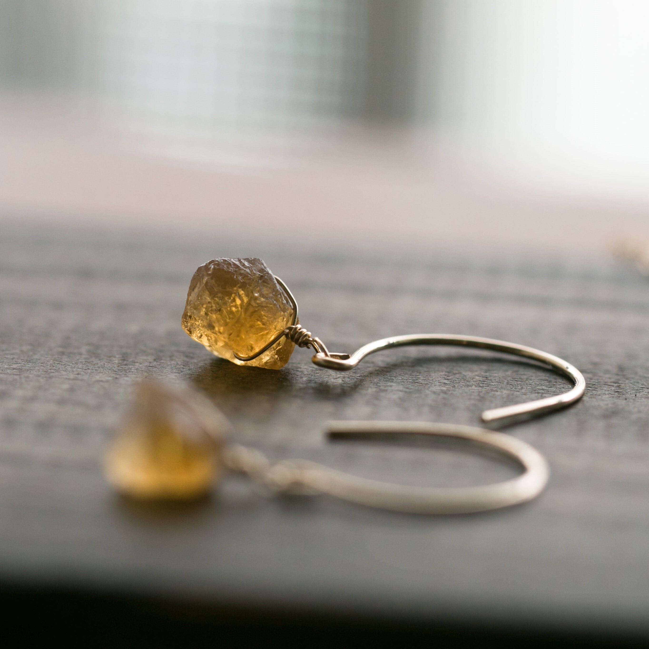 レア☆ゴールデンハニーシトリン原石ラフカットAAA★ラウンドフックピアス☆14kgf☆フックピアス・イヤリング変更無料!