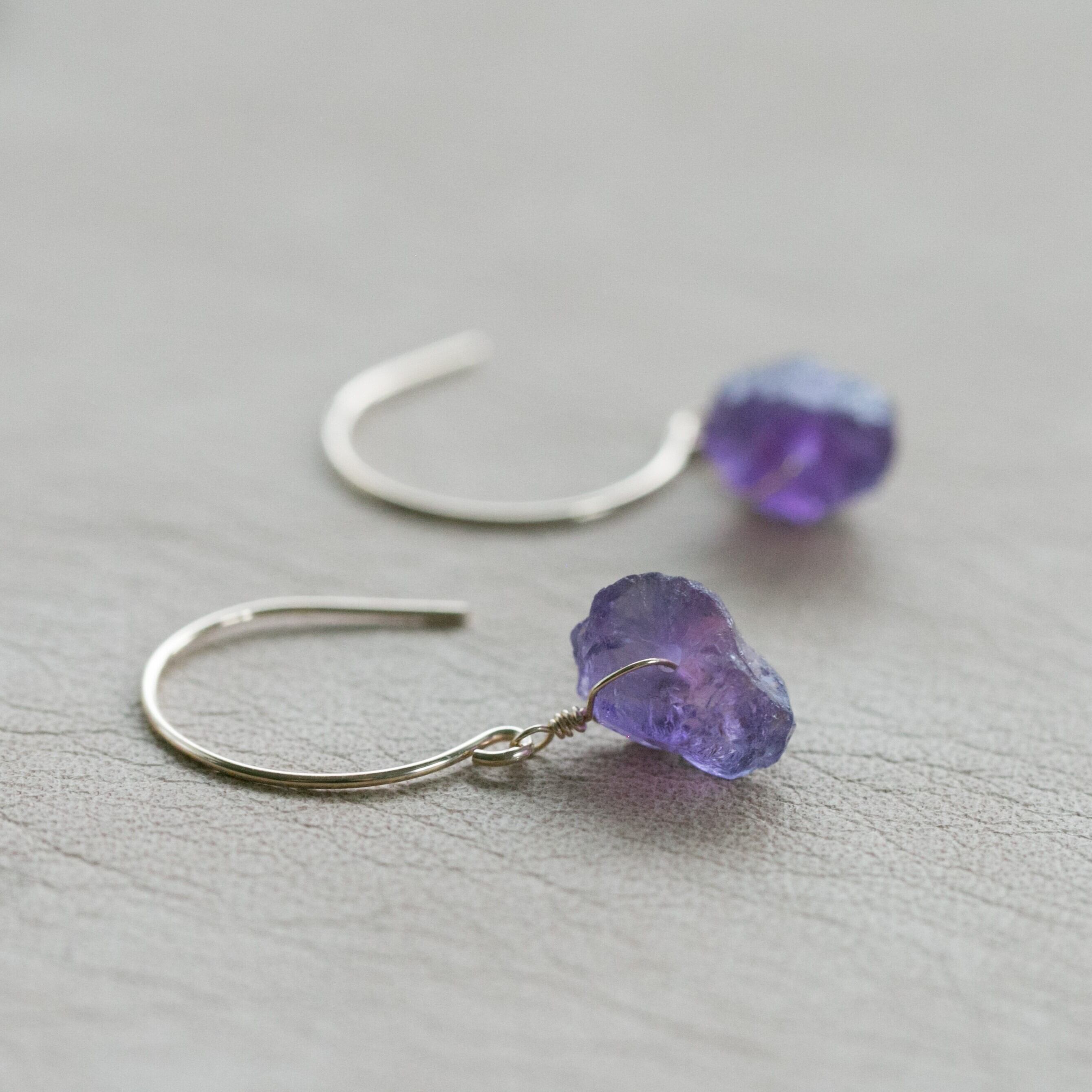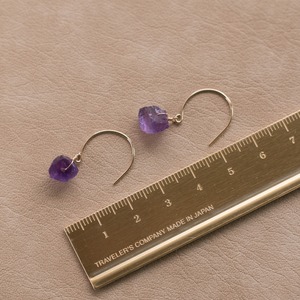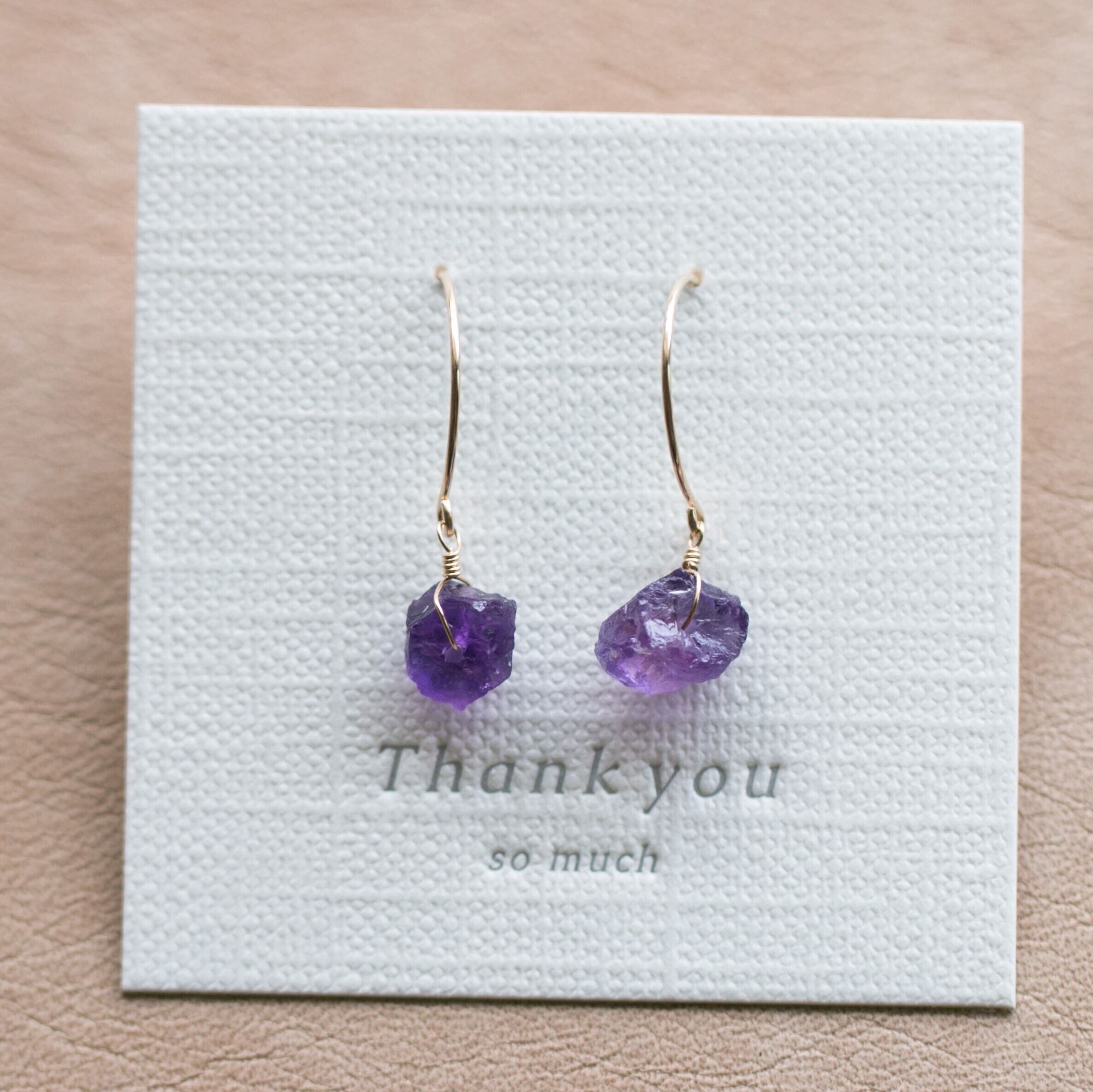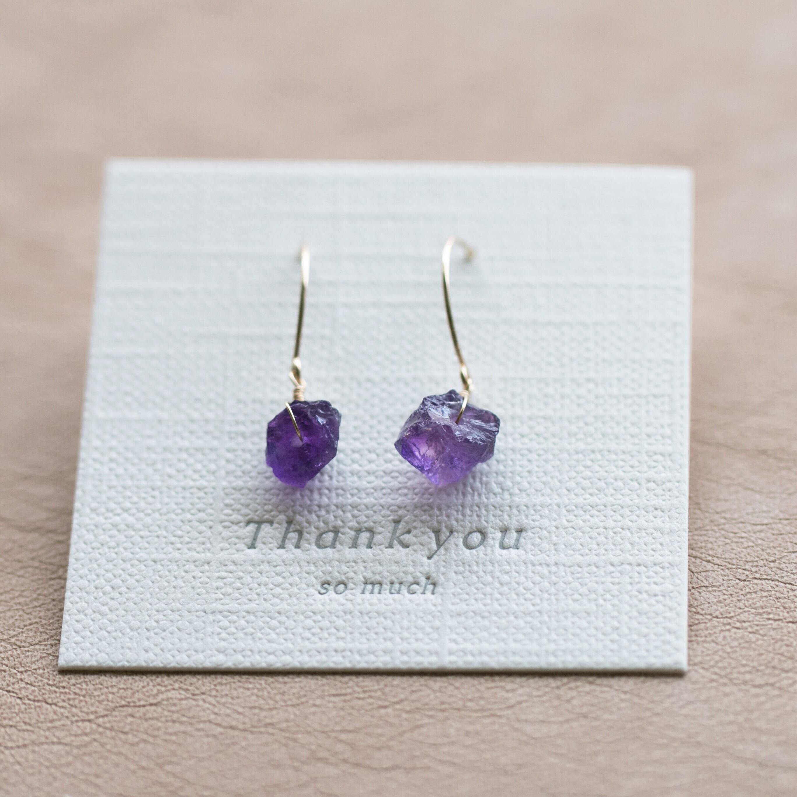 レア☆アメジスト原石ラフカットAAA★ラウンドフックピアス☆14kgf