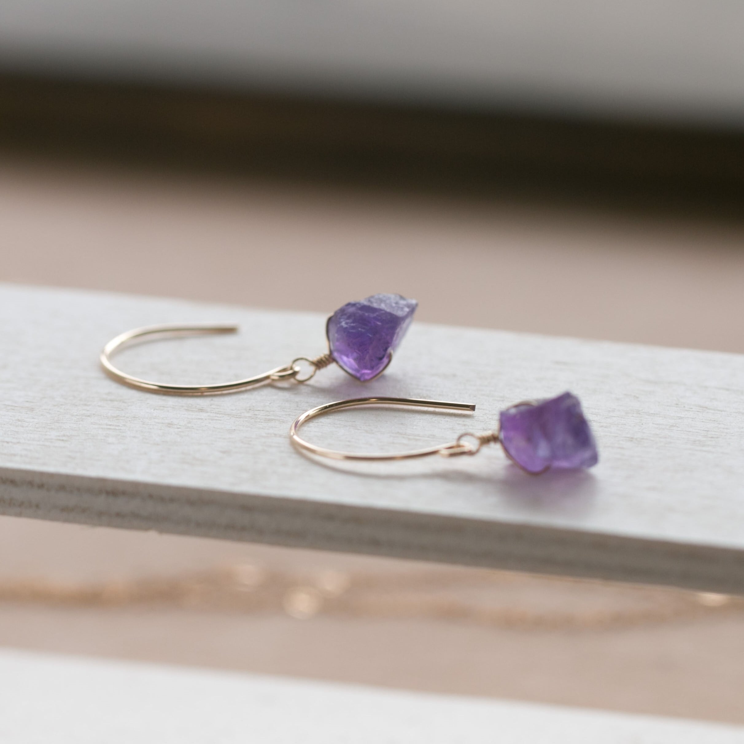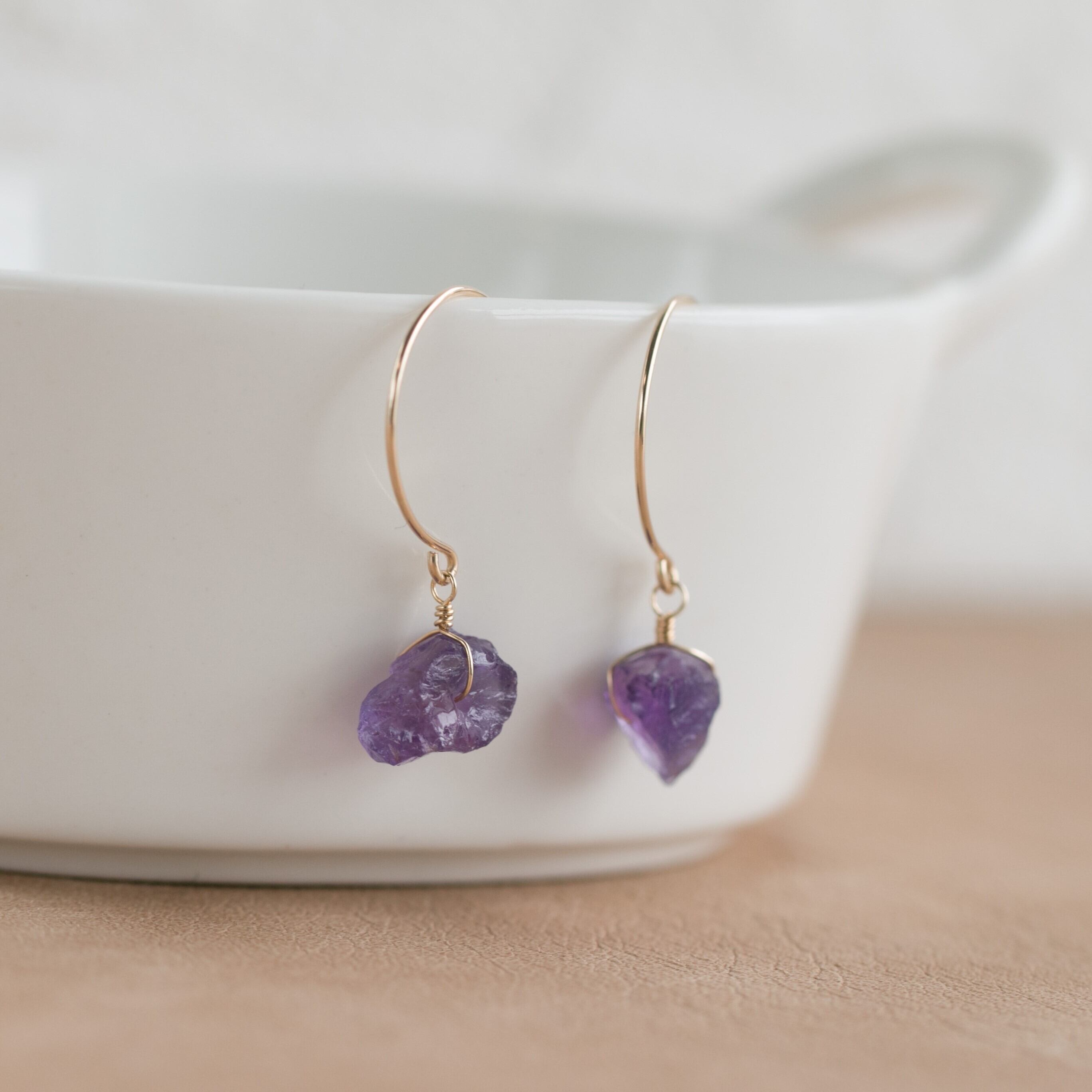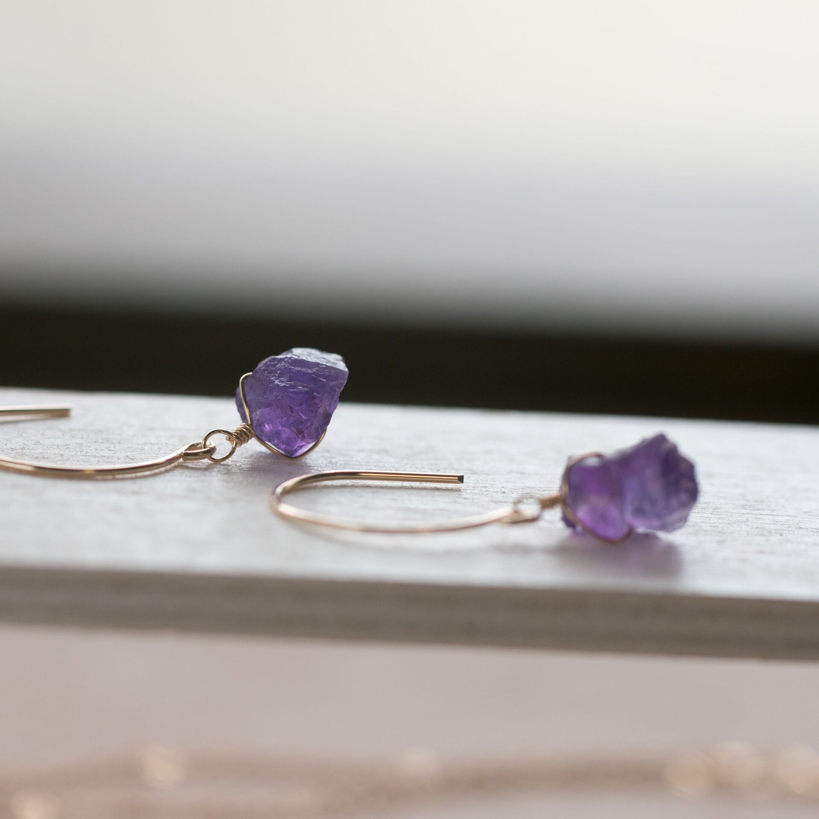 レア☆アメジスト原石ラフカットAAA★ラウンドフックピアス☆14kgf