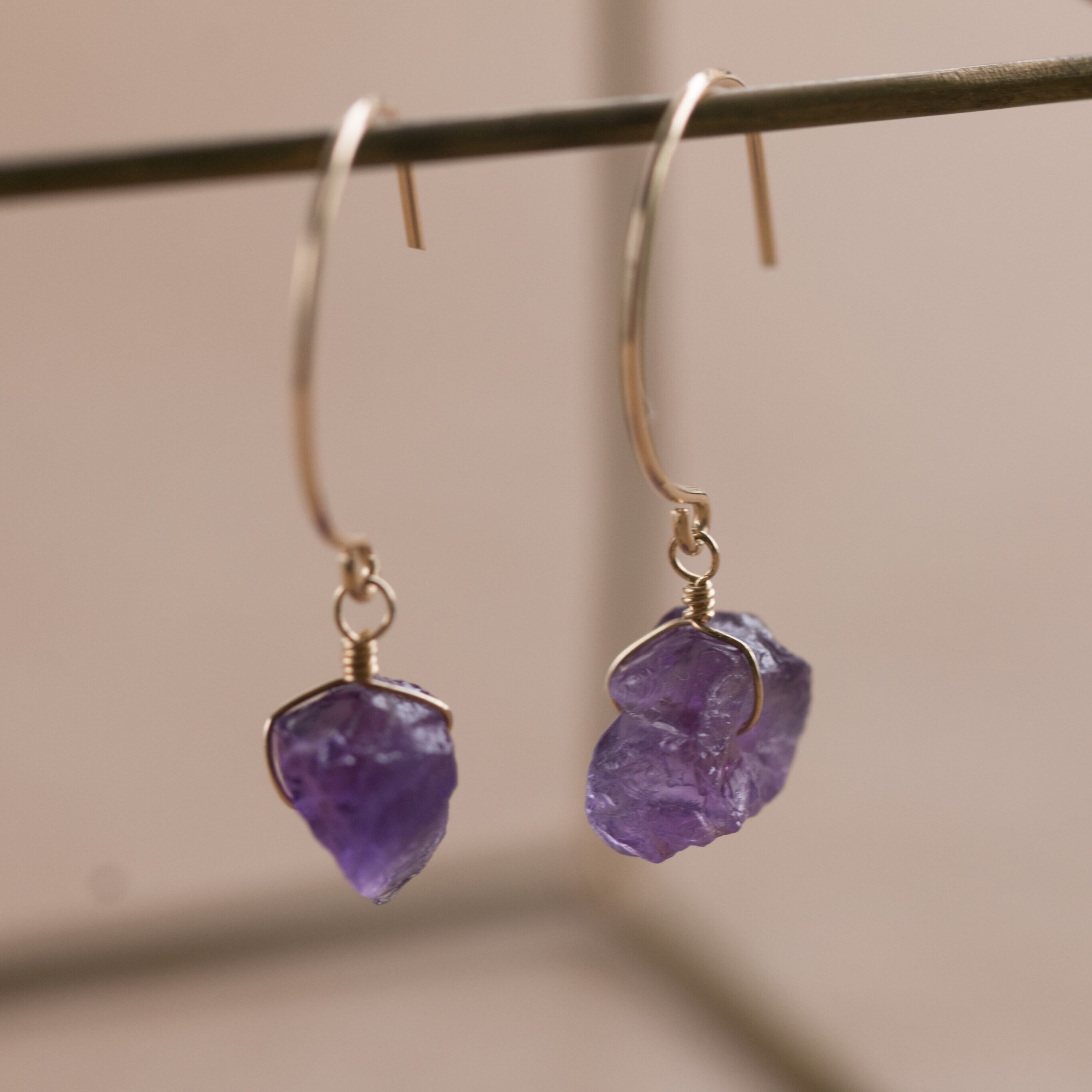 レア☆アメジスト原石ラフカットAAA★ラウンドフックピアス☆14kgf☆フックピアス・イヤリング変更無料!