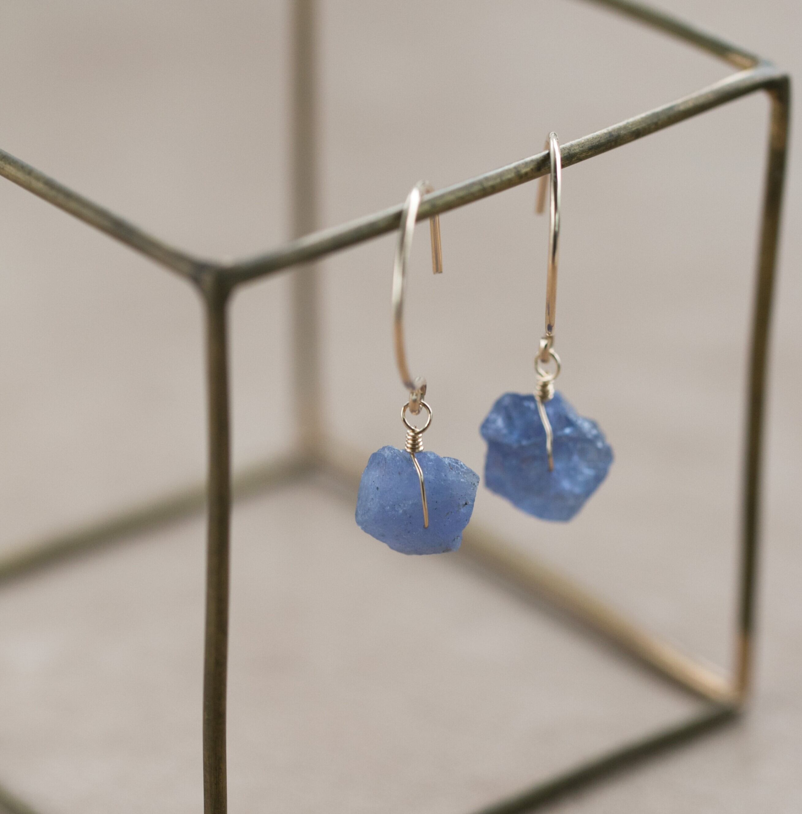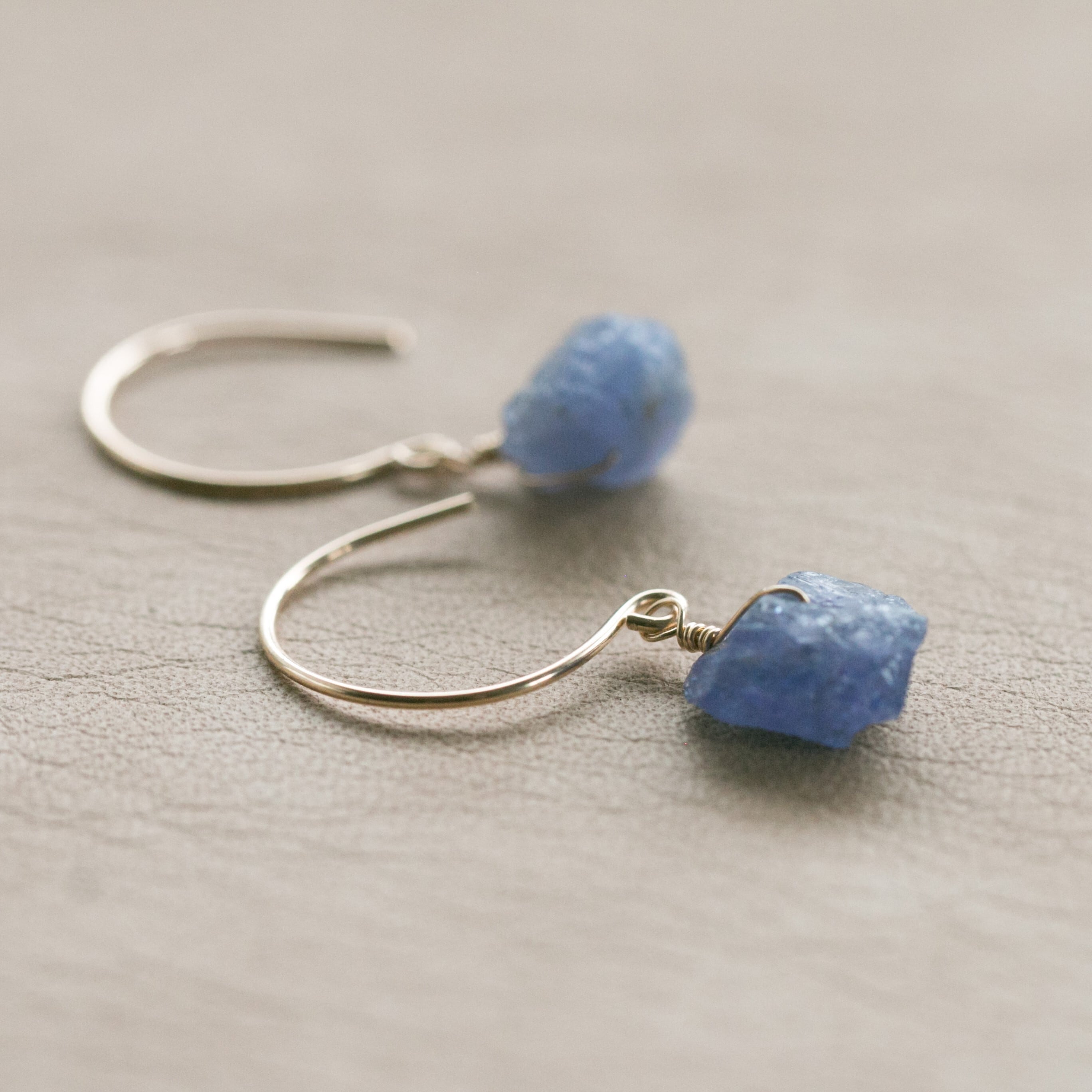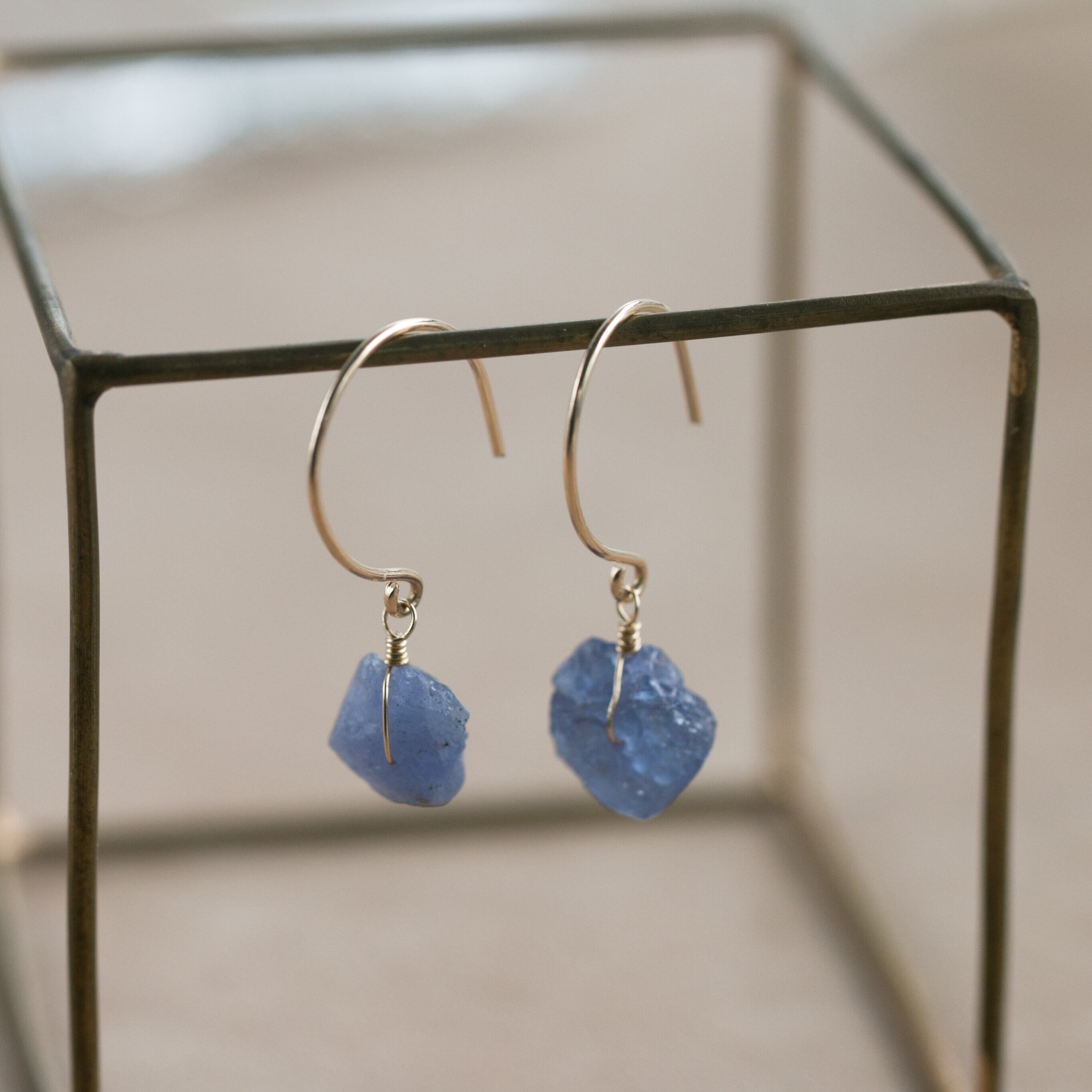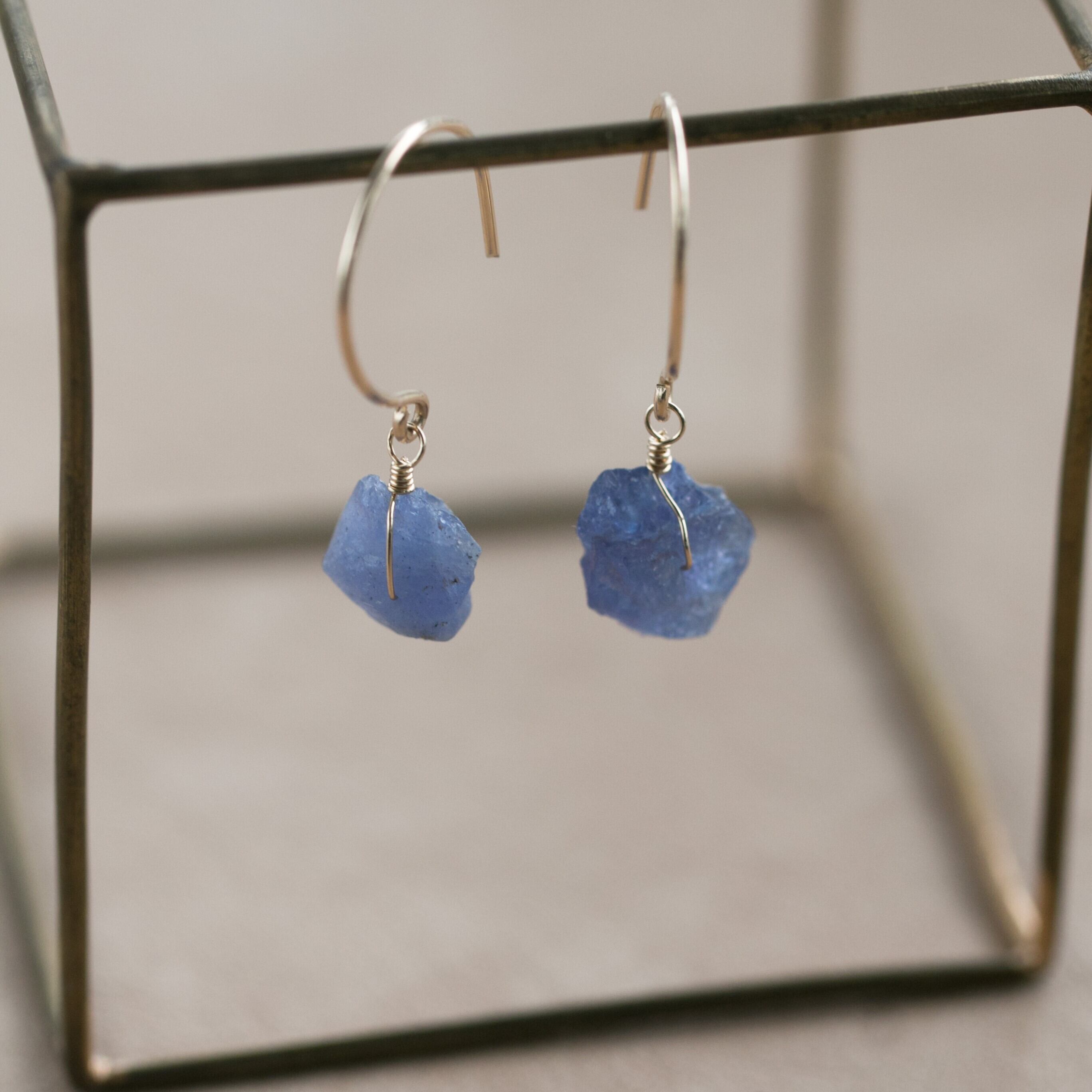 レア☆タンザナイト原石ラフカットAAA★ラウンドフックピアス☆14kgf☆フックピアス・イヤリング変更無料!