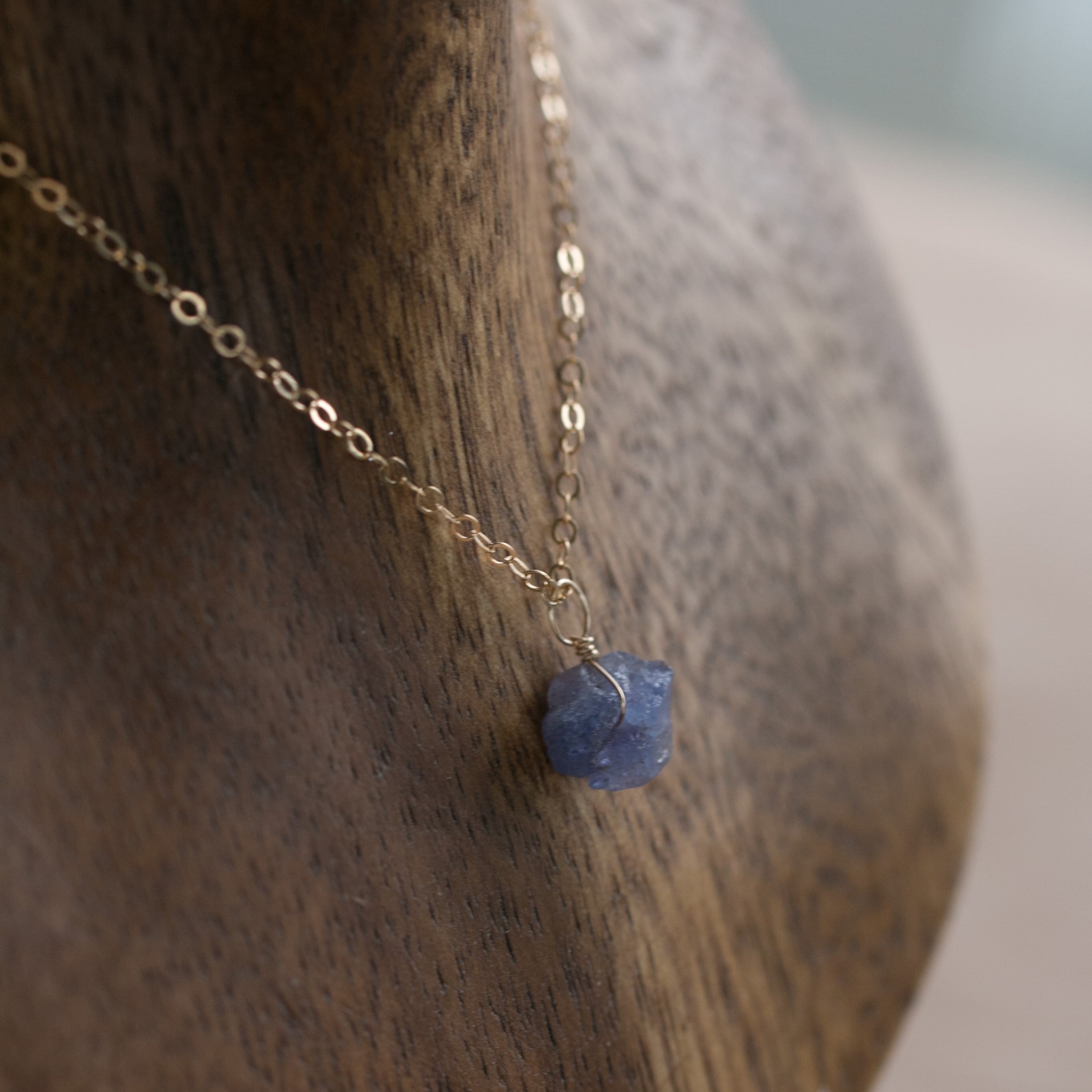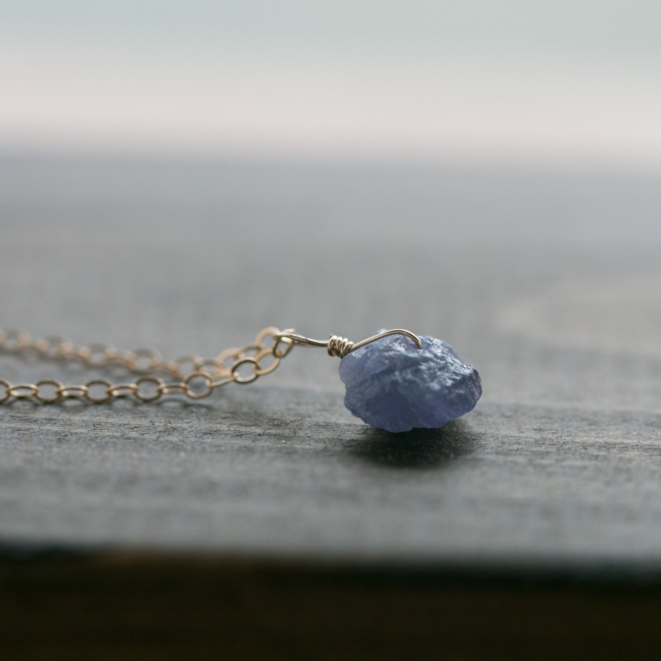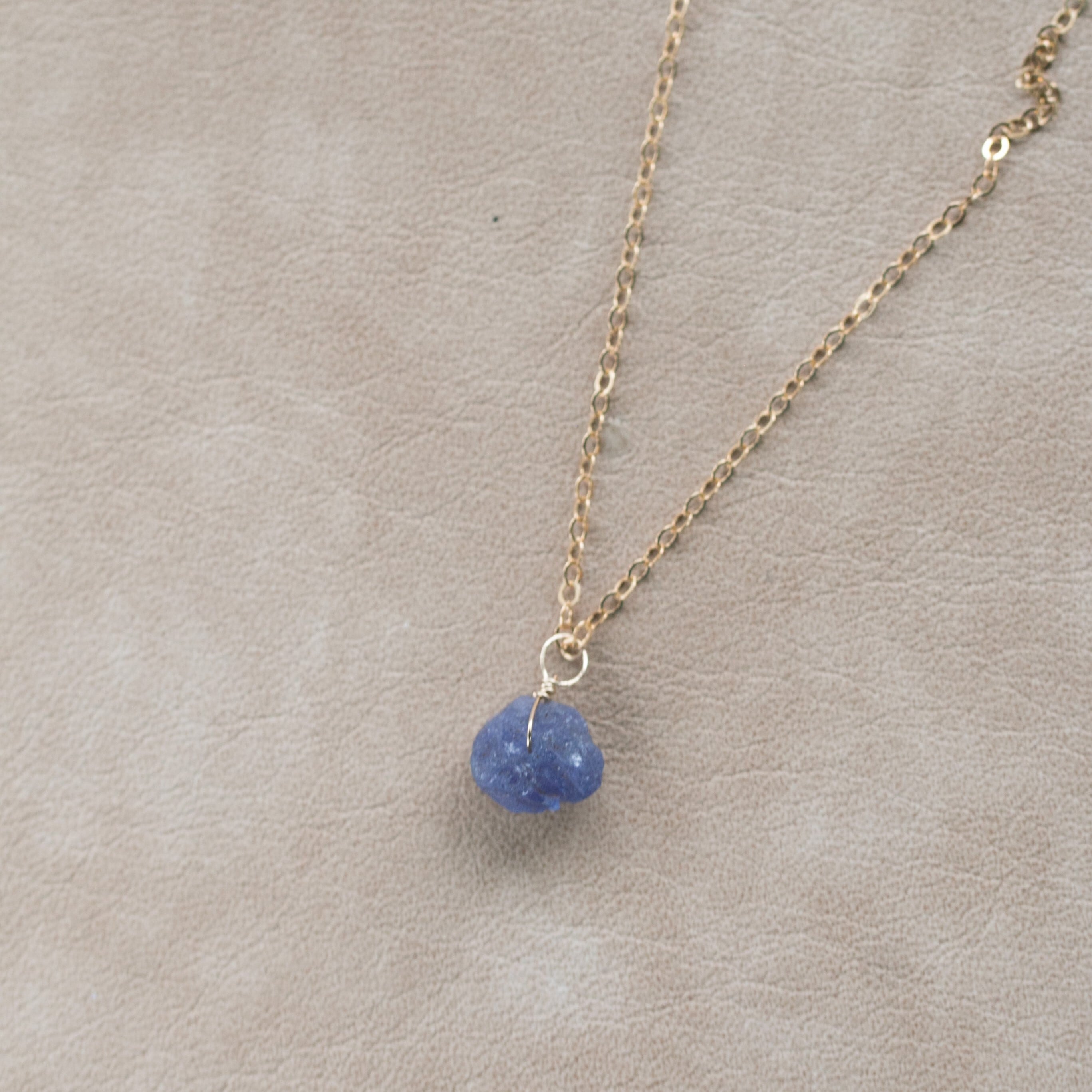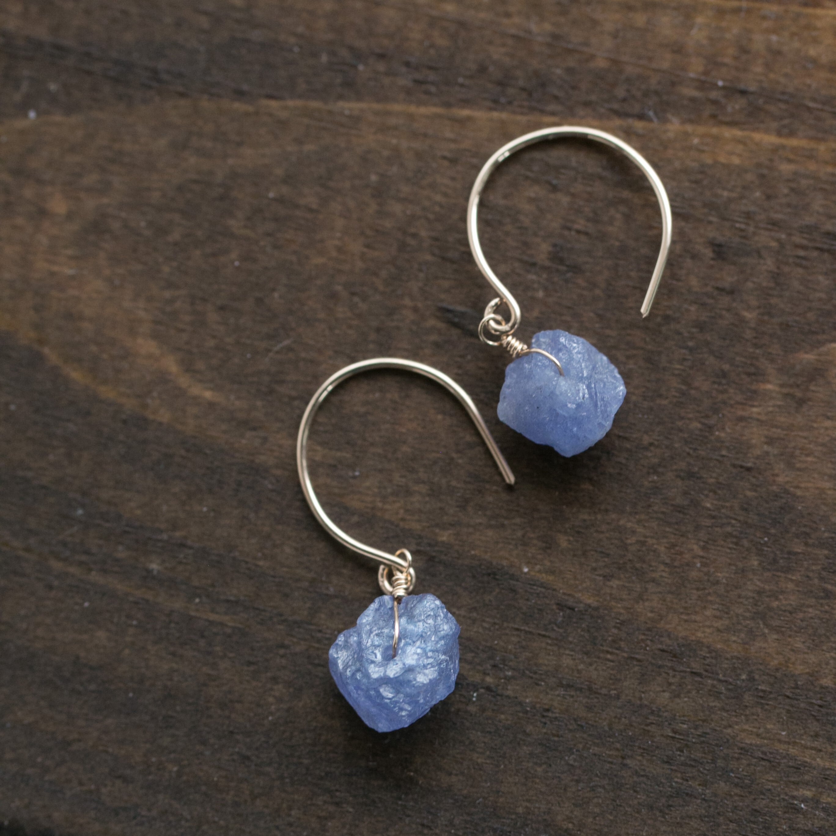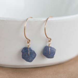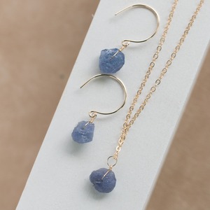 ギフトラッピング無料☆レア☆タンザナイト原石ラフカットAAA★一粒ペンダントとピアスのセット☆14kgfフックピアス・イヤリングへの変更無料♪