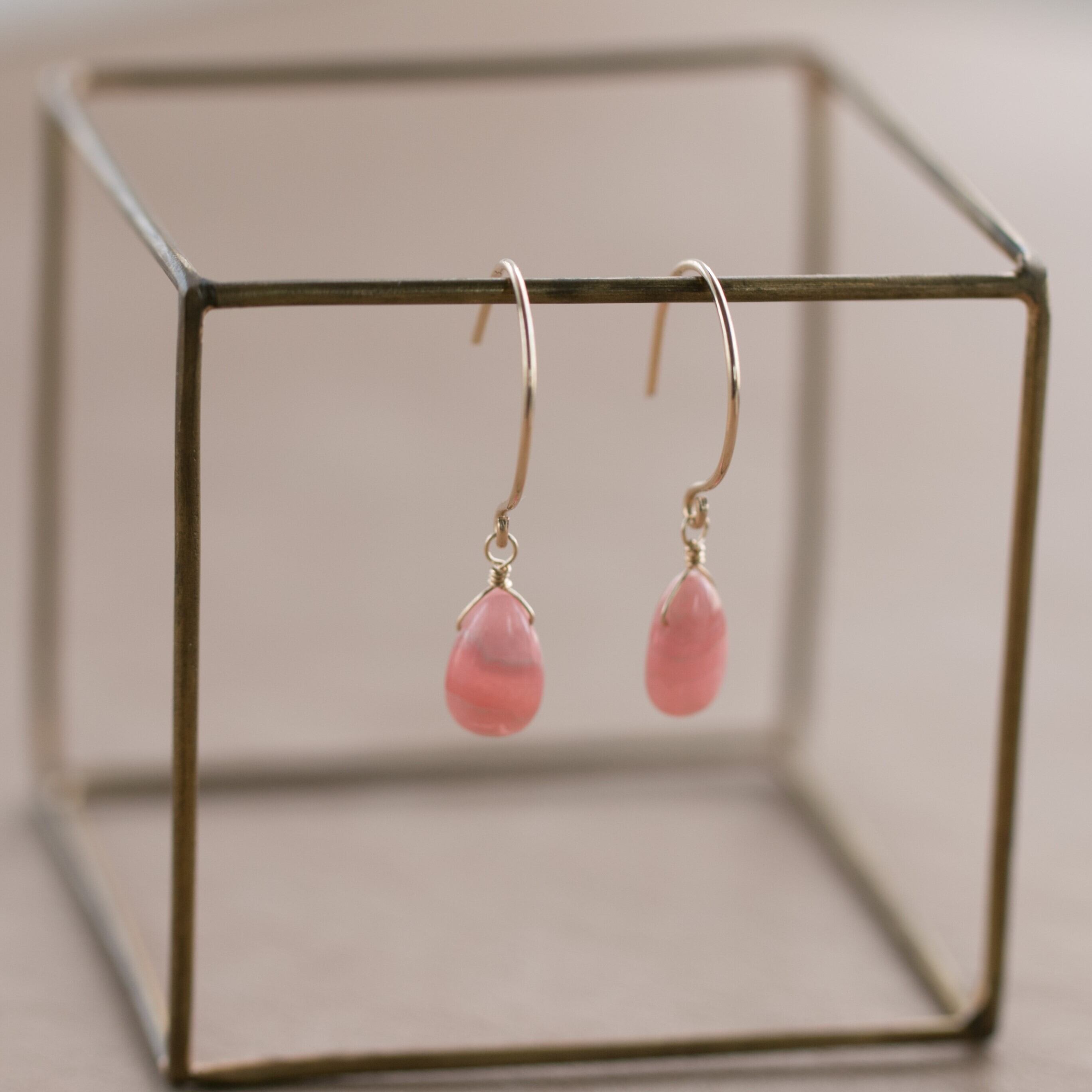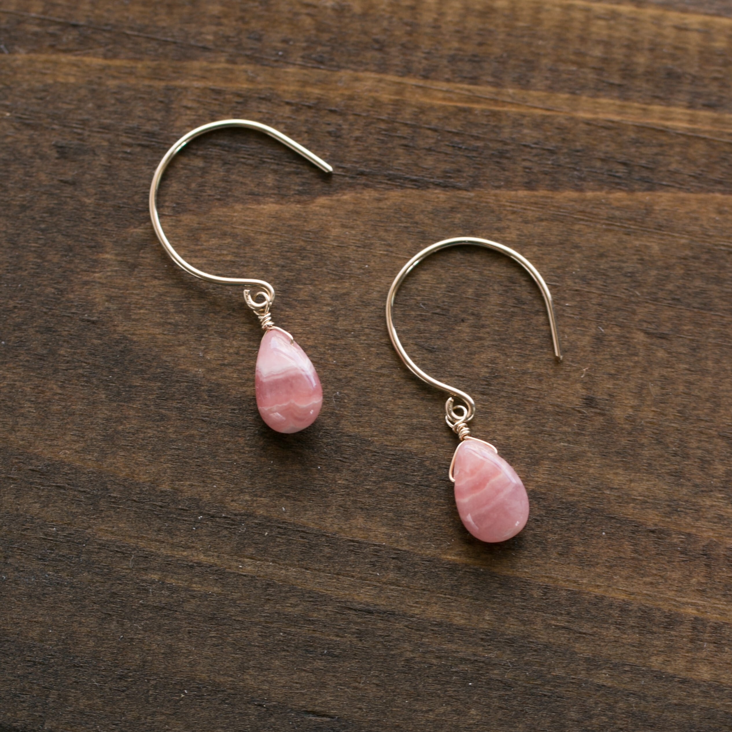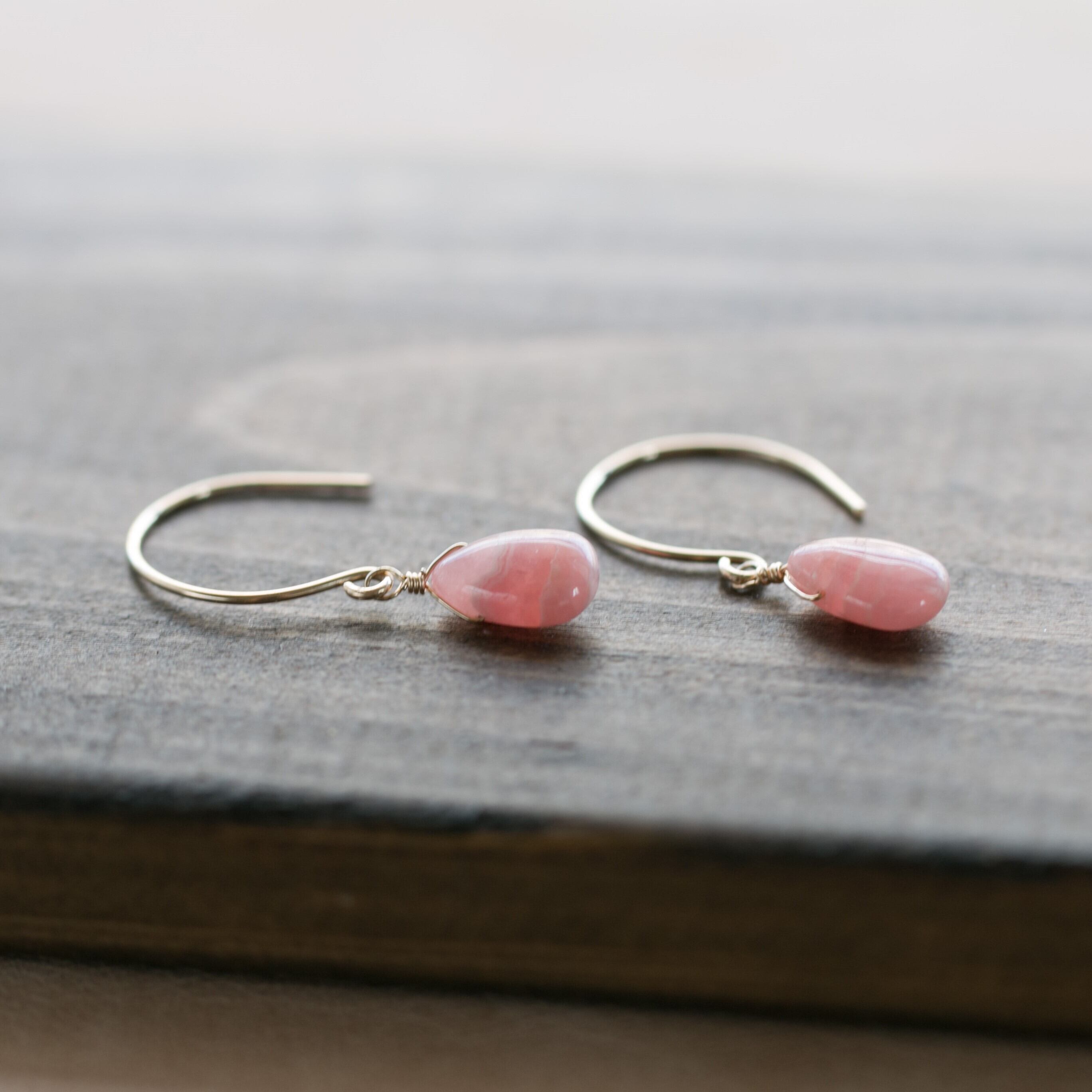 ☆高品質インカローズ・ロードクロサイトペアシェイプ☆14kgf☆ラウンドフックピアス・イヤリング変更無料!