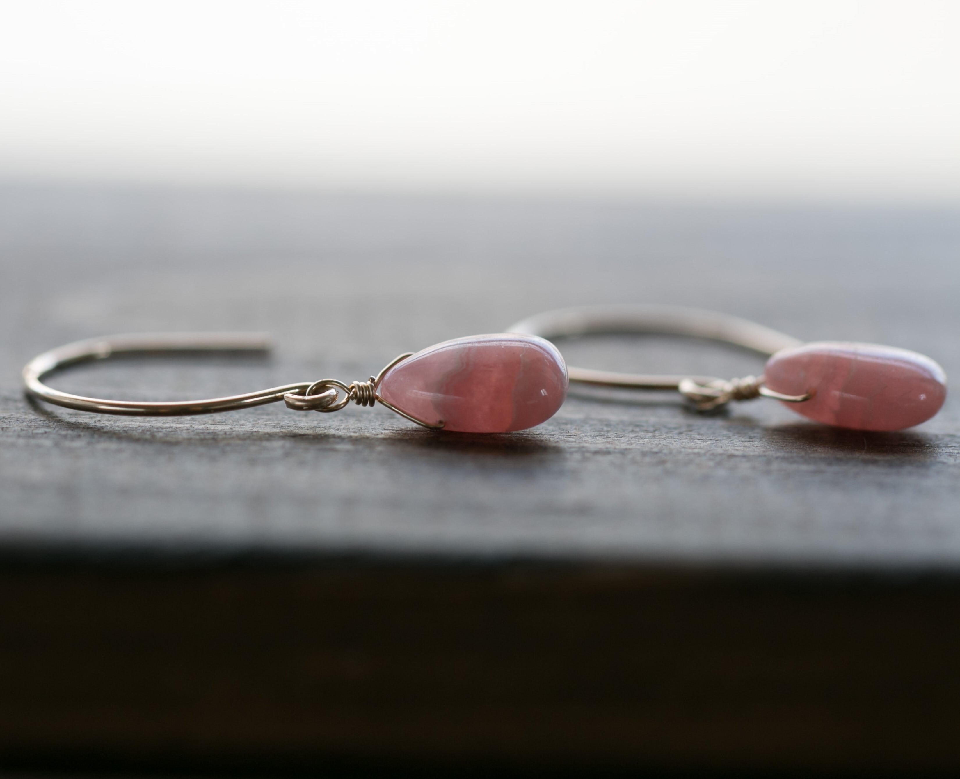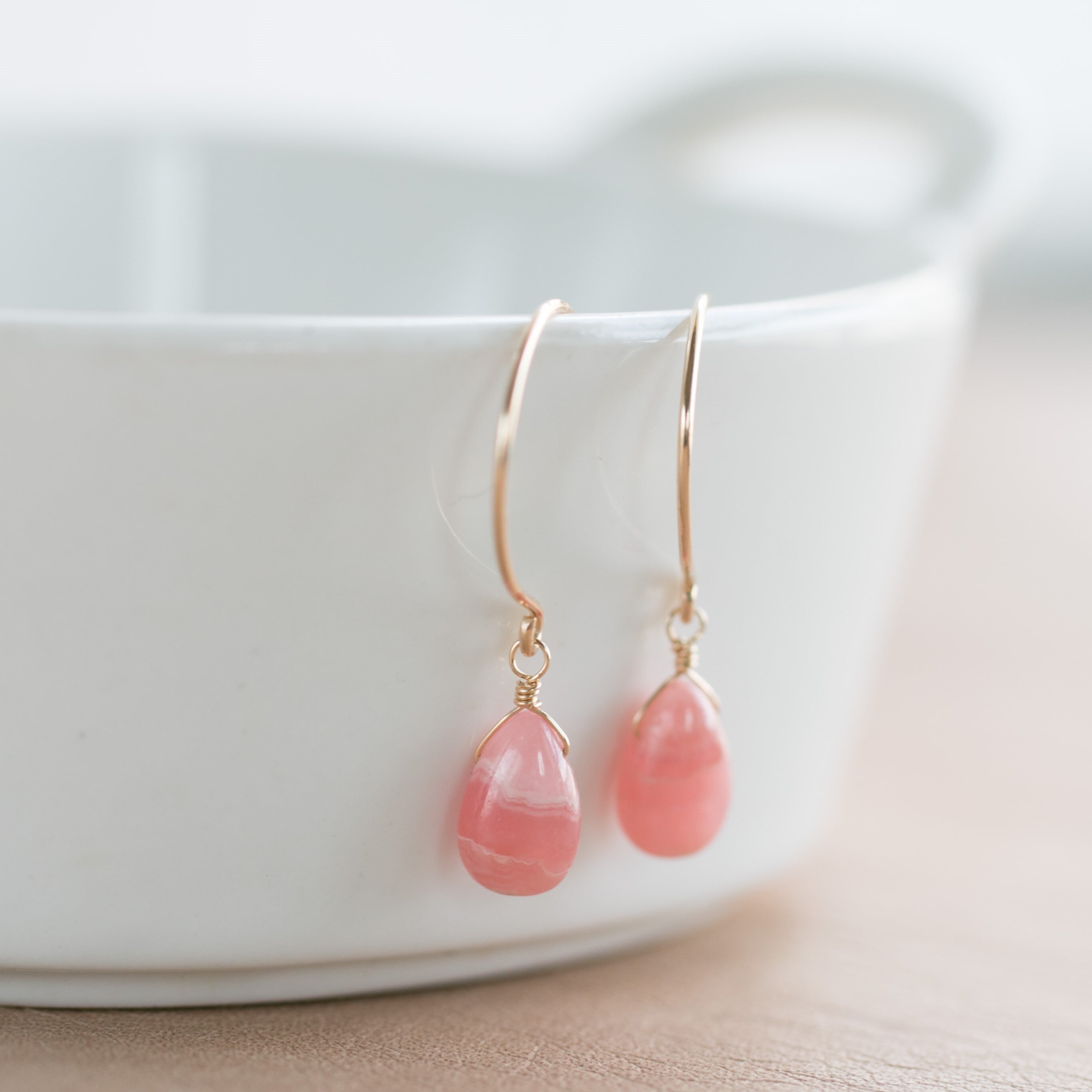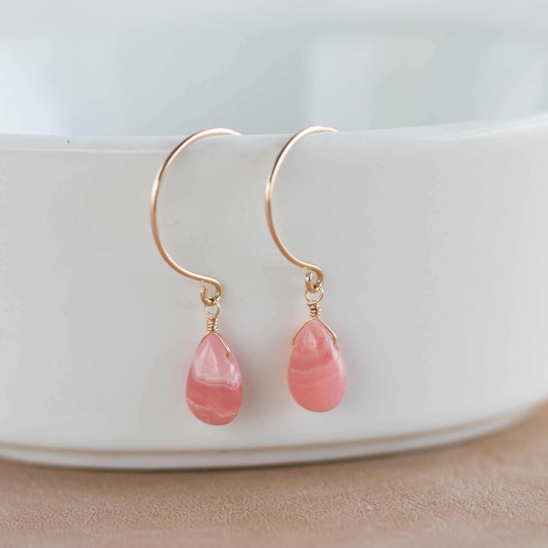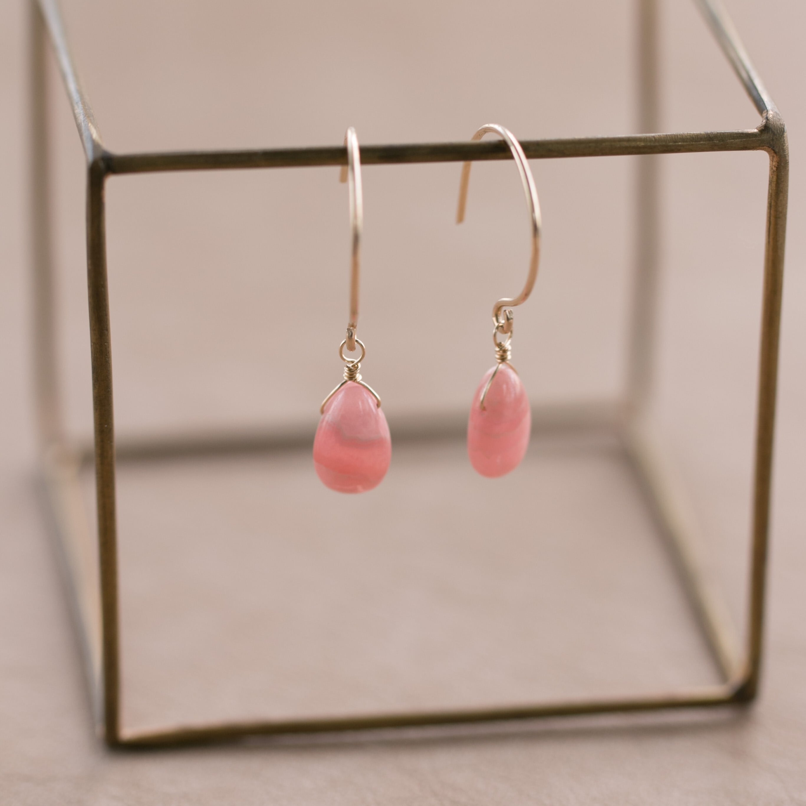 ☆高品質インカローズ・ロードクロサイトペアシェイプ☆14kgf☆ラウンドフックピアス・イヤリング変更無料!