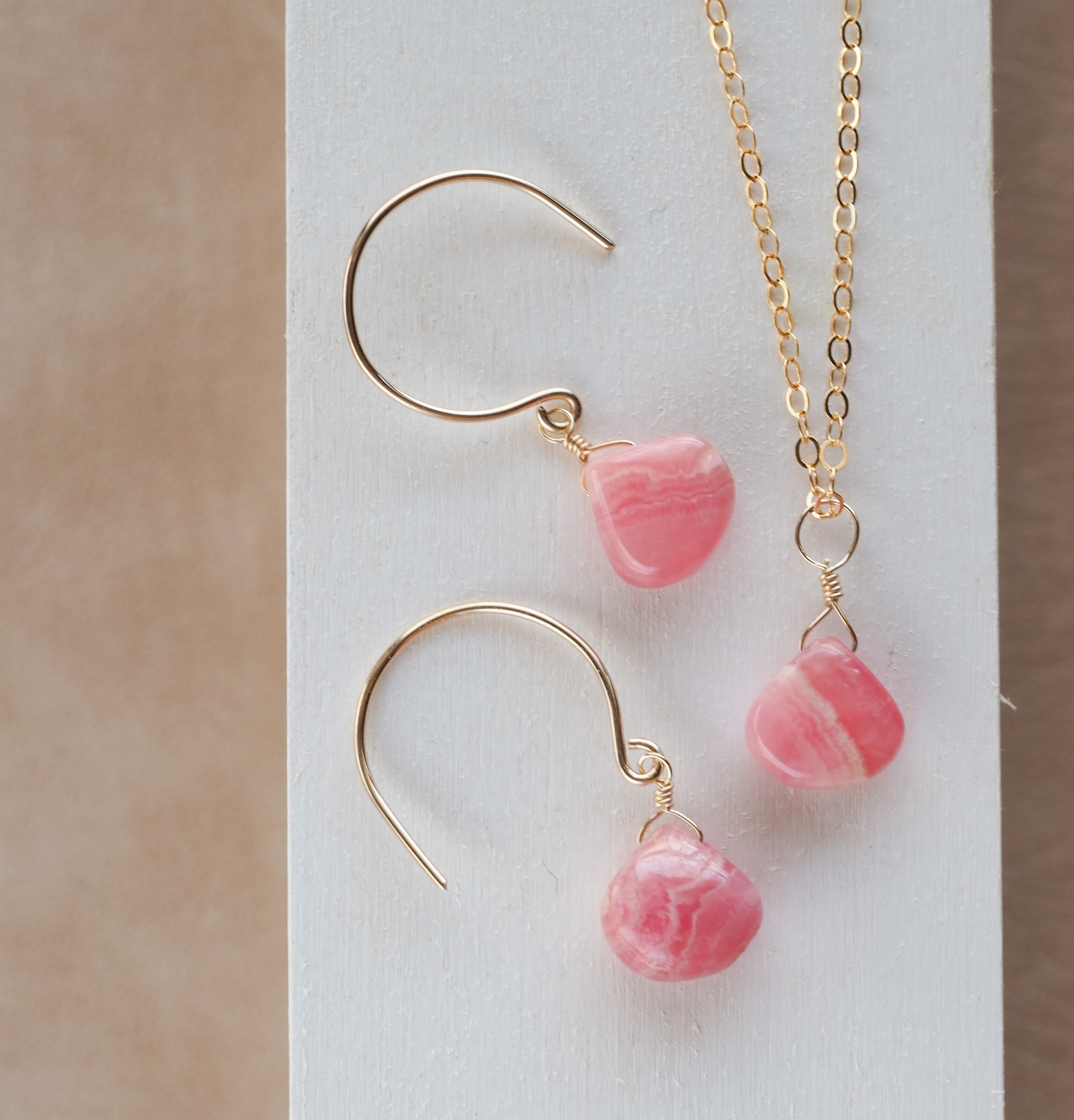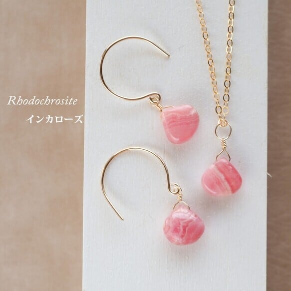 ギフトラッピング無料☆高品質インカローズ・ロードクロサイトハートAAA★一粒ペンダントとピアスのセット☆金具変更無料♪