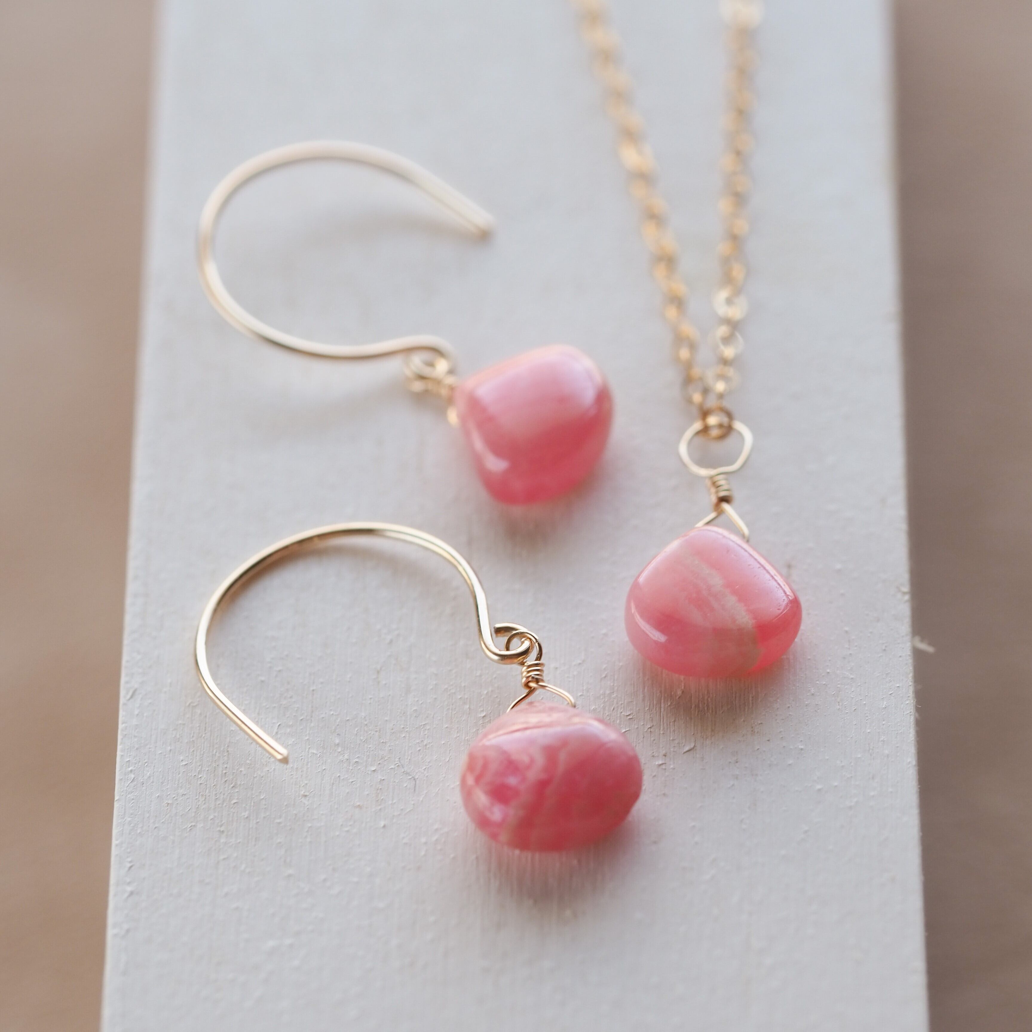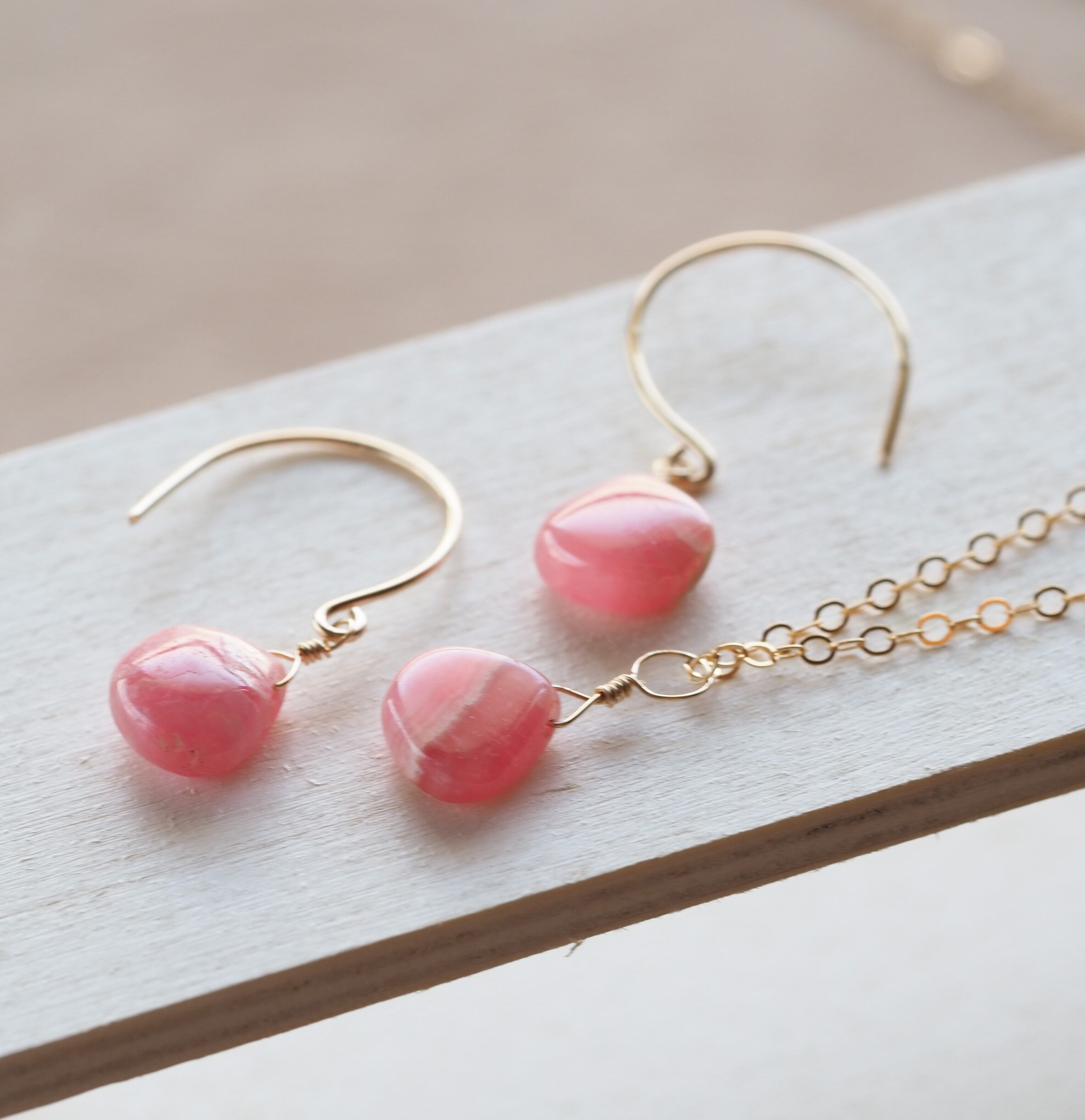 セット販売ギフトラッピング無料☆高品質インカローズハートAAA★一粒ペンダントとピアスのセット☆