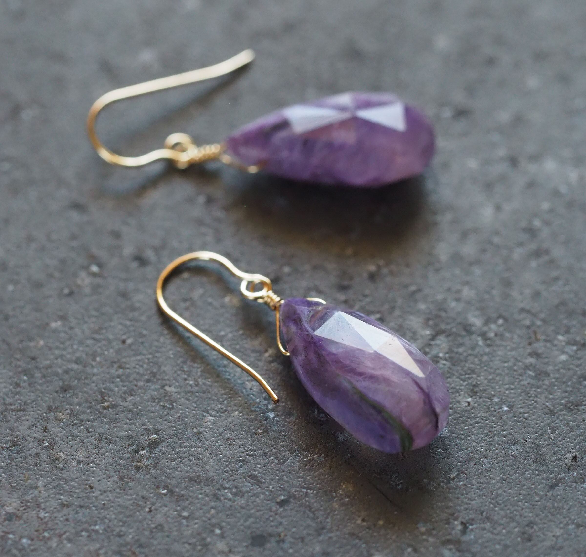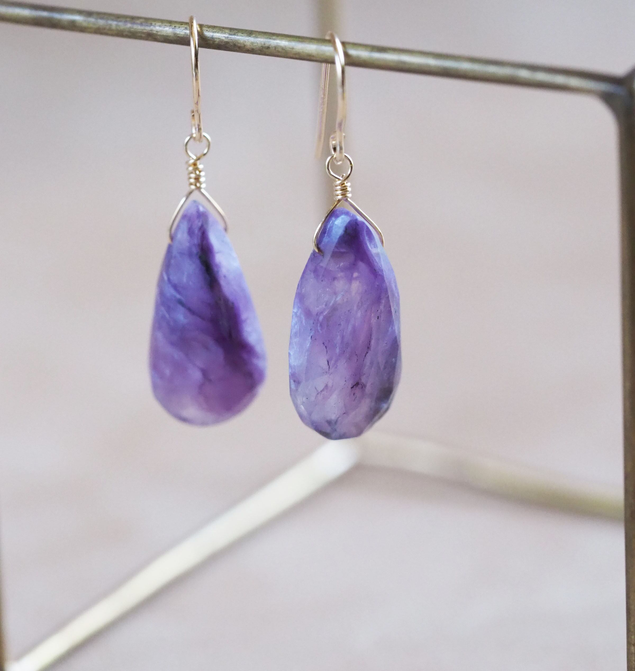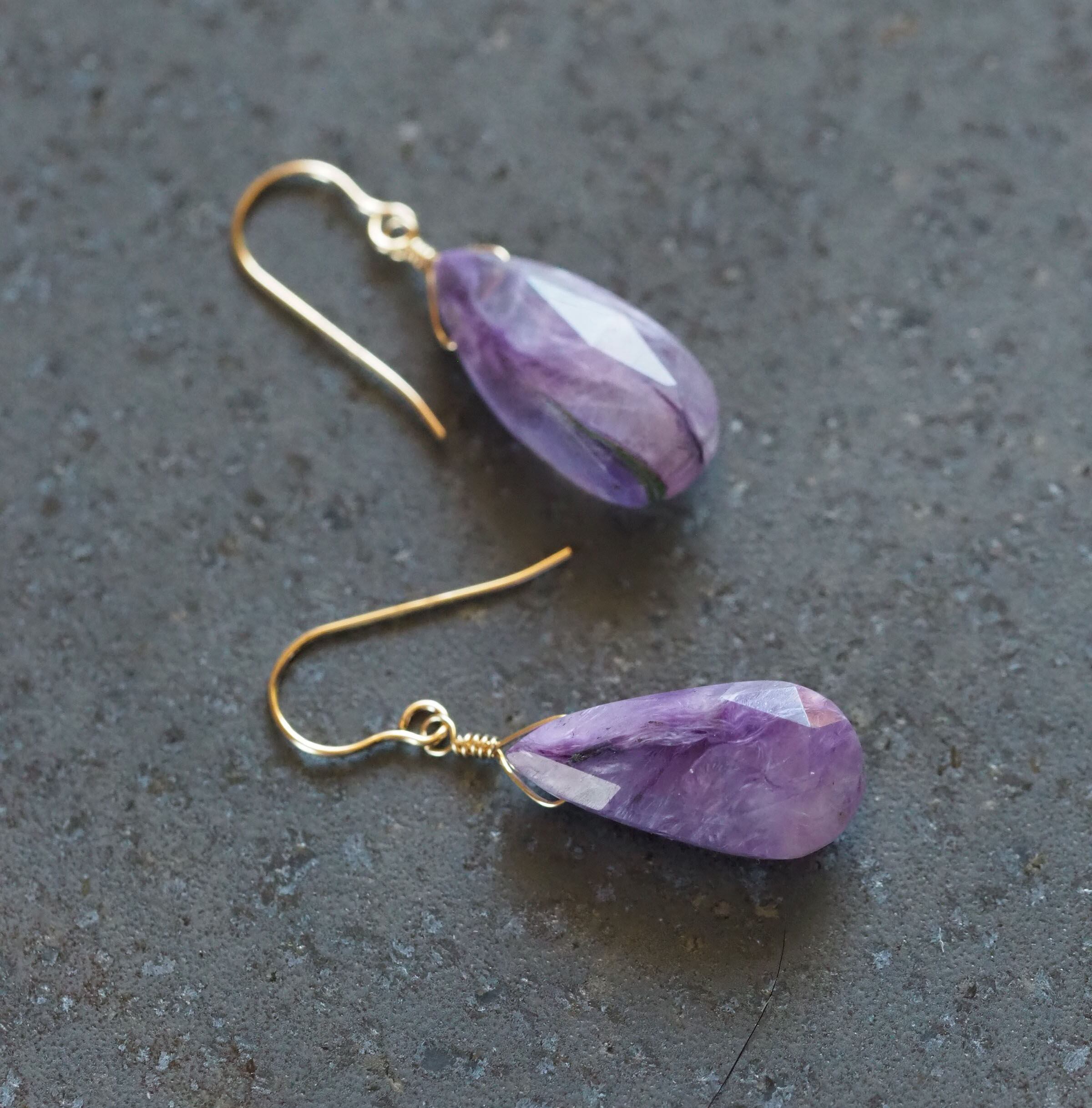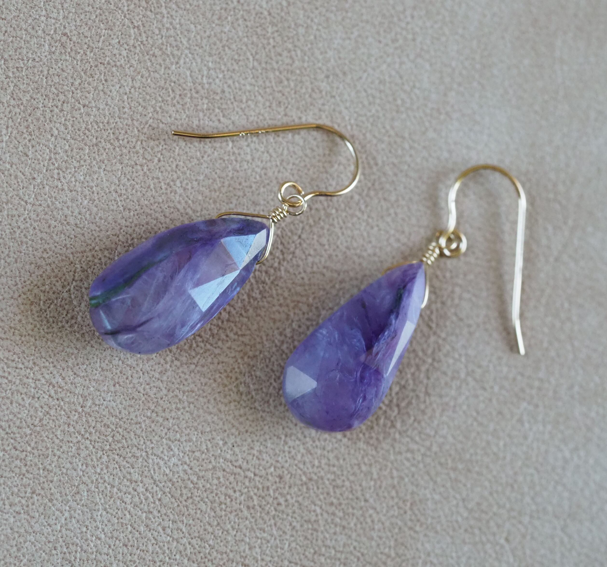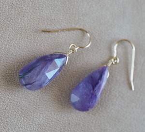 ☆高品質ロシアンパープルチャロアイト Russian Charoite☆14kgf☆フックピアス・イヤリング