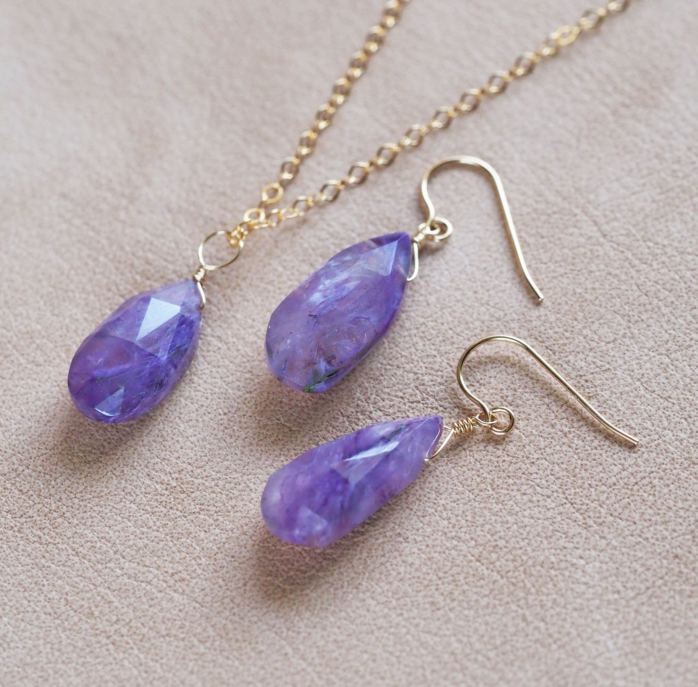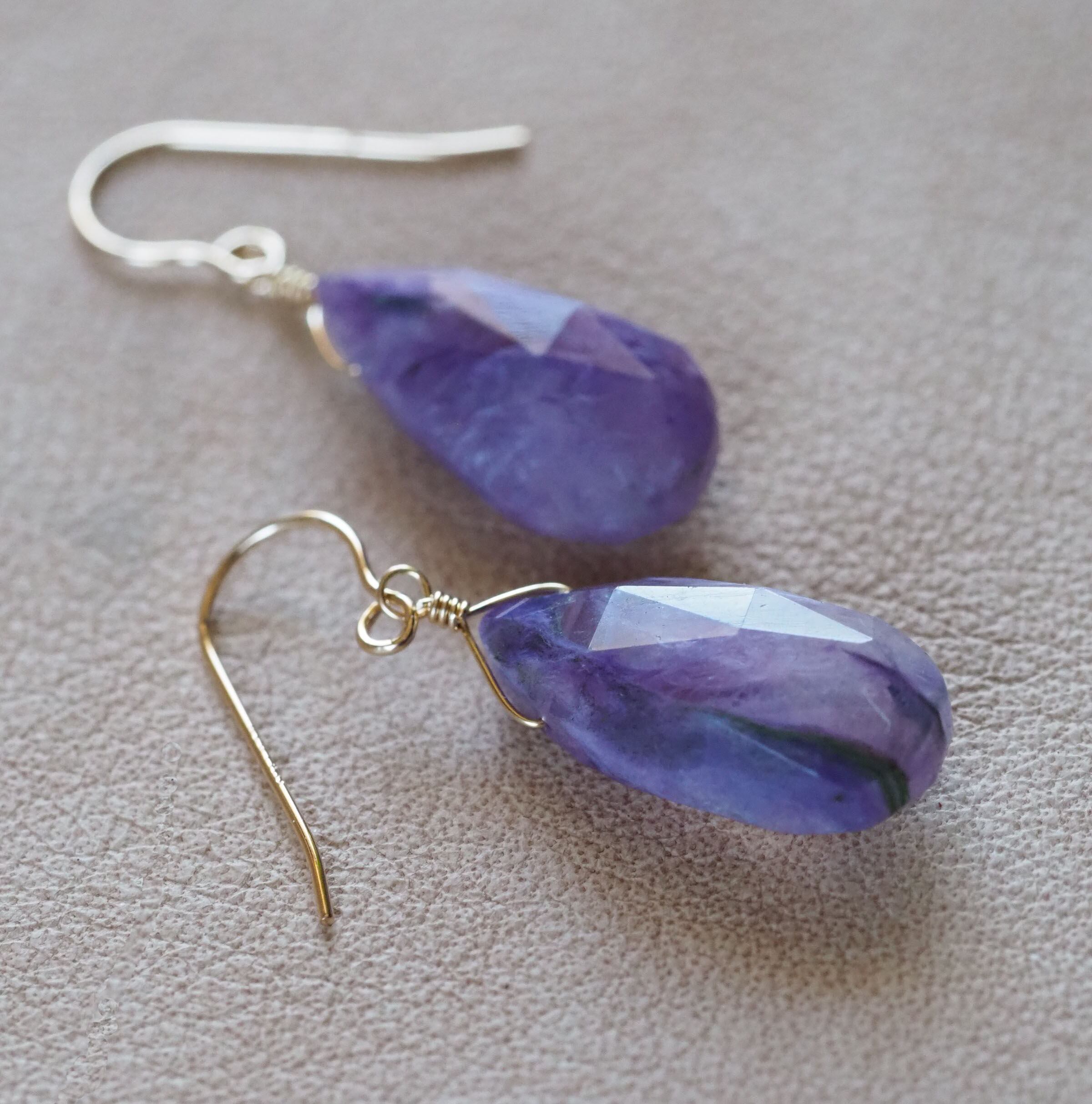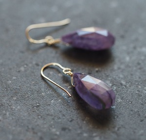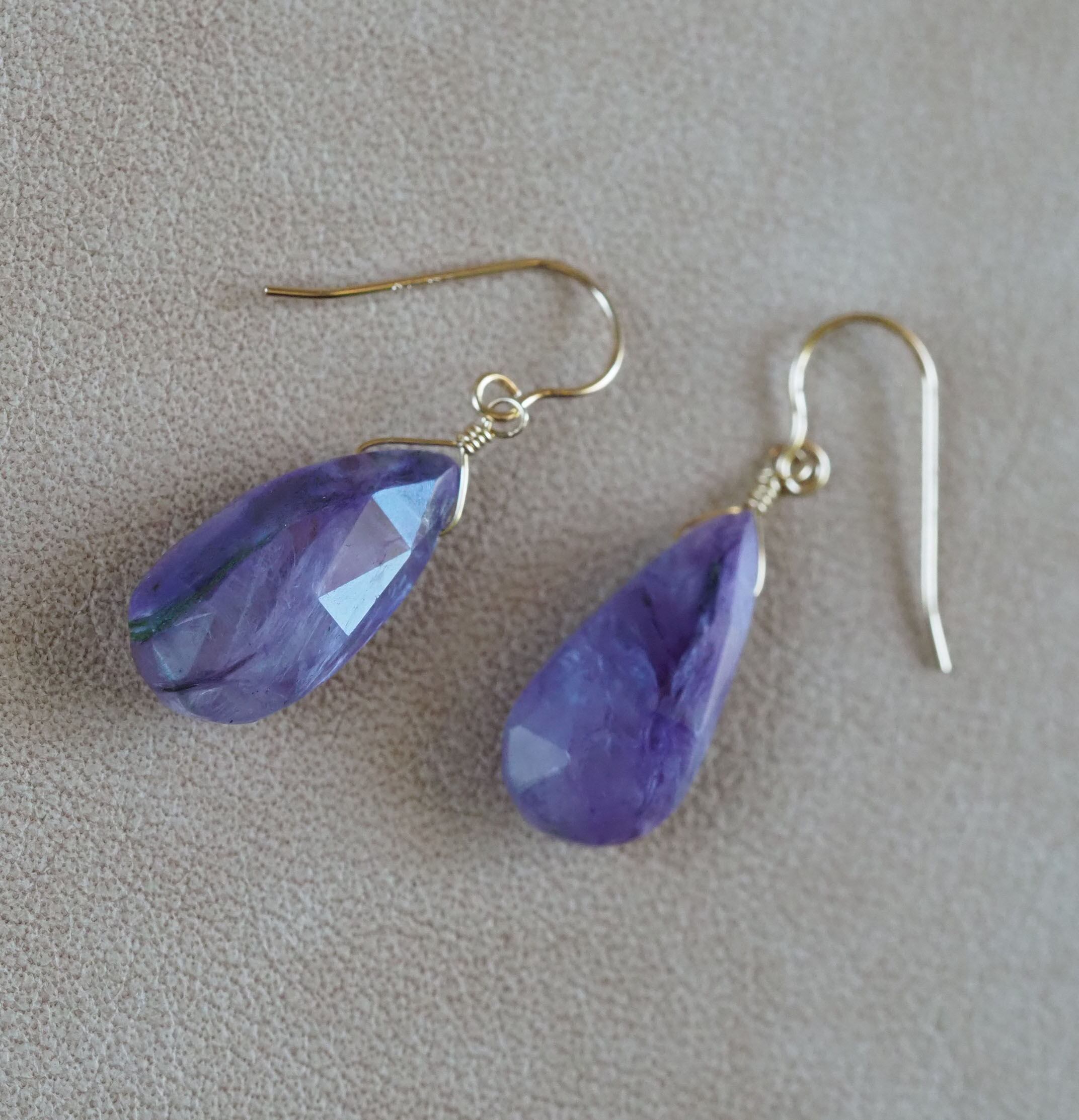 ☆高品質ロシアンパープルチャロアイト Russian Charoite☆14kgf☆フックピアス・イヤリング