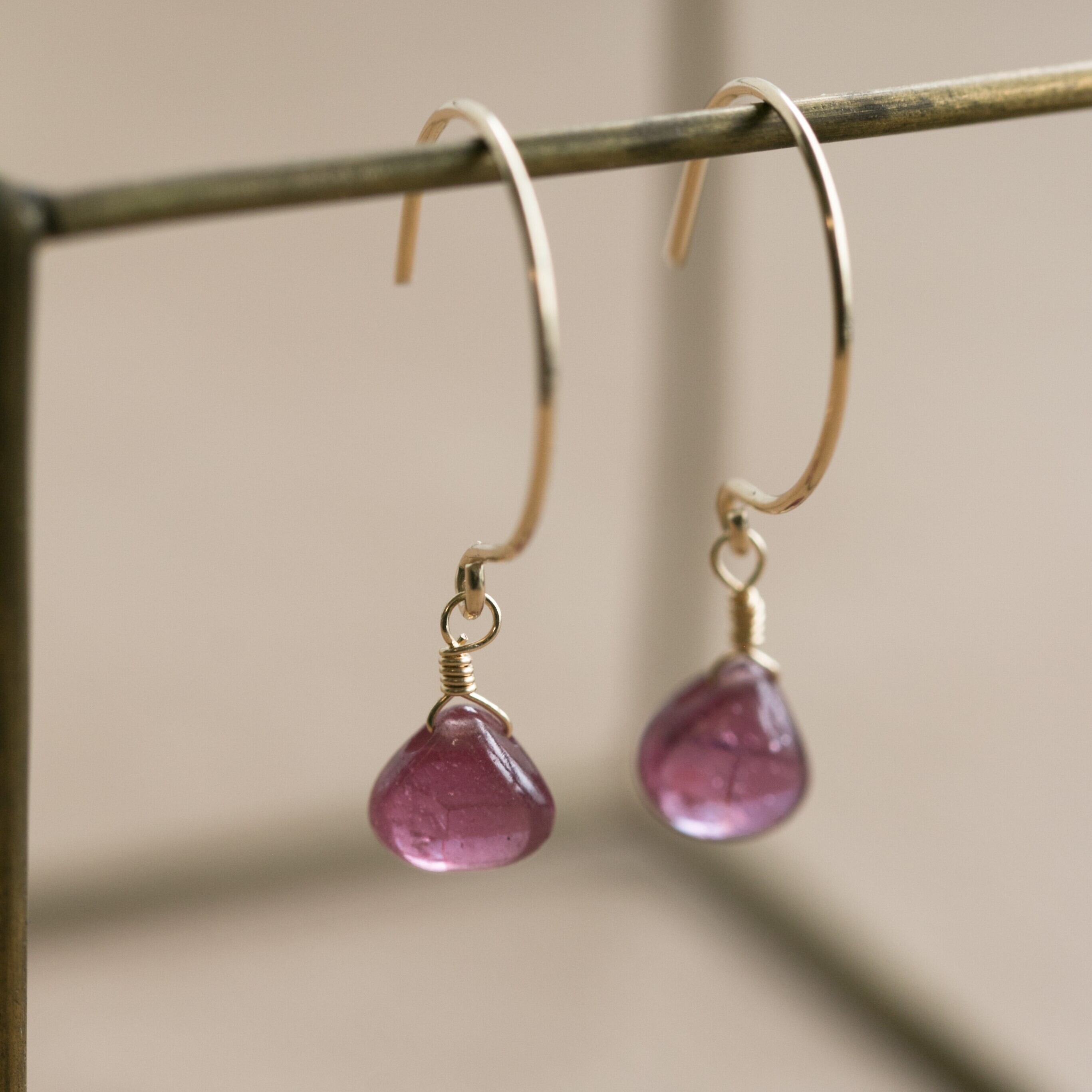 レアピンクサファイアAAA★フープピアス☆14kgf☆イヤリング変更無料!