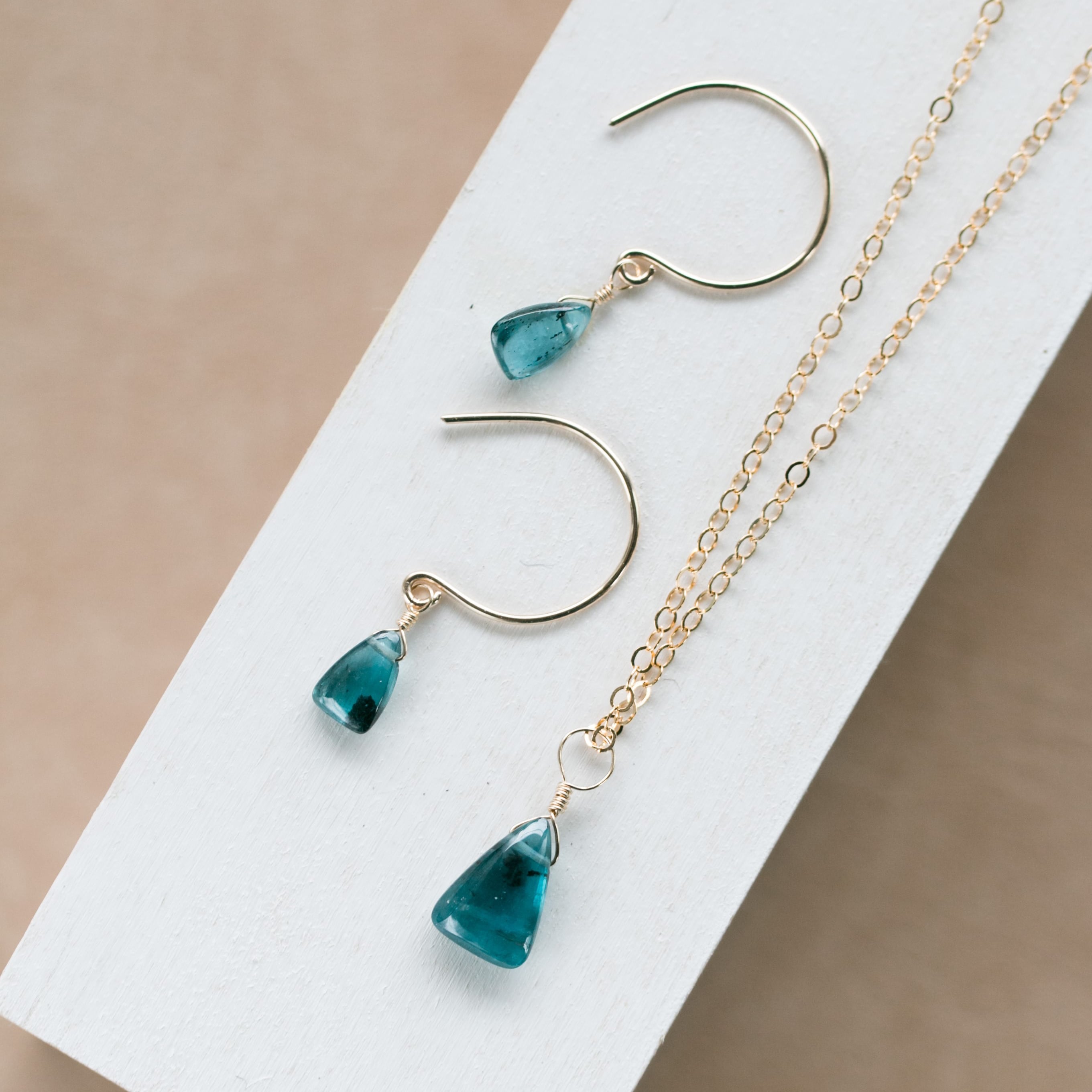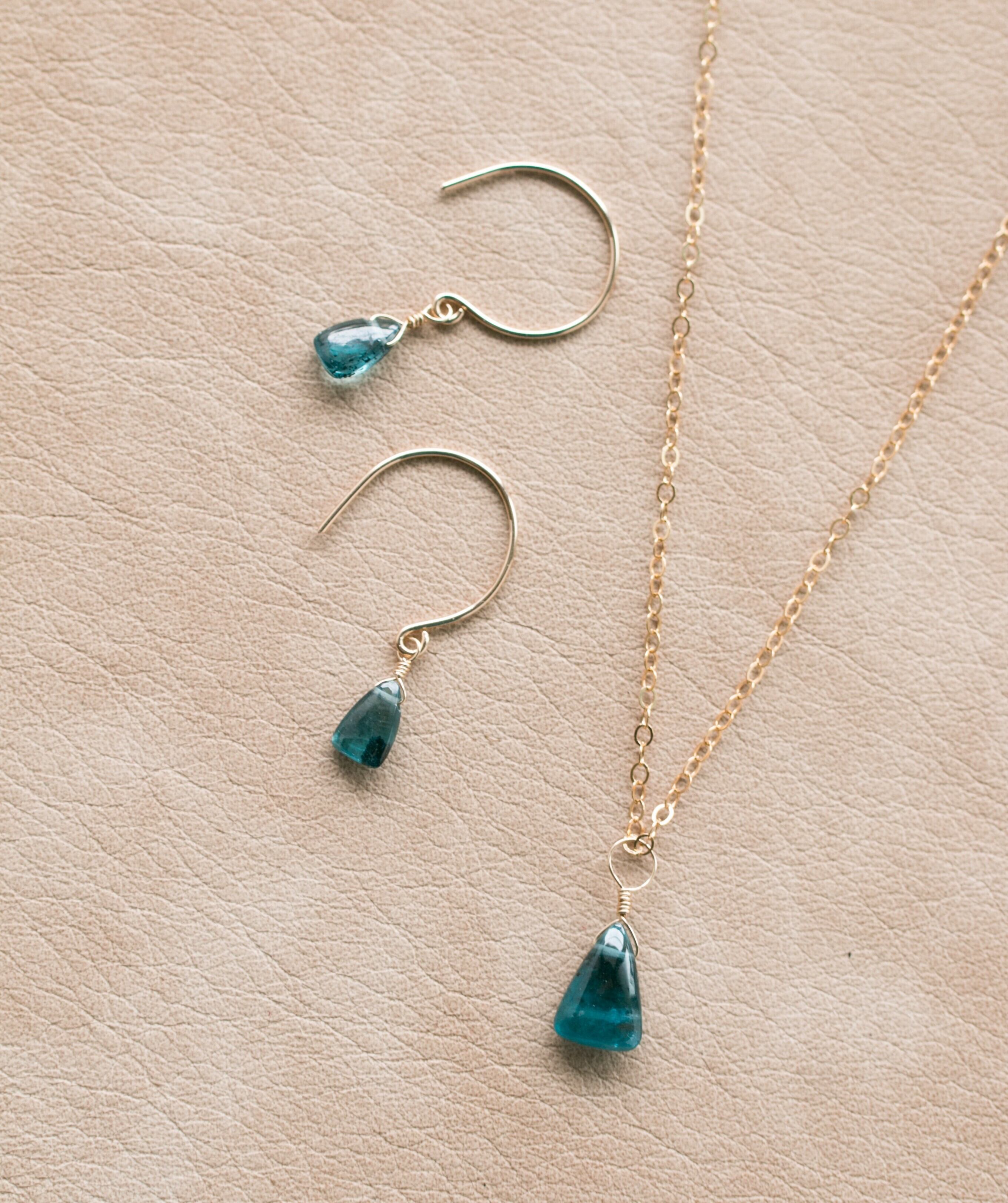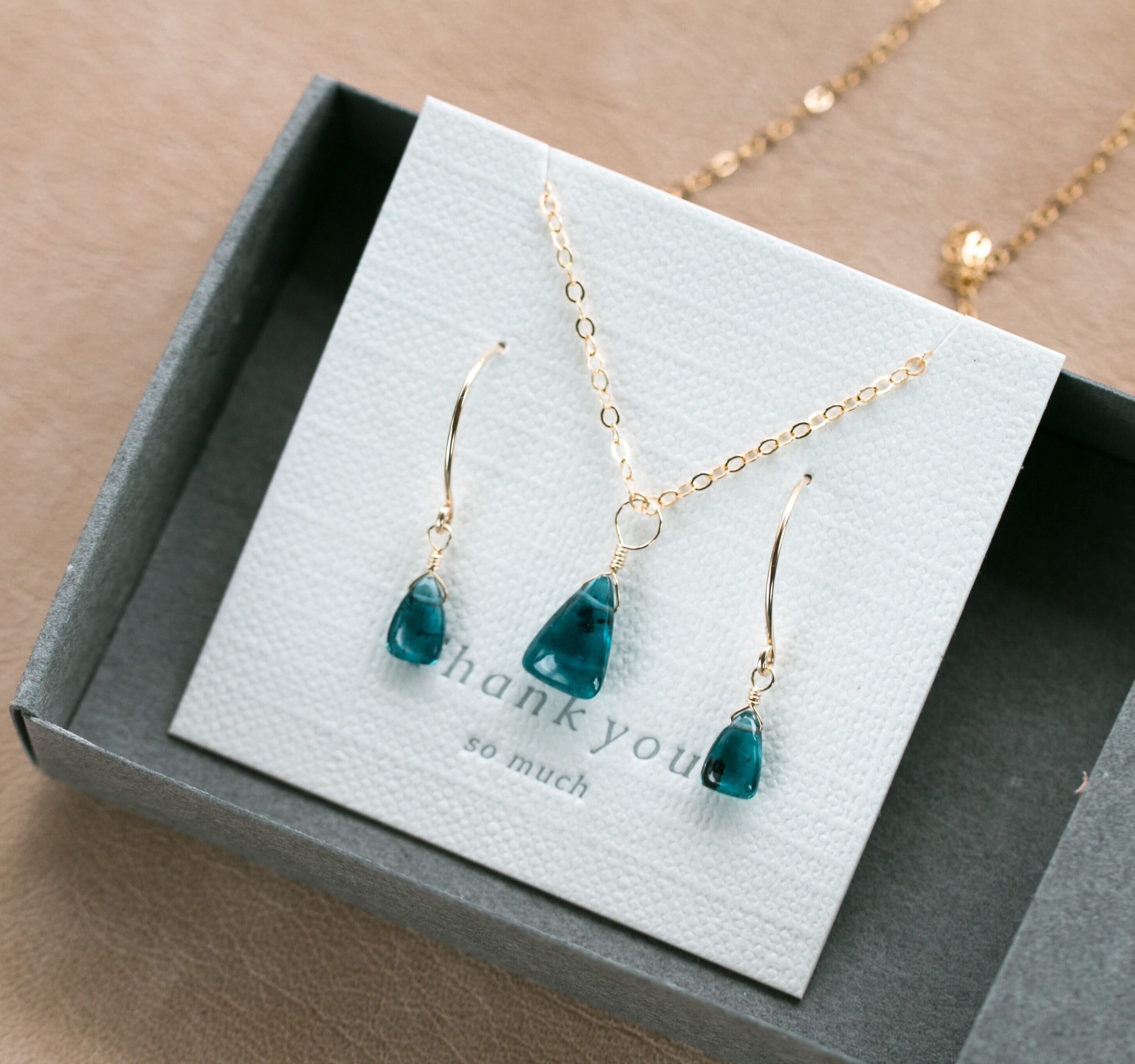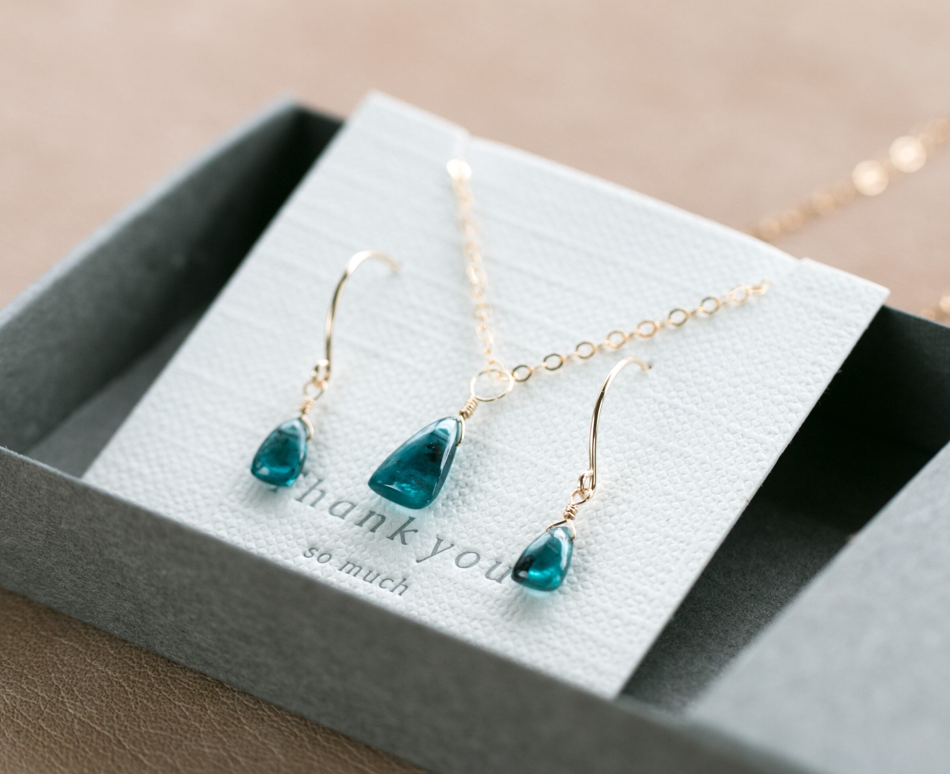 ギフトラッピング無料☆オリッサインディアカイヤナイトペアシェイプAAA★一粒ペンダントとピアスのセット☆14kgfフックピアス・イヤリングへの変更無料♪
