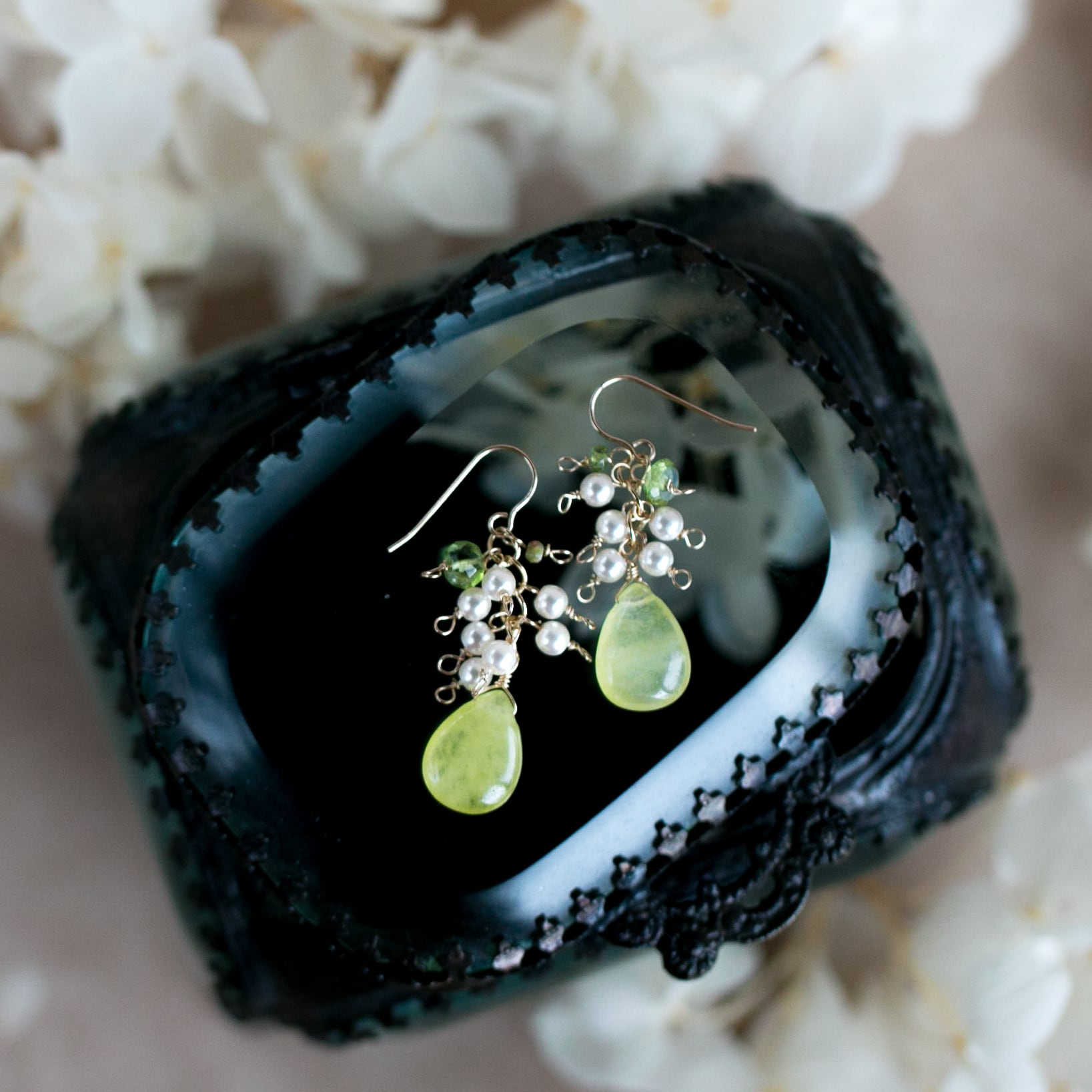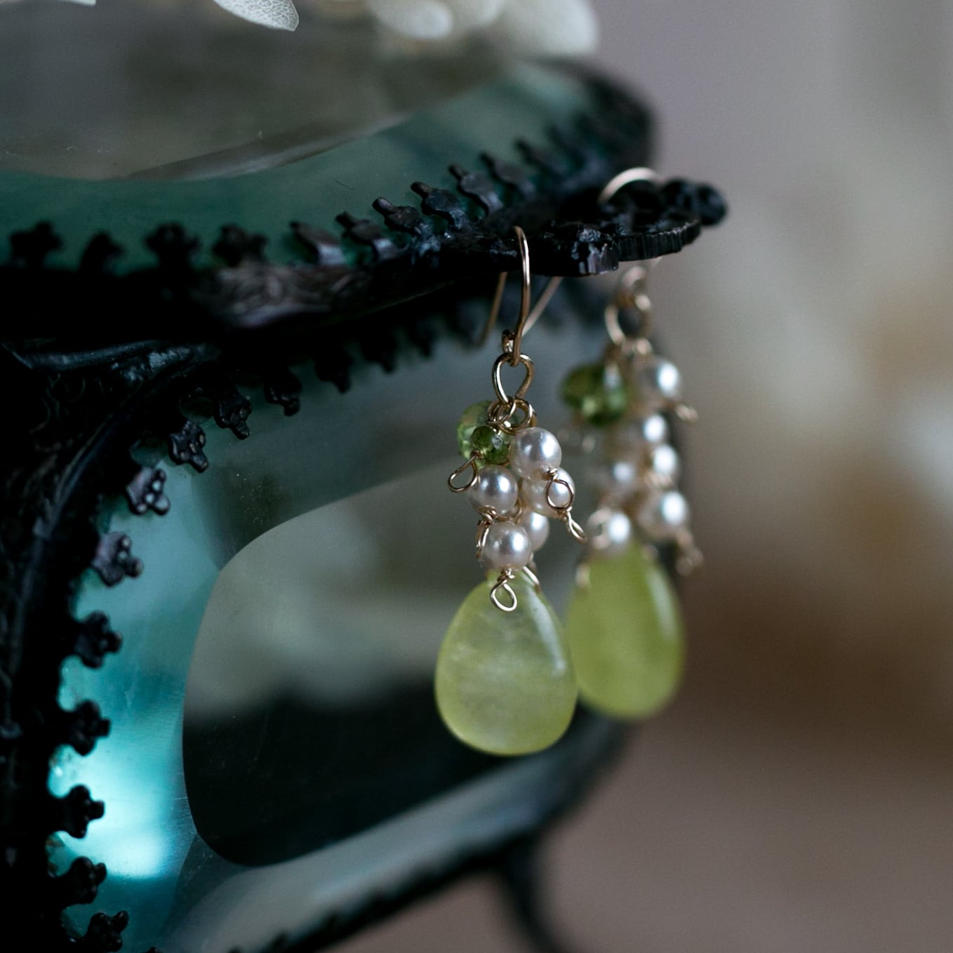 春から夏にかけて・・耳に揺れるしずくのモチーフは、オープンな心で幸運を引き寄せるお手伝いをしてくれます♡