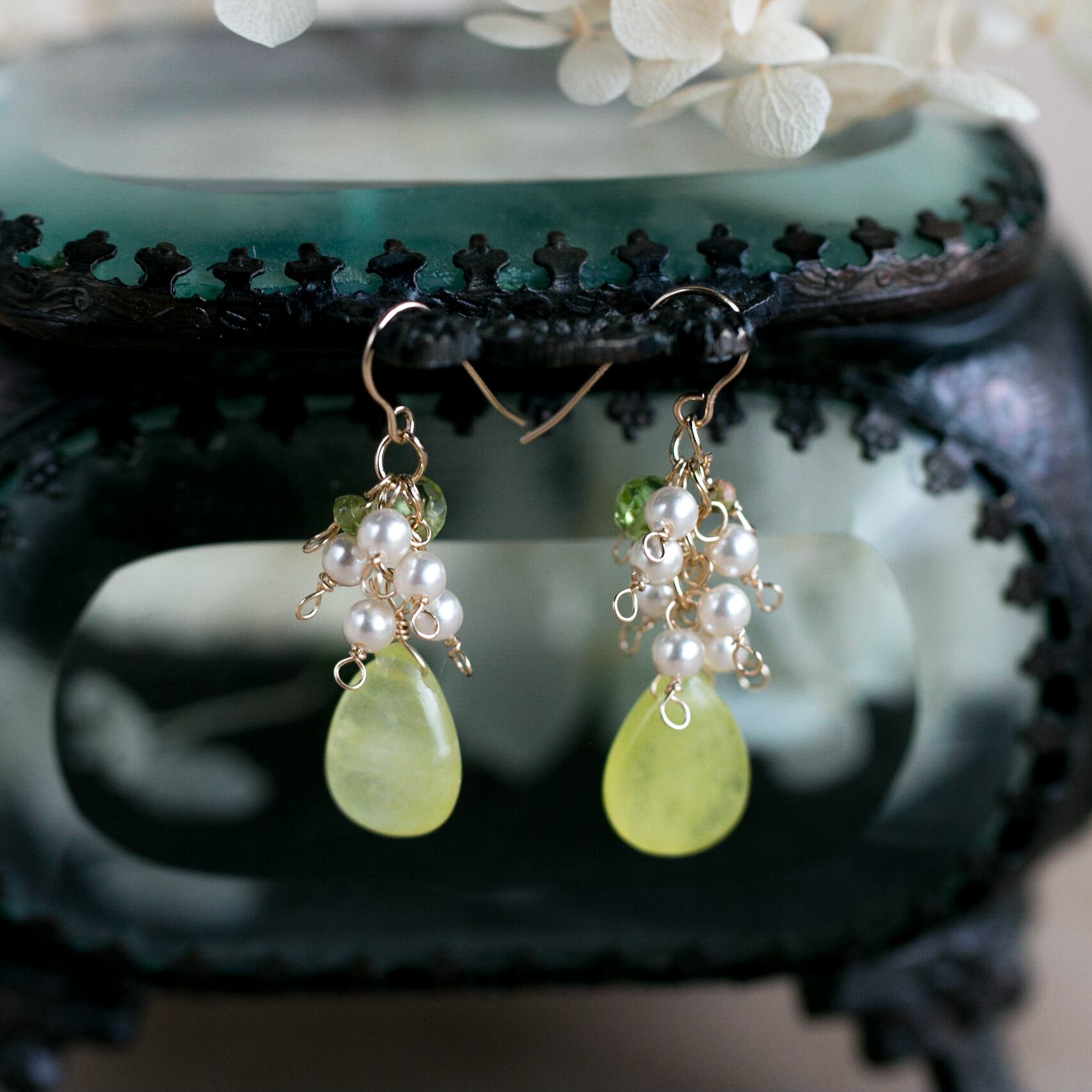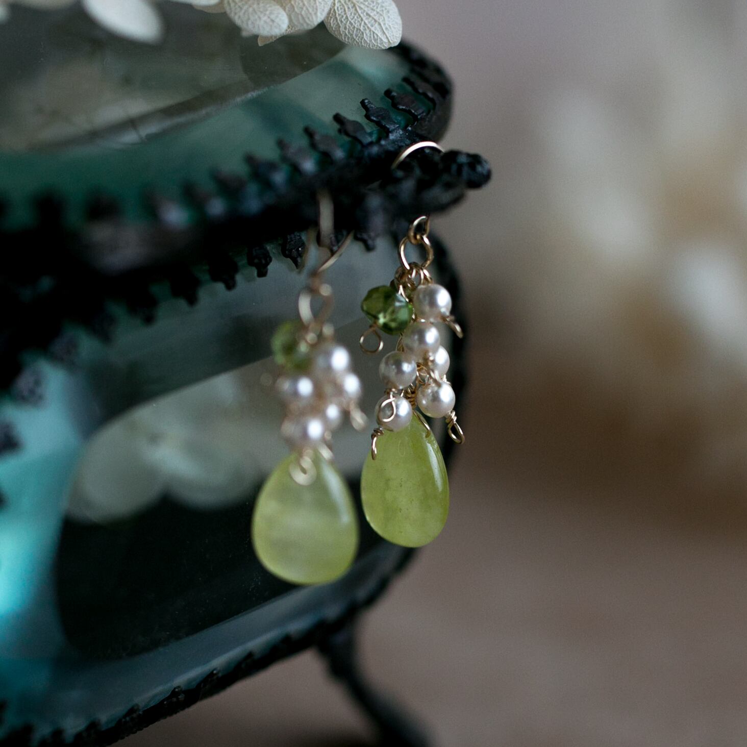 ♡若草色の滴ピアス・イヤリング♡《14kgf》