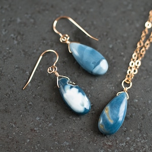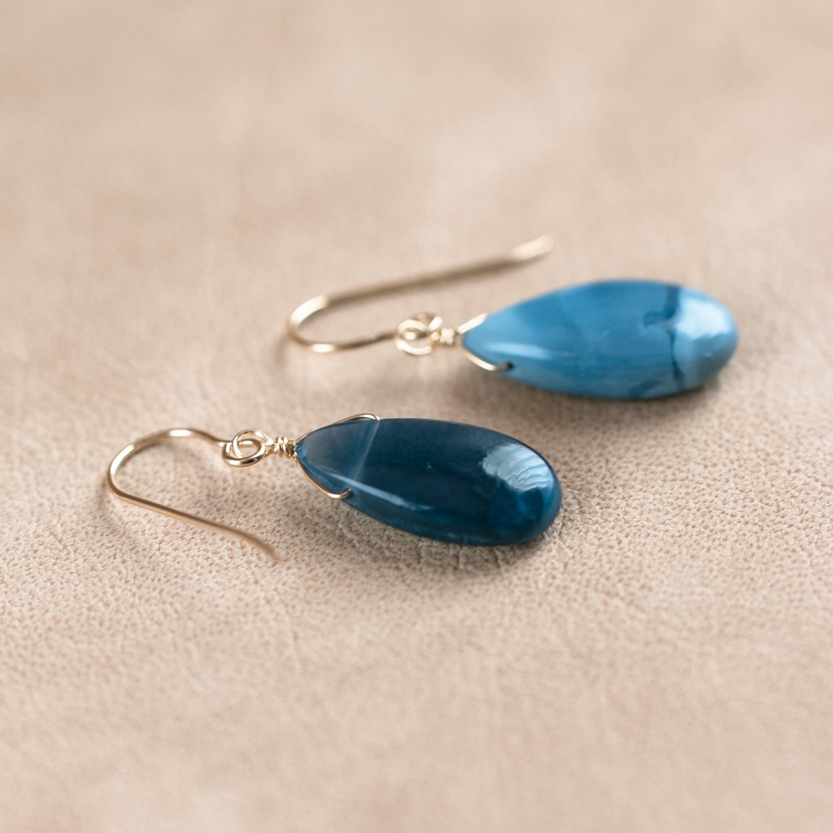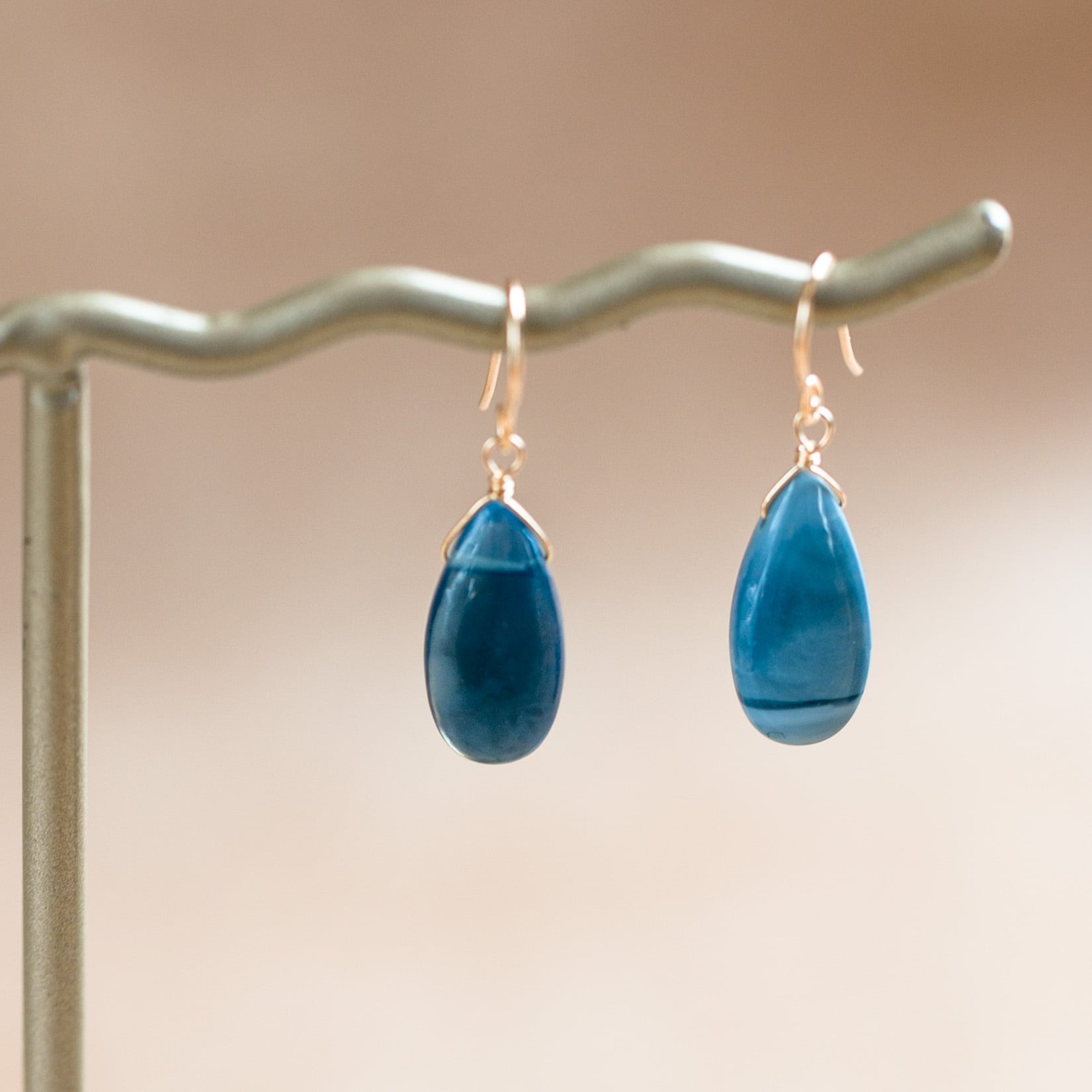 ☆希少高品質ペルジアンブルーオパールスムースペア blue opal AAA☆14kgf☆フックピアス・イヤリング