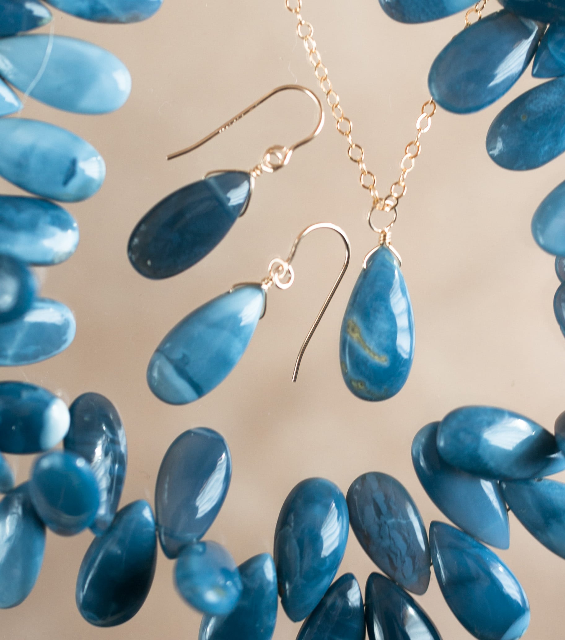 【 素材 】 宝石質☆ペルジアンブルーオパールスムースペア Peruvian blue opal AAA☆