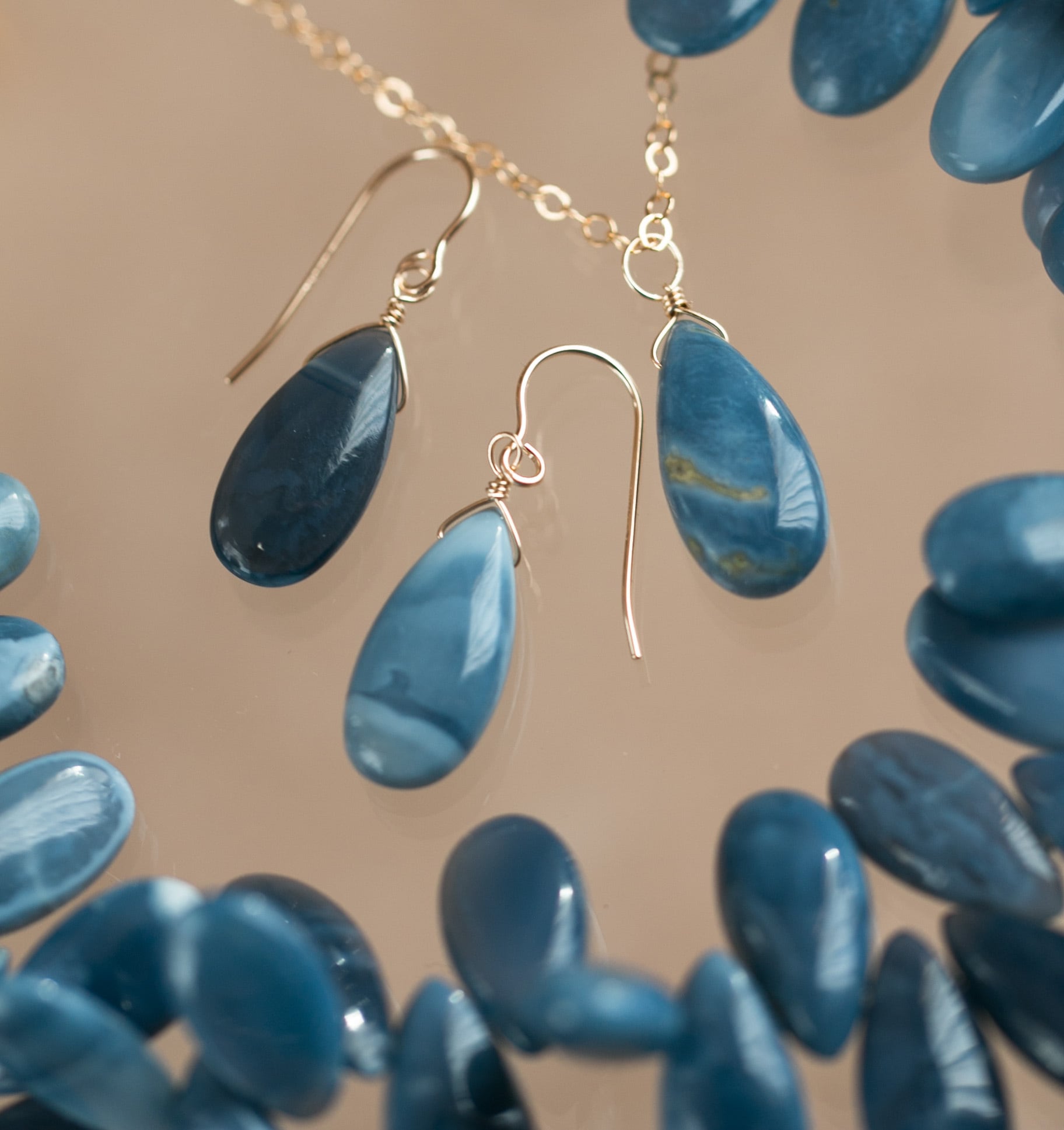 ☆希少高品質ペルジアンブルーオパールスムースペア Peruvian blue opal AAA☆14kgf☆フックピアス・イヤリング