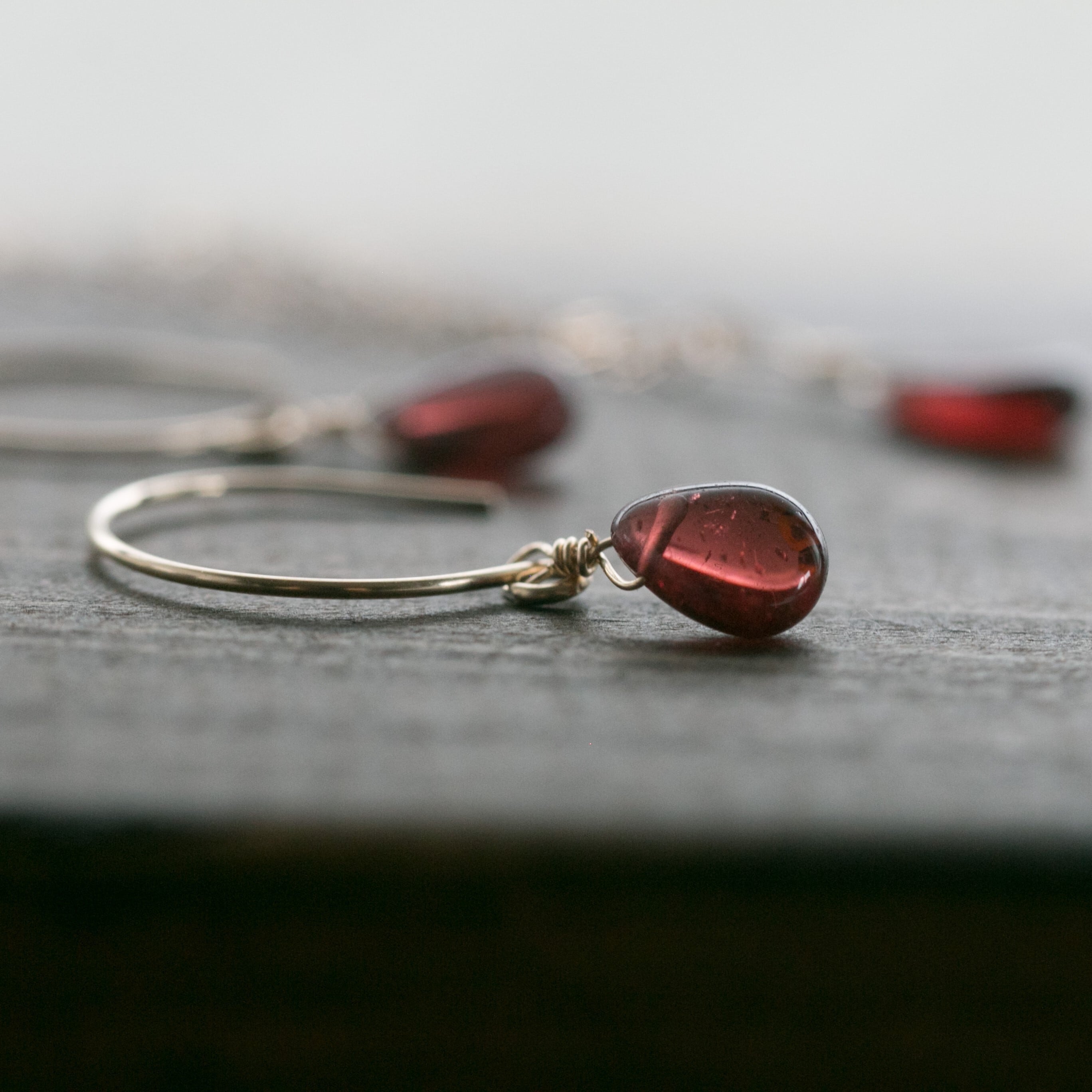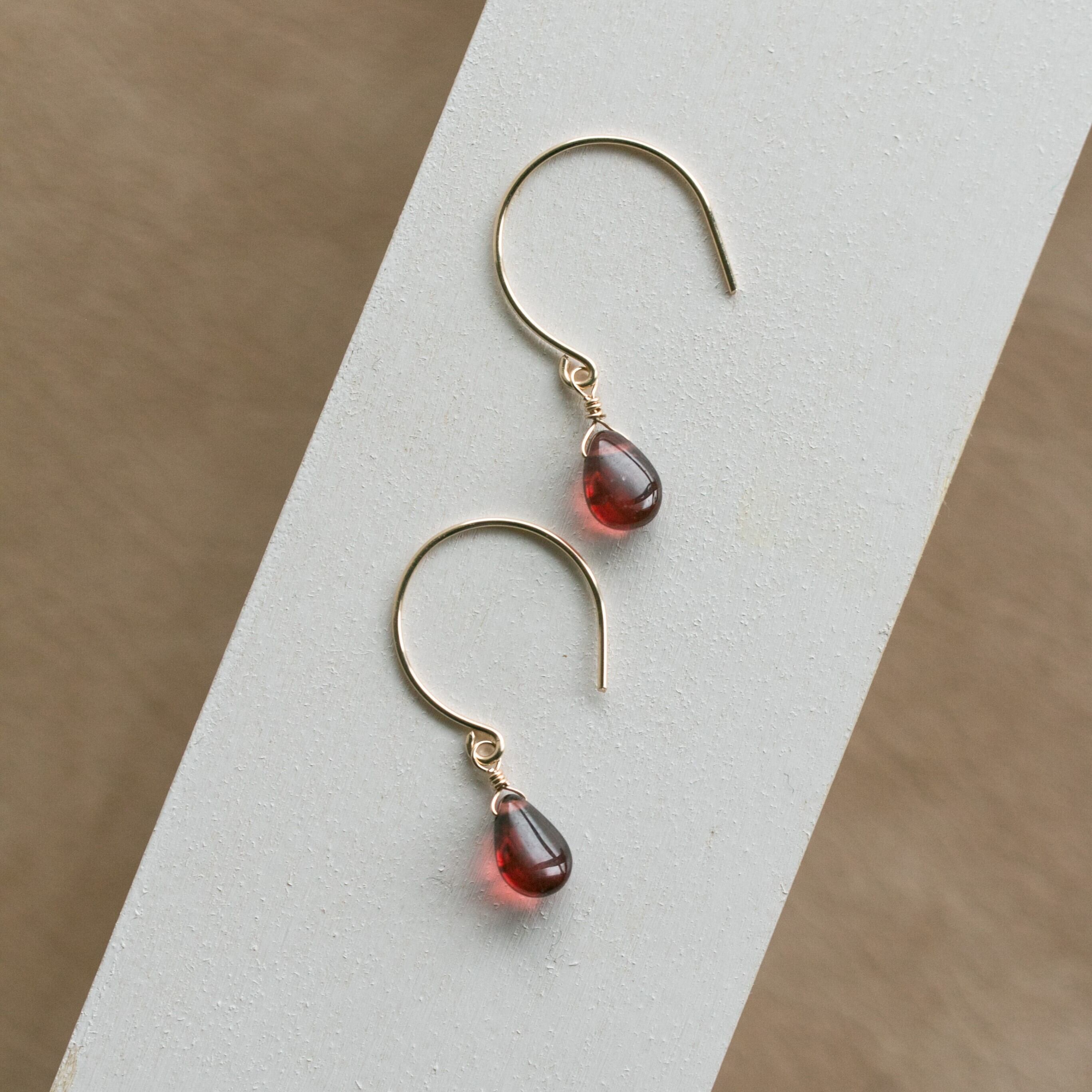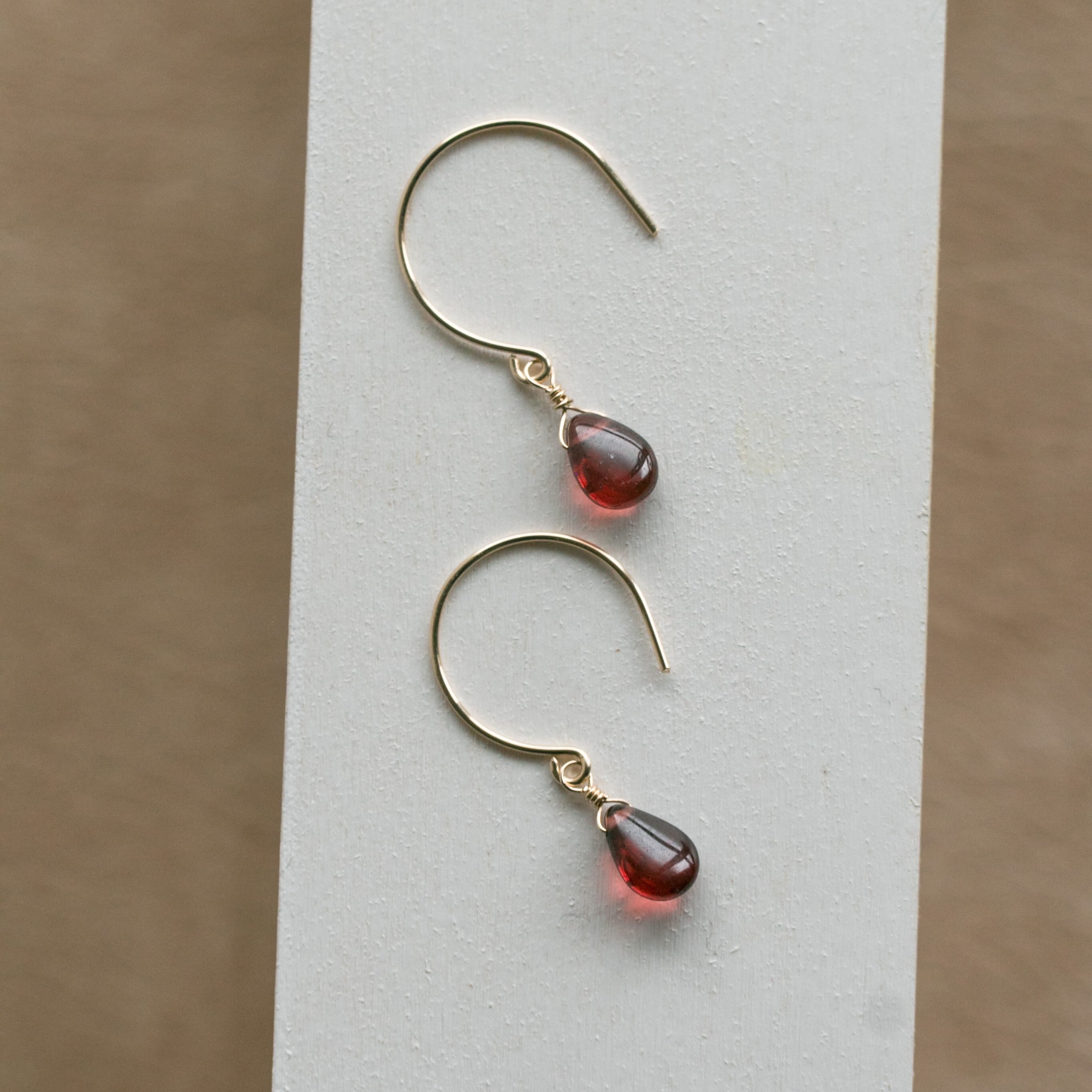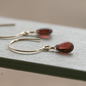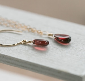 レア☆ロードライトガーネットスムースペアシェイプAAA★ラウンドフックピアス☆14kgf☆フックピアス・イヤリング変更無料!