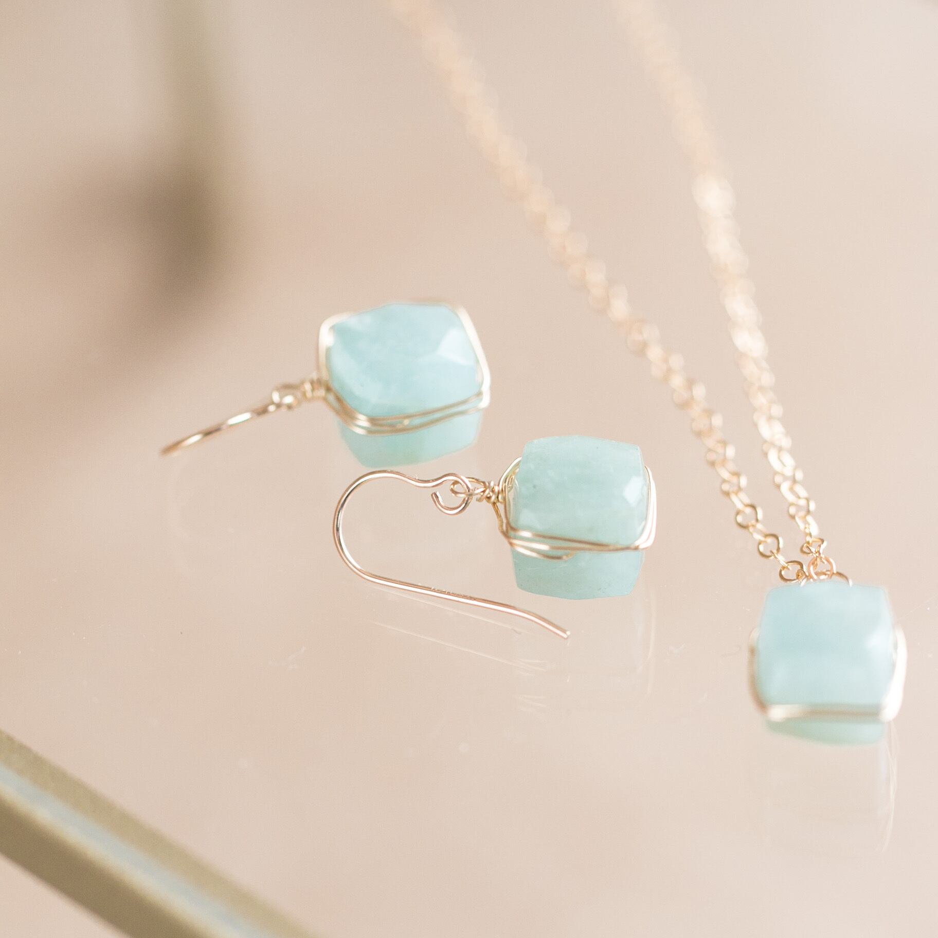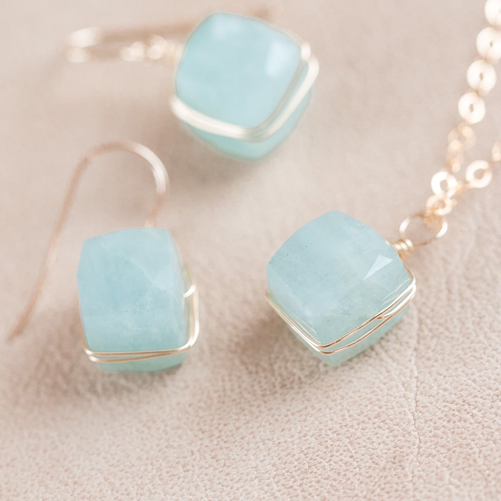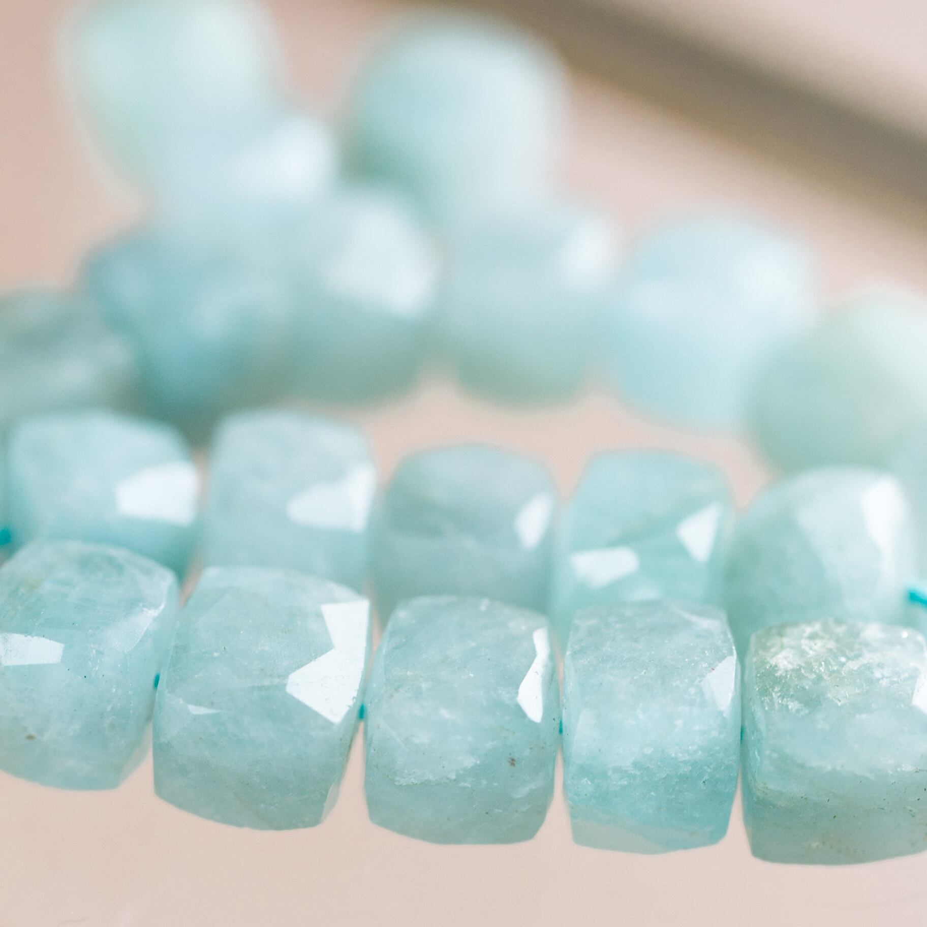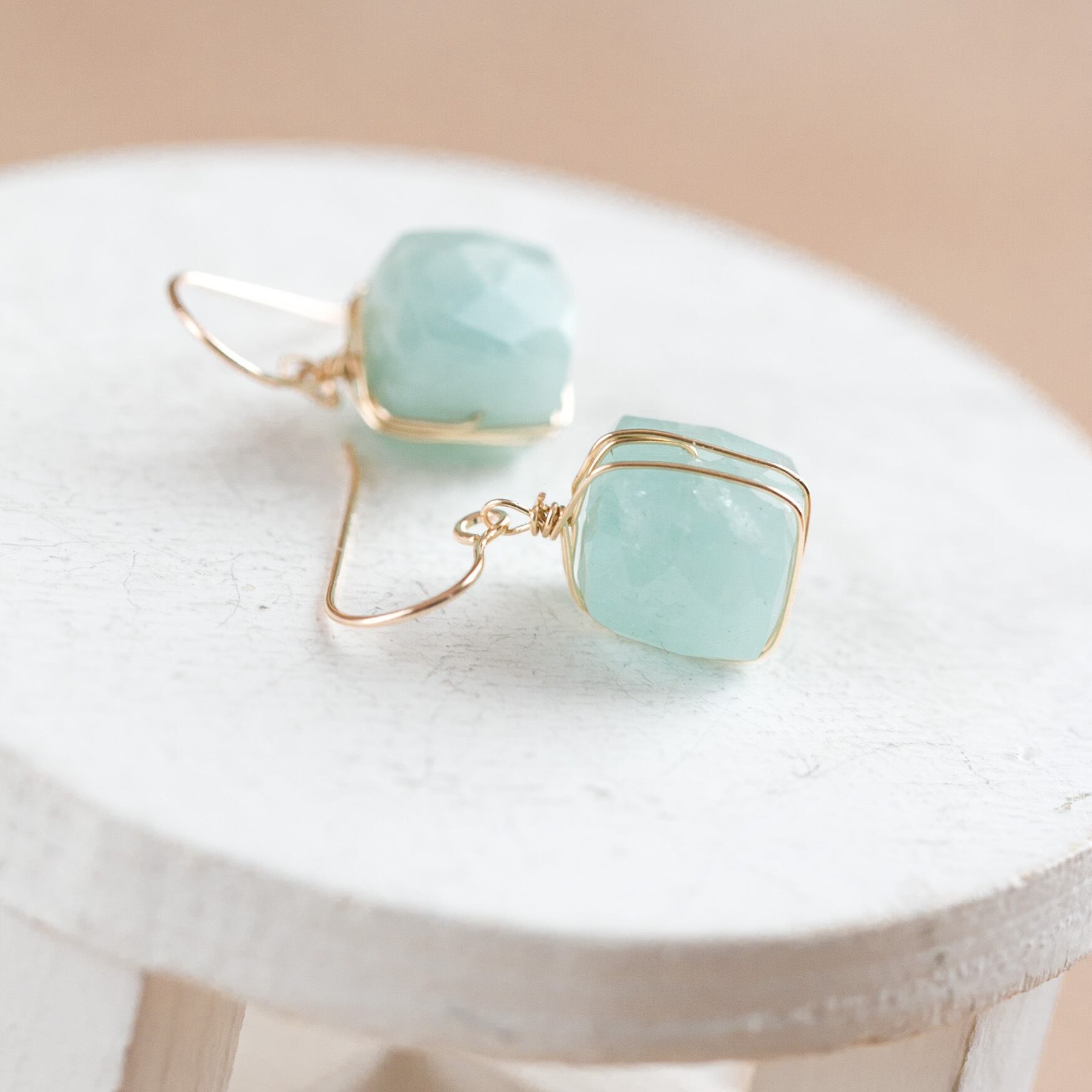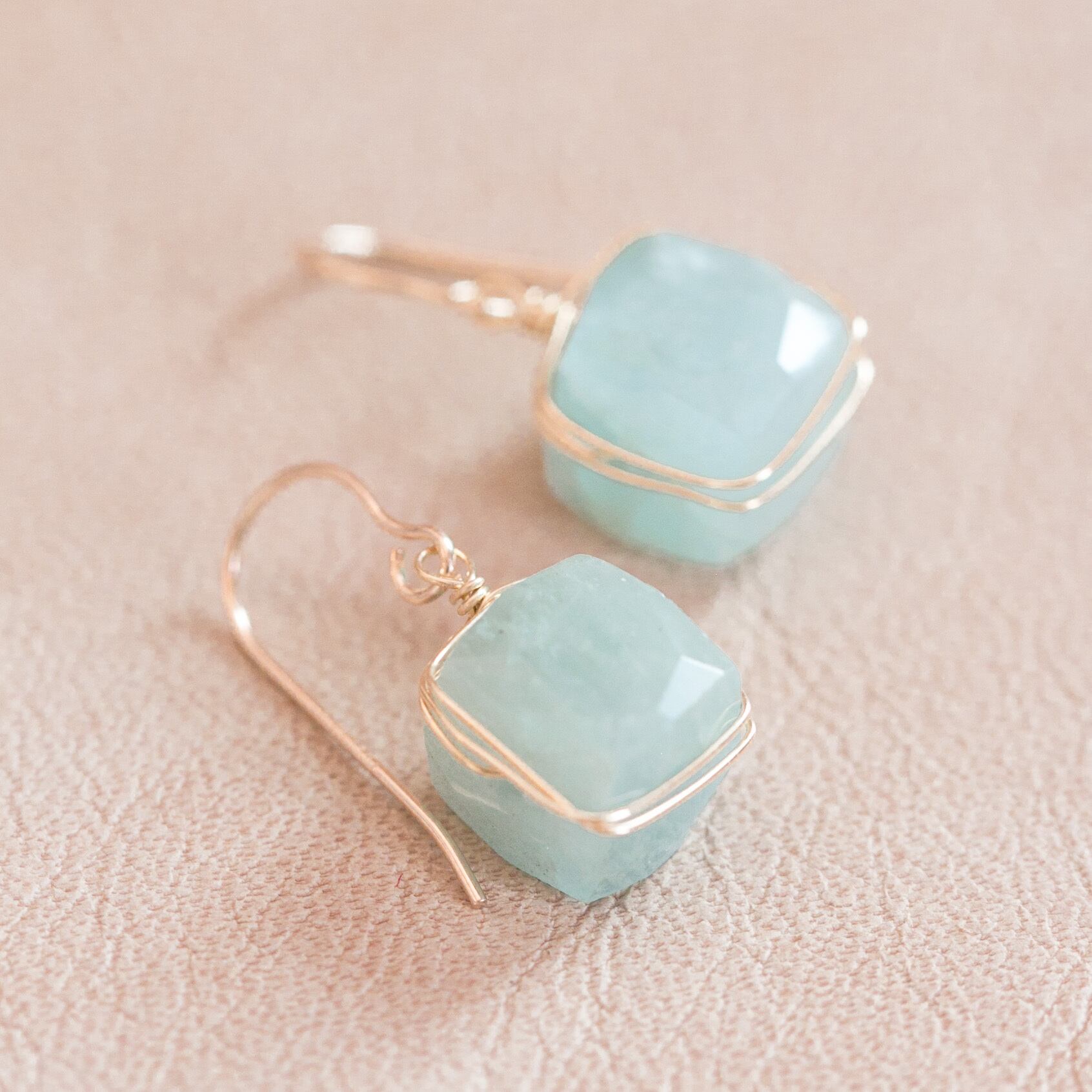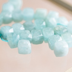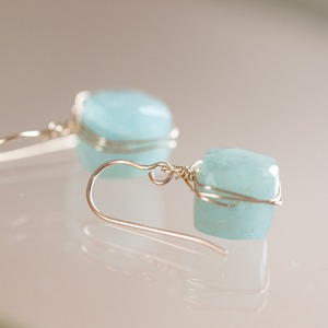 ☆宝石質☆アクアマリンキューブ Aquamarine Faceted AAA☆14kgf☆フックピアス・イヤリング