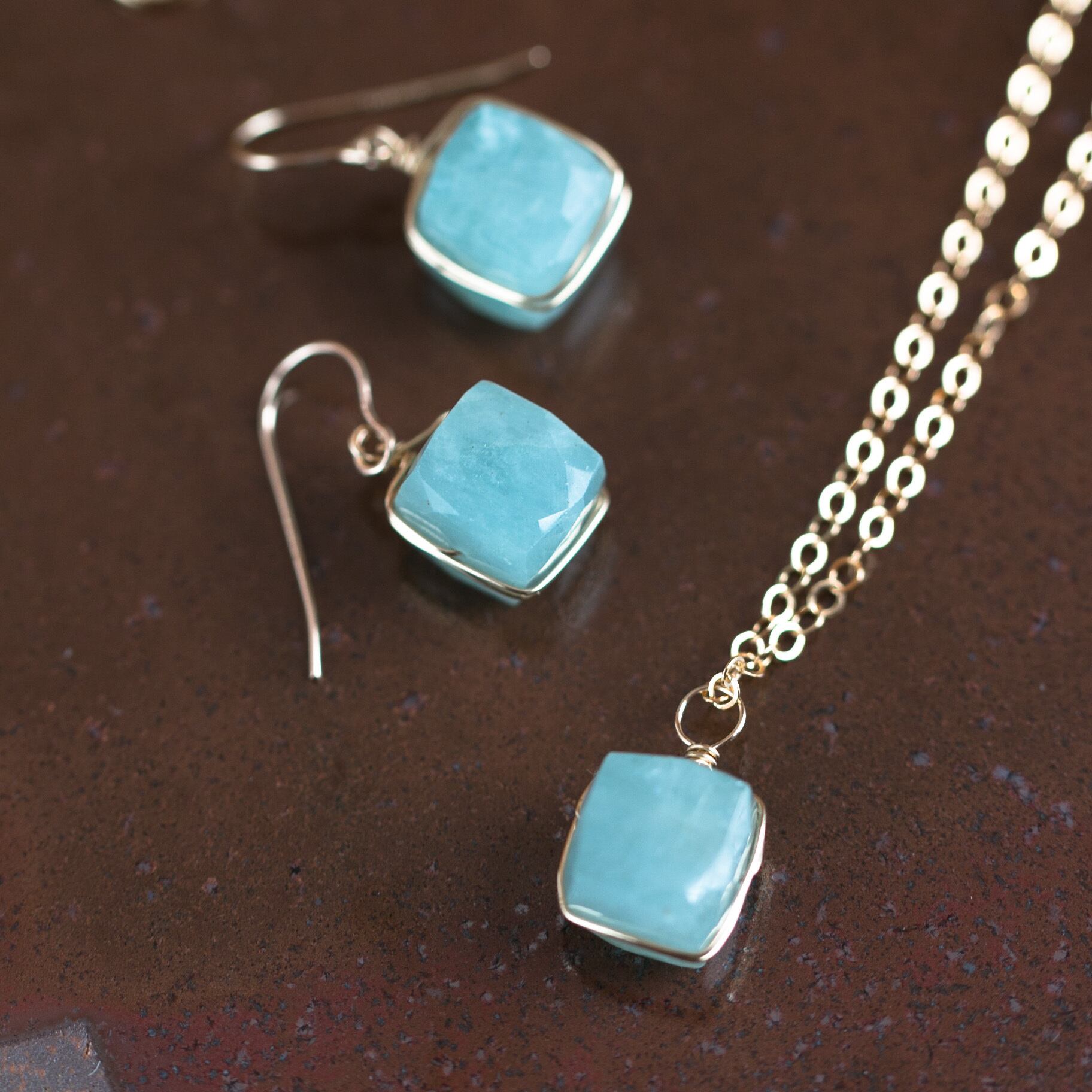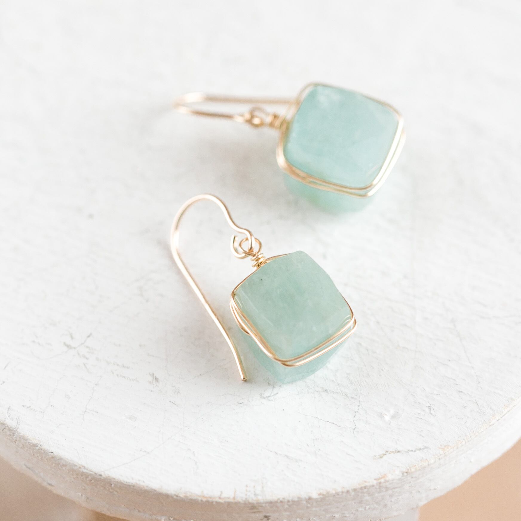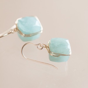 ☆アクアマリンキューブ Aquamarine Faceted AAA☆14kgf☆フックピアス・イヤリング