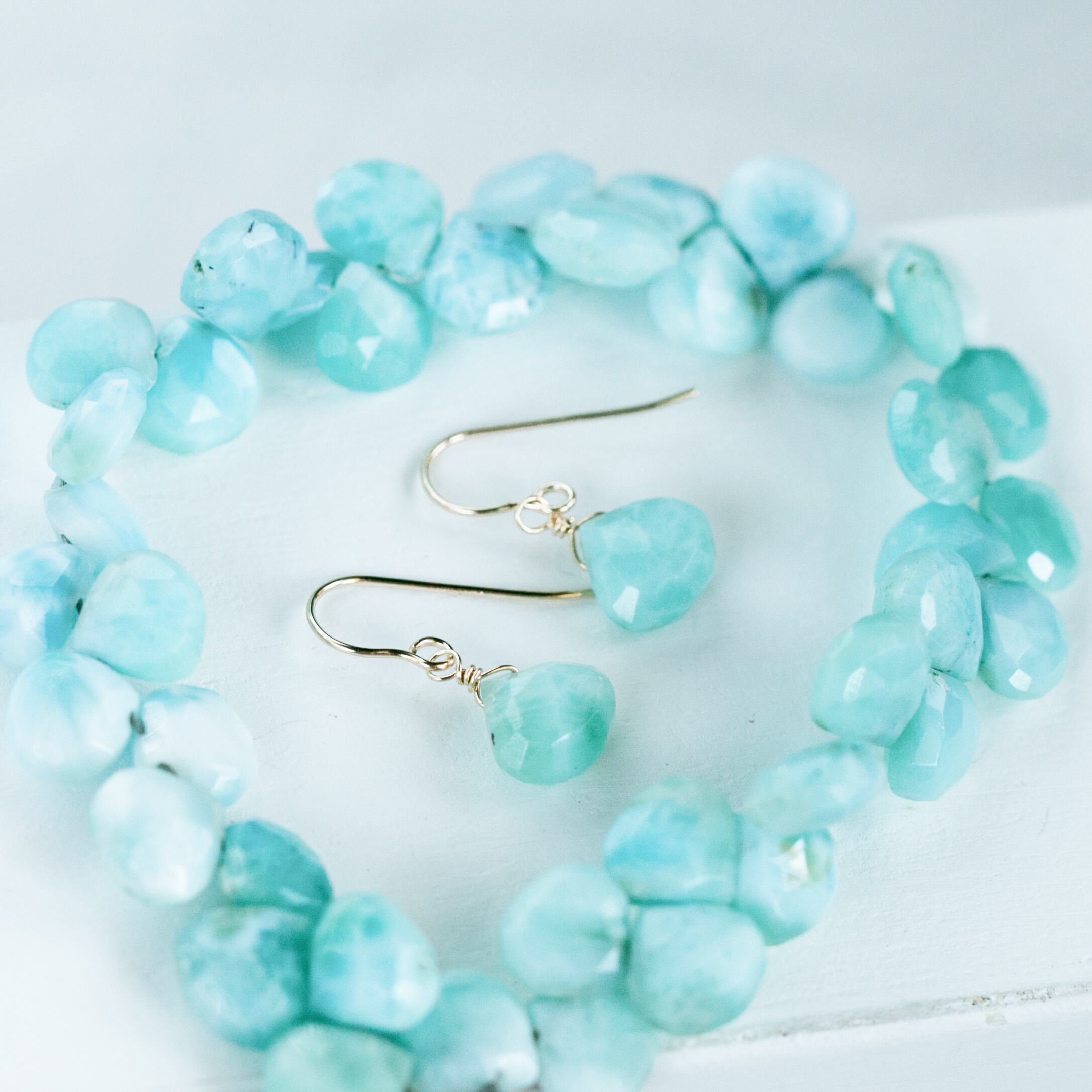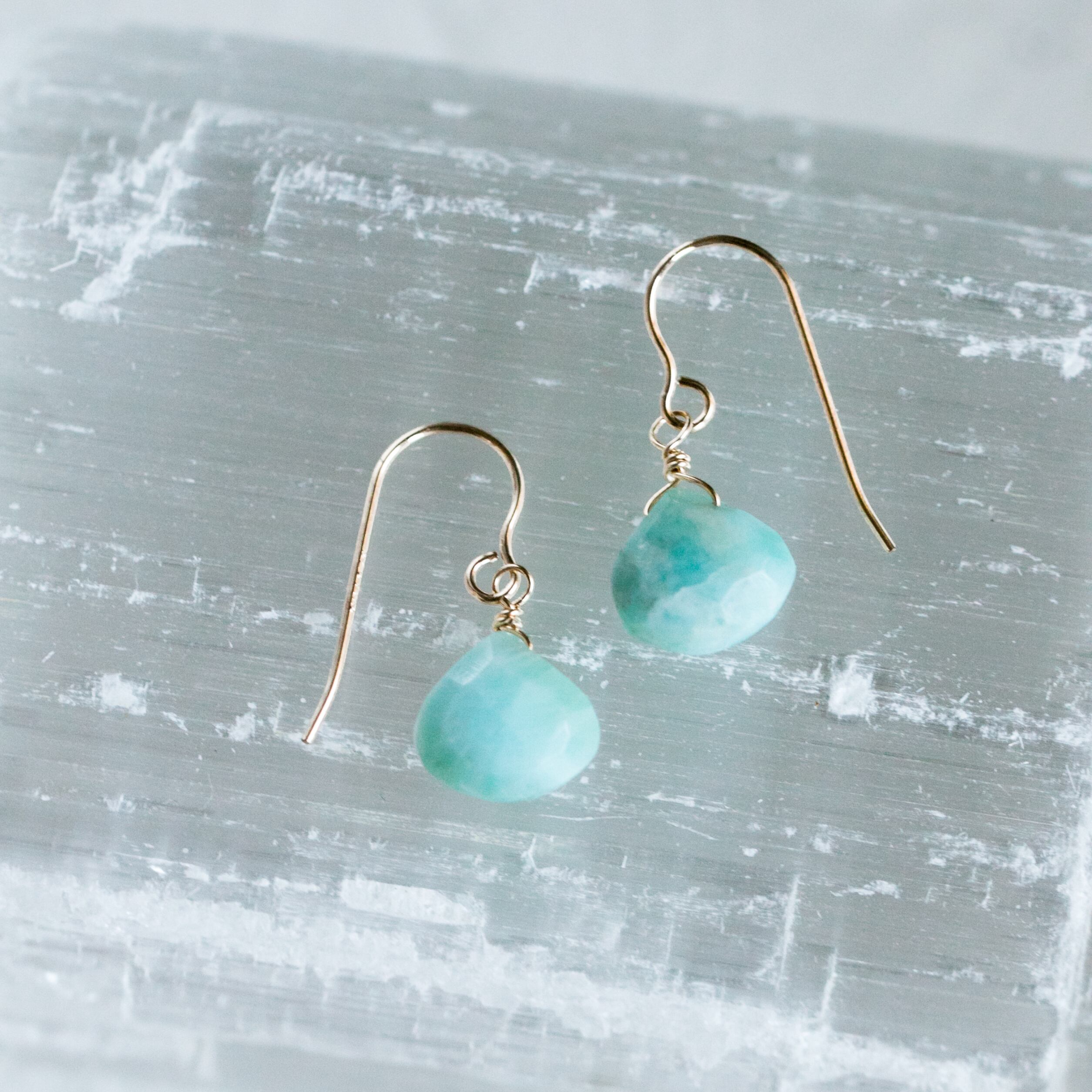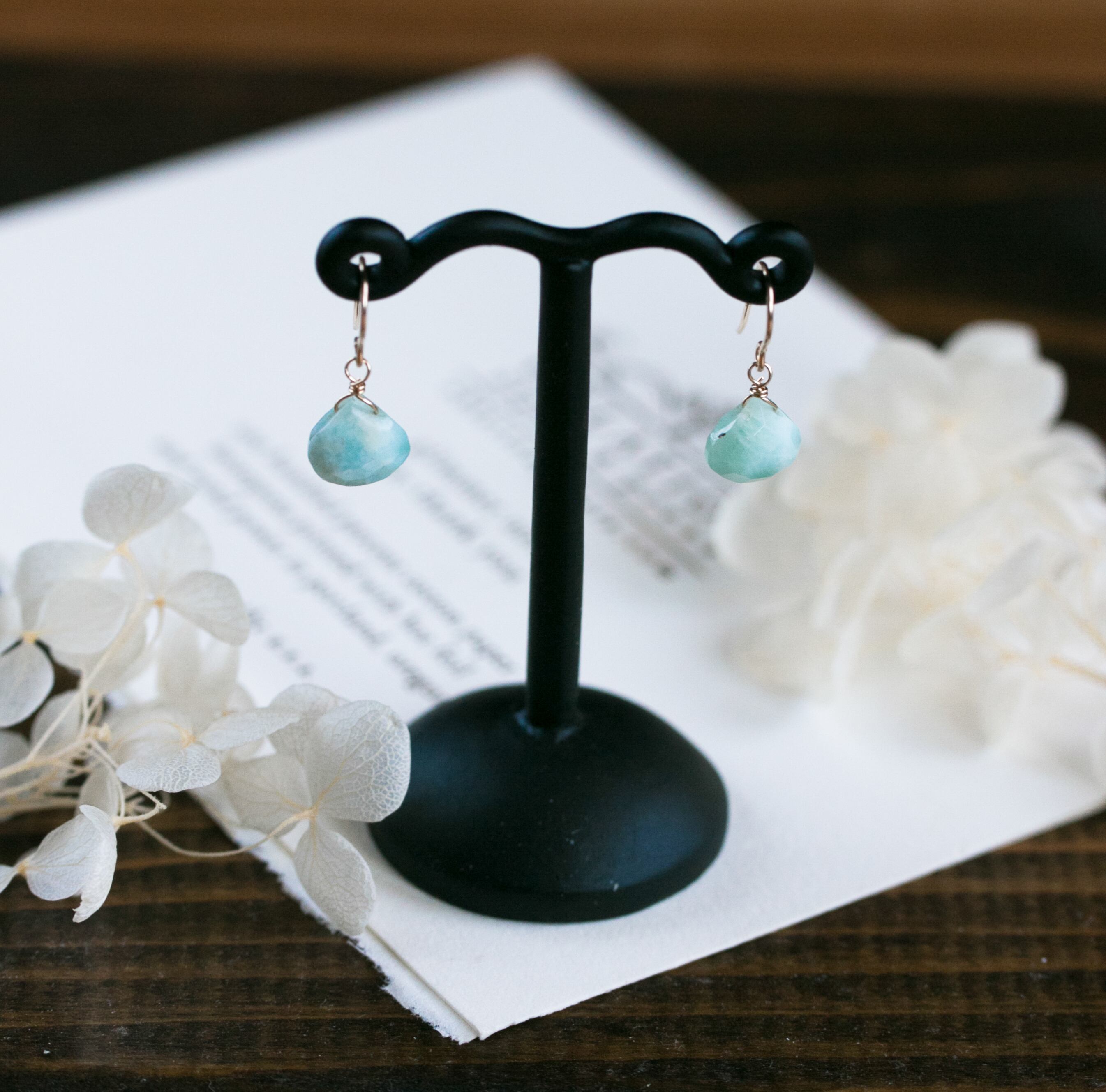☆希少高品質ドミニク共和国ラリマーファセットハート Larimar AAA☆14kgf☆フックピアス・イヤリング