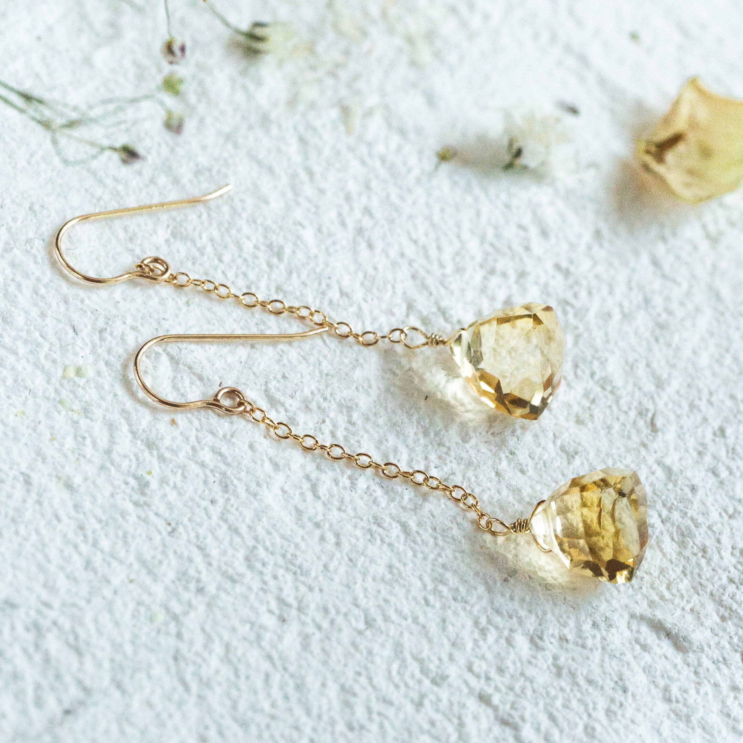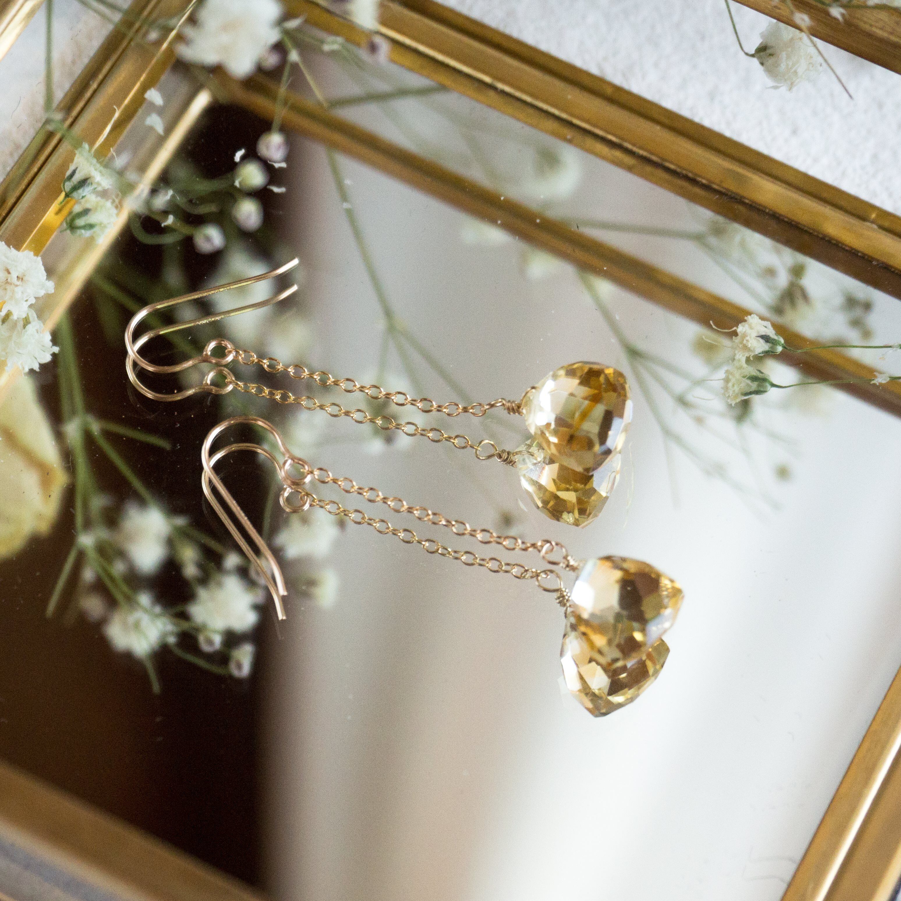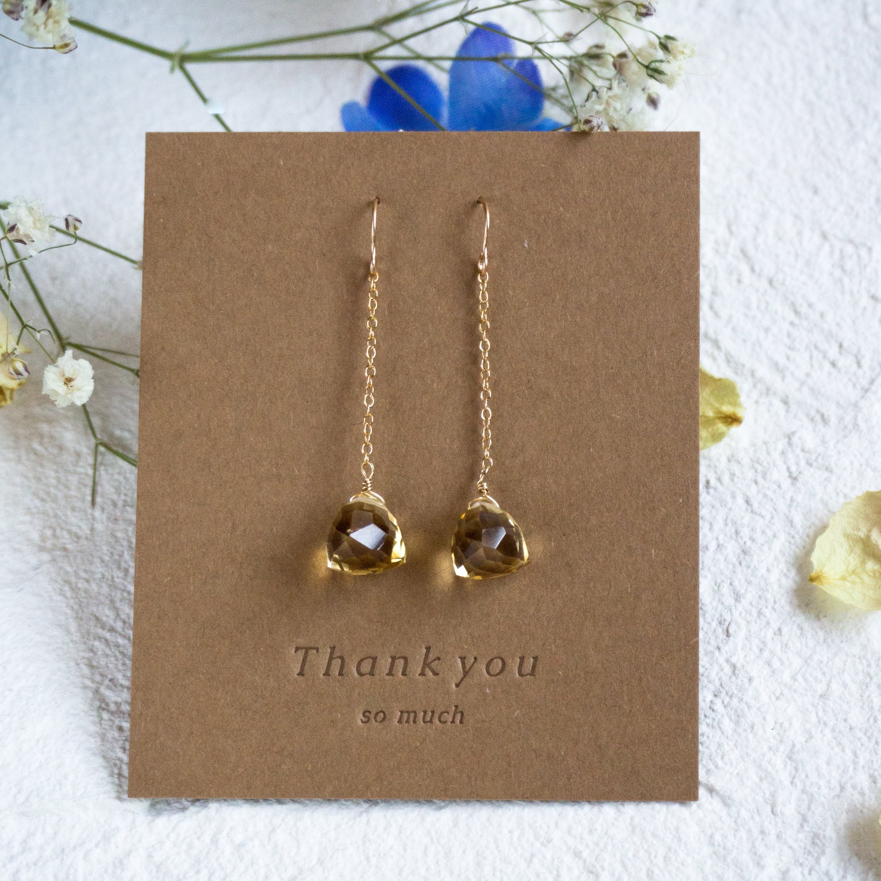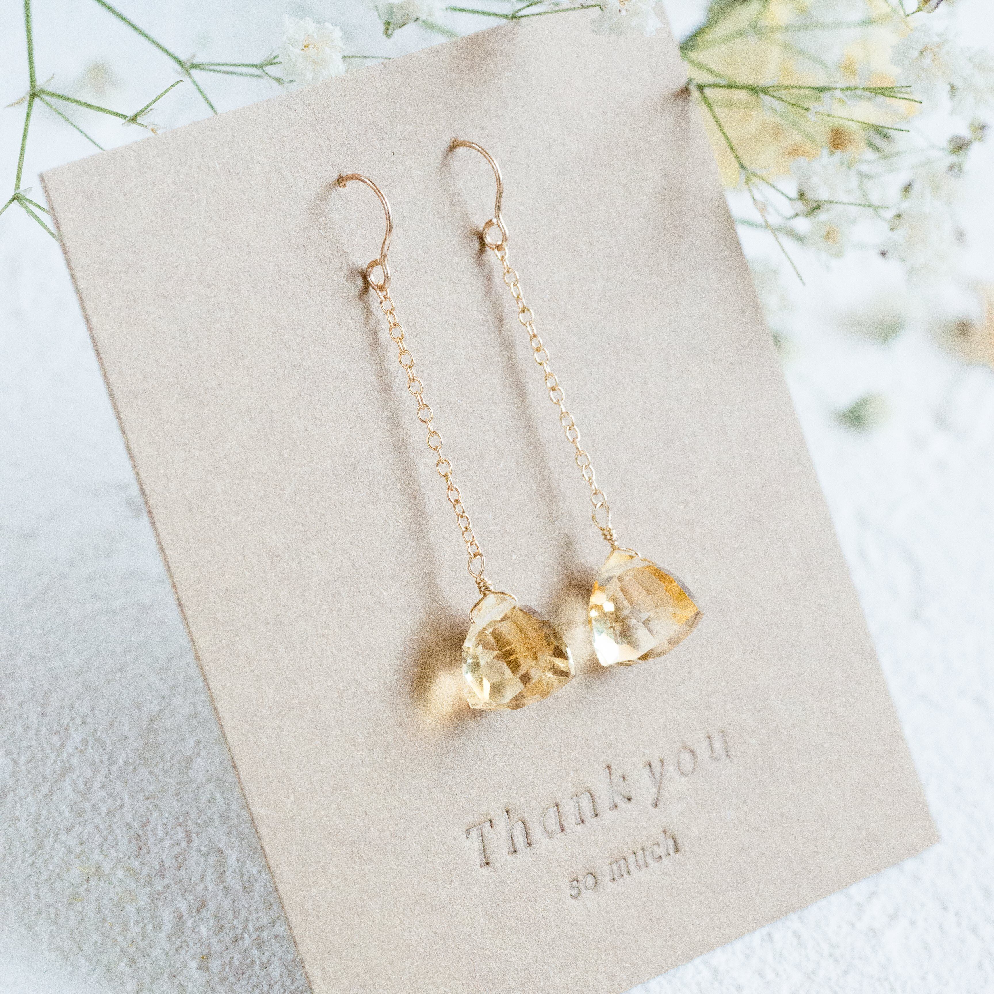 ☆14kgf★AAA宝石質ゴールデンシトリンのチェーンピアス・イヤリング☆大粒トリリオンカット