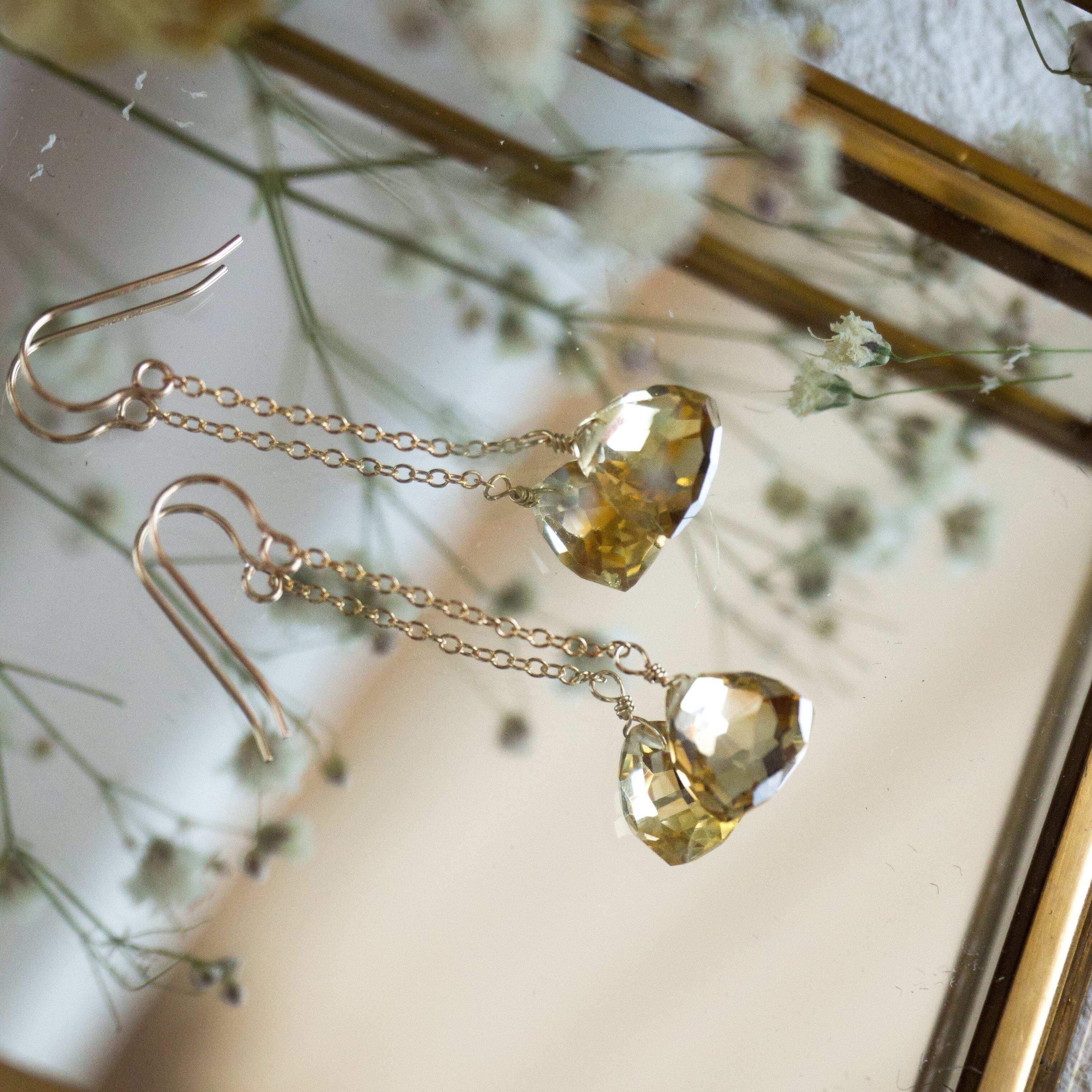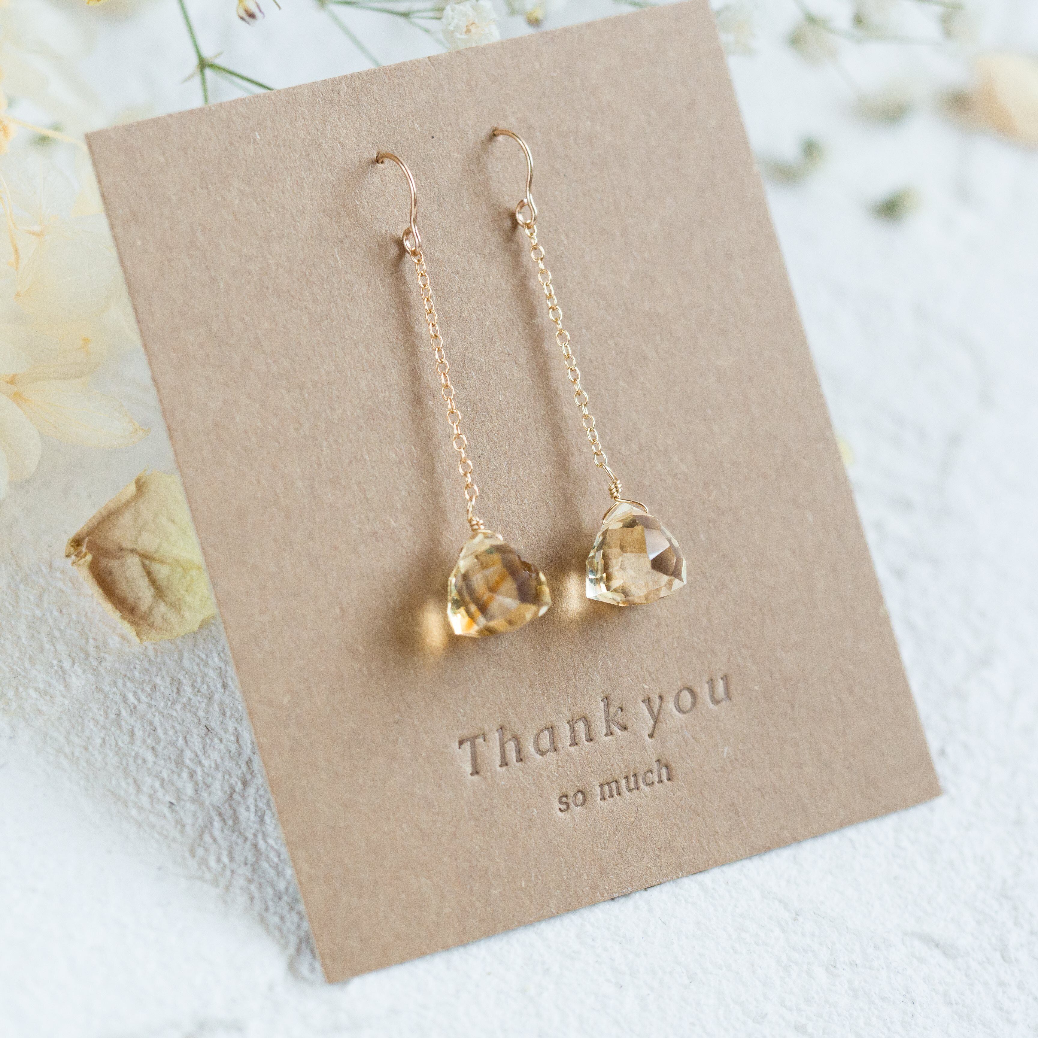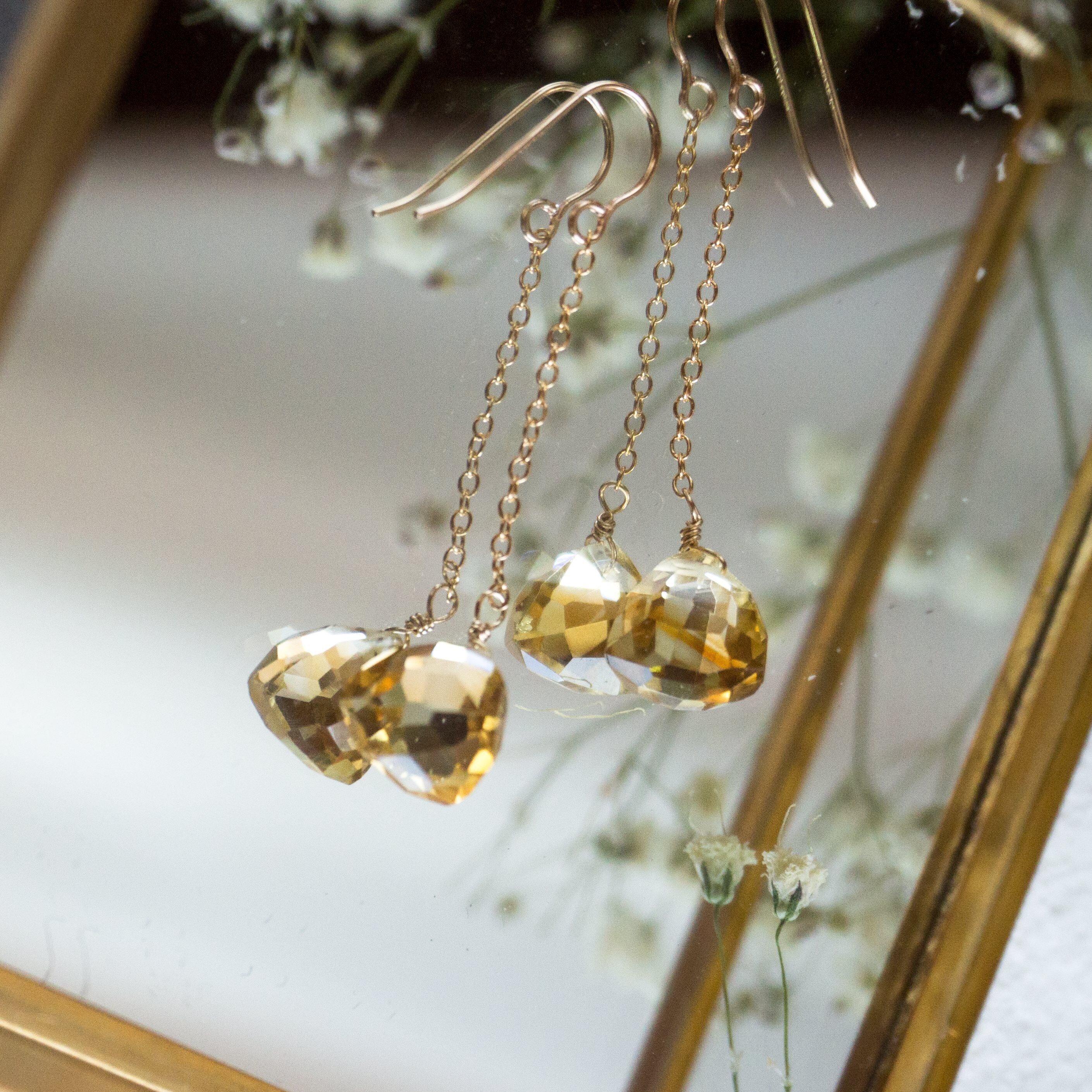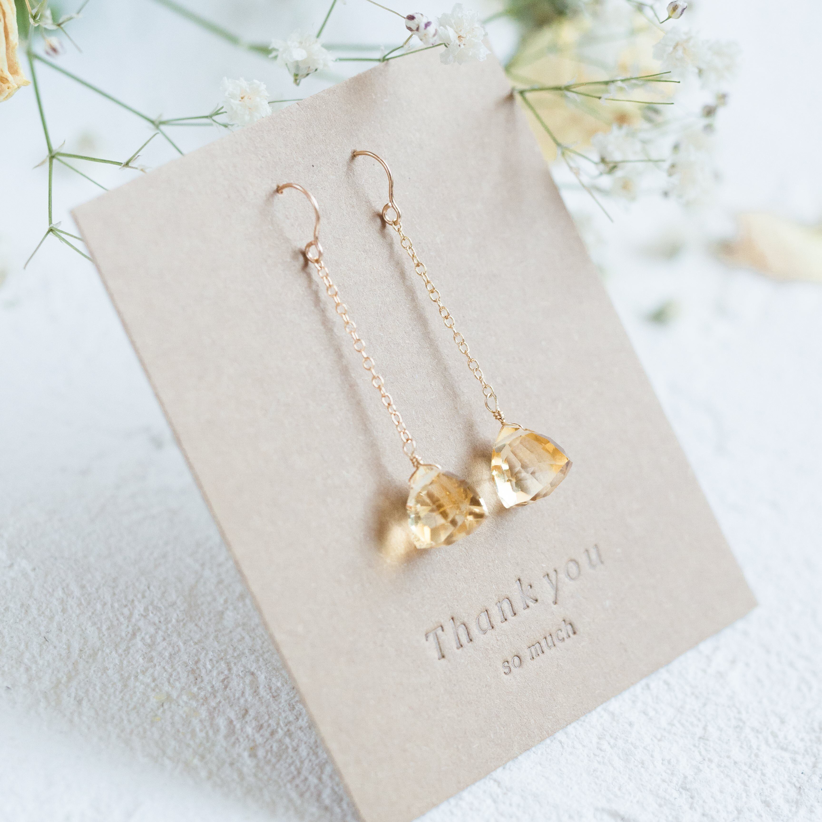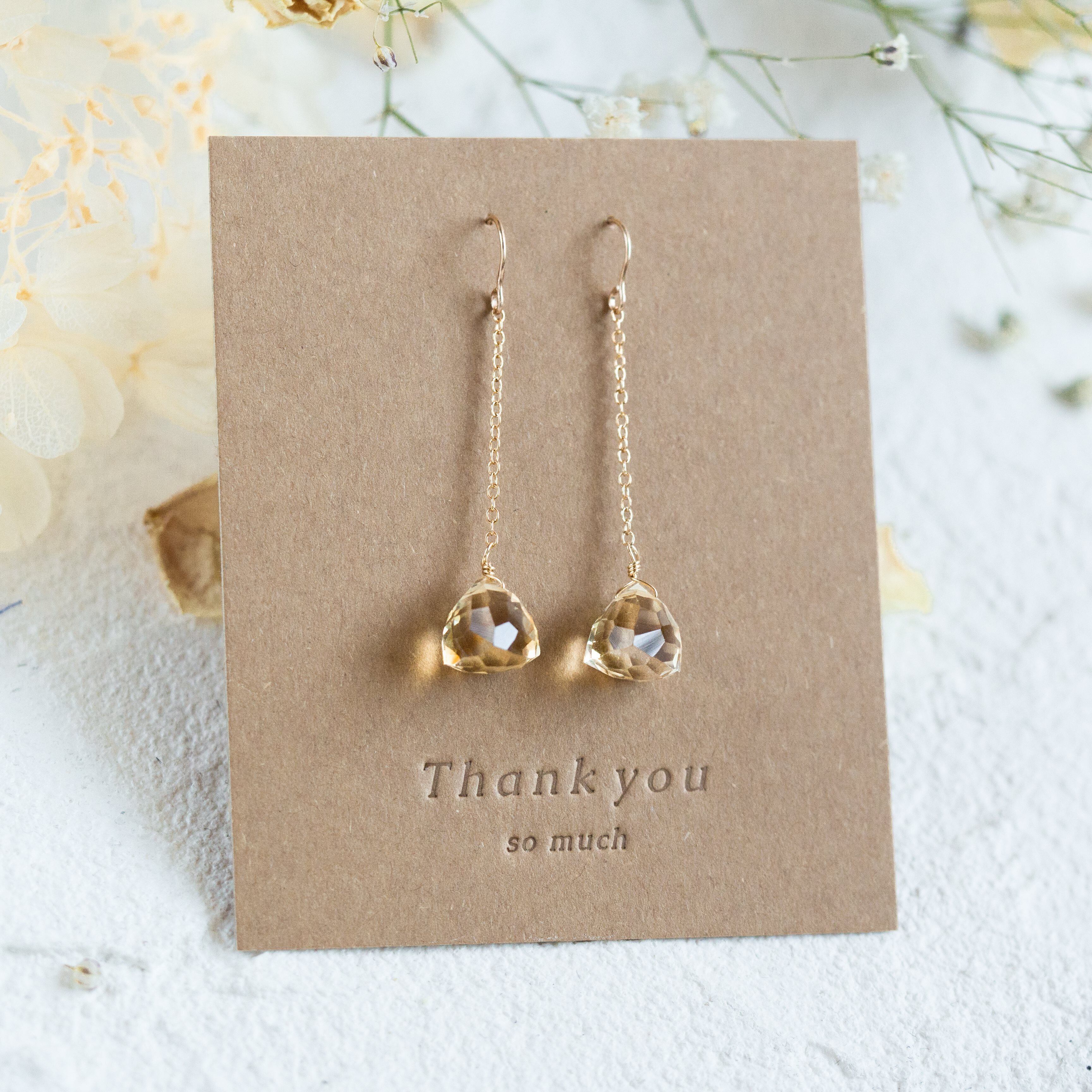 ☆14kgf★AAA宝石質ゴールデンシトリンのチェーンピアス・イヤリング☆大粒トリリオンカット