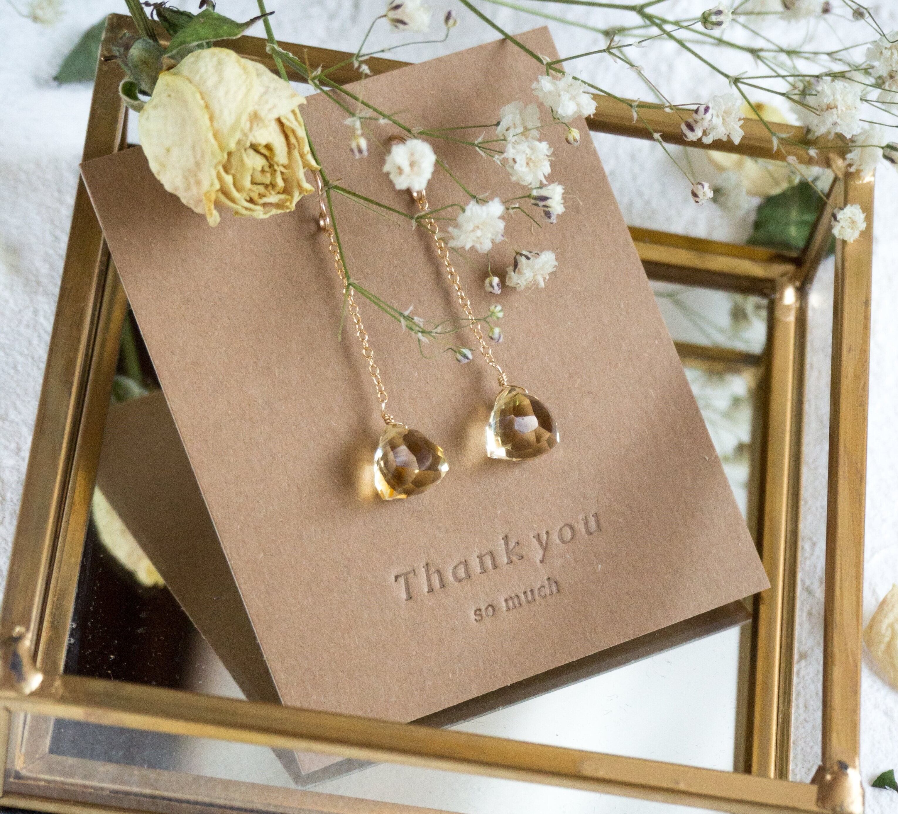 最高級の吸い込まれるような、透明感の高いゴールドの輝きが美しいシトリンです。立体型で光を当てると輝きが美しく、ぜひお手に取って極上の輝きをお楽しみくださいませ♡
