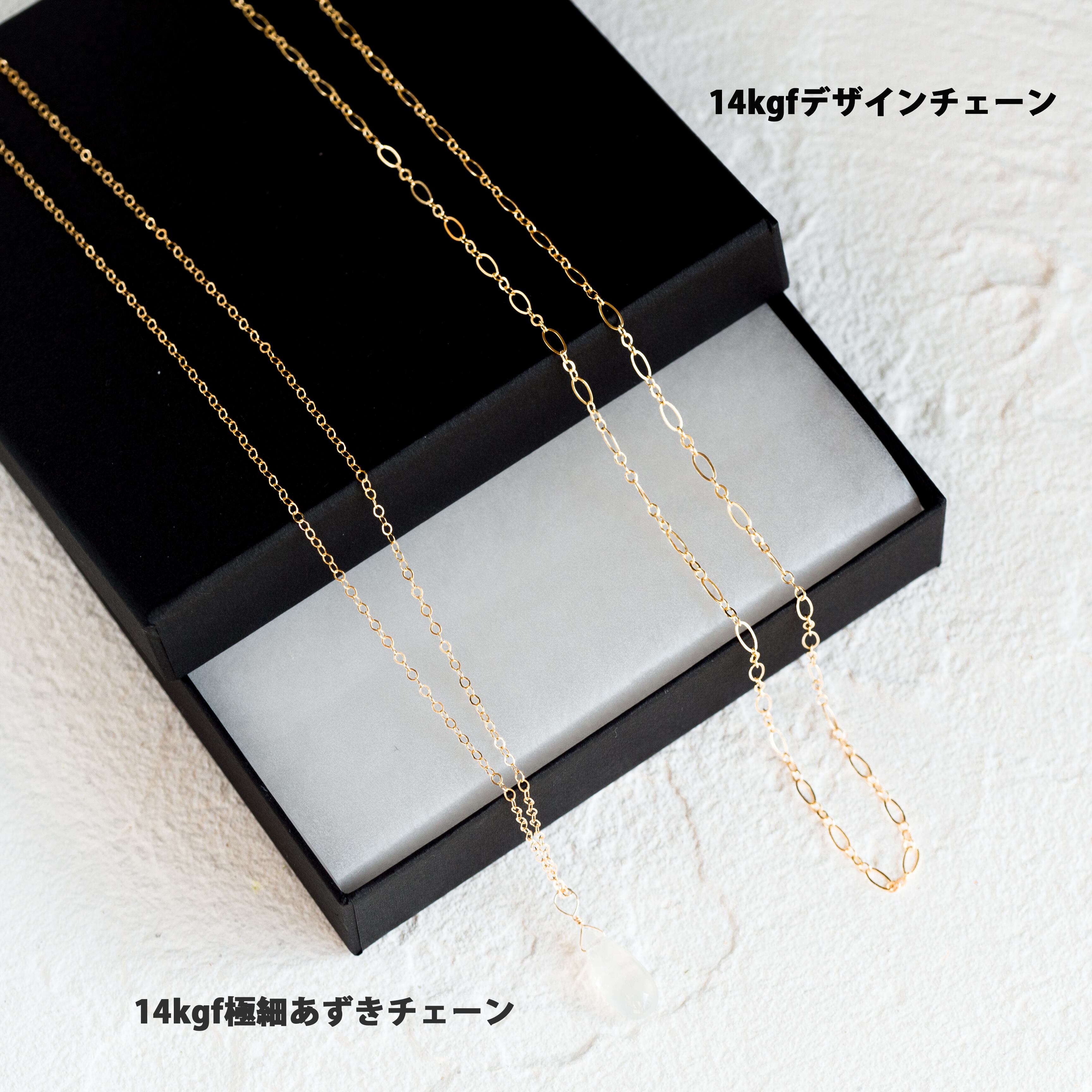 ※チェーンは、14kgfデザインチェーン(やや太め)と極細あずきチェーンからお選びいただけます。