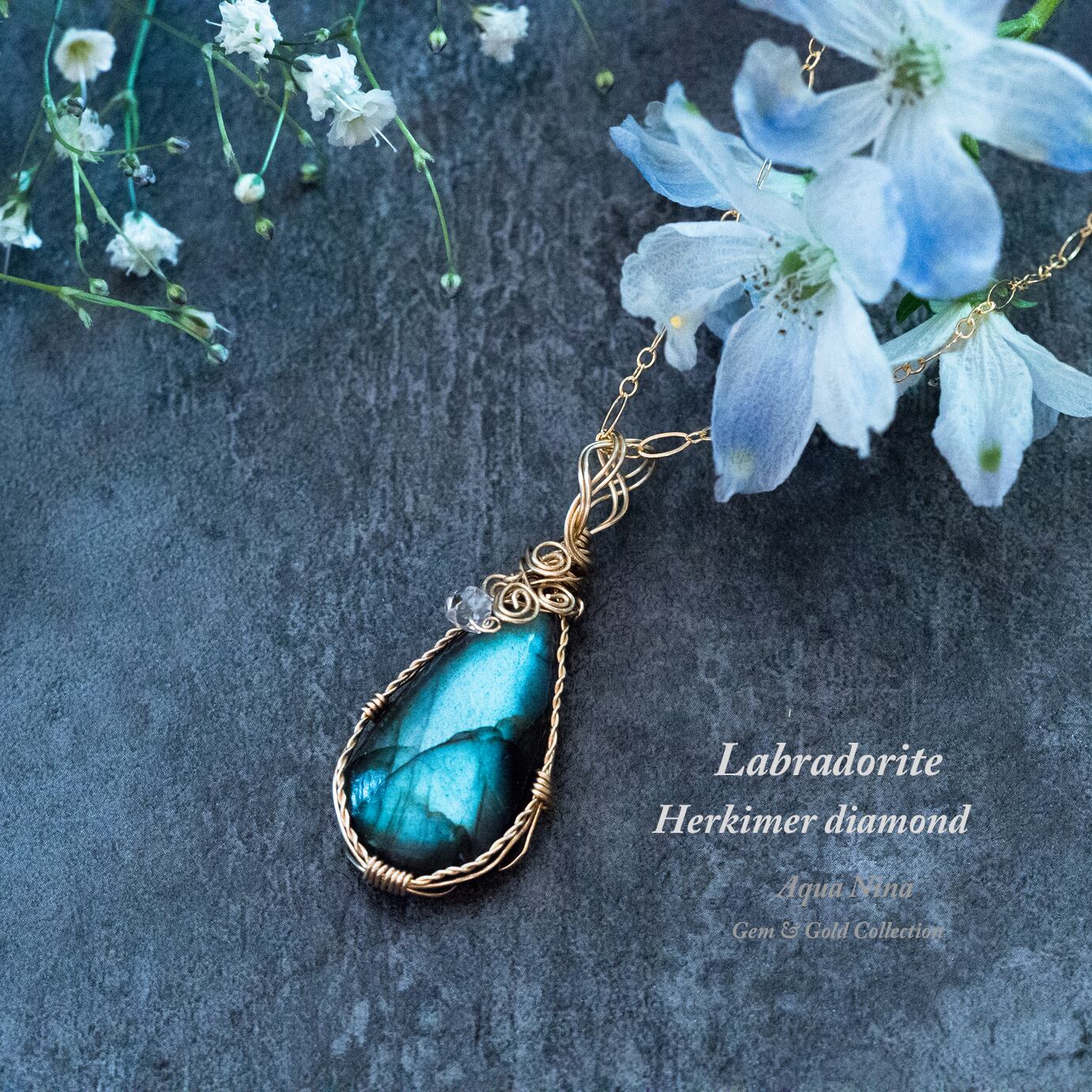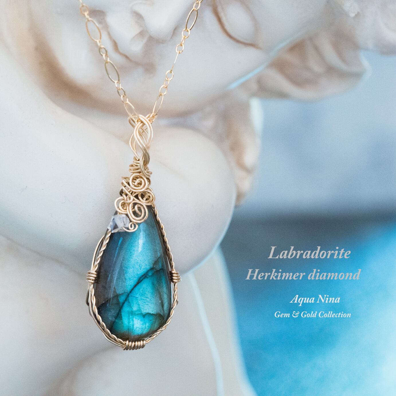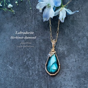 ♡獅子座満月特別制作♡【14kgf 宝石質ロイヤルブルーラブラドライト&ハーキマーダイヤモンド】Labradorite Herkimer《一点物・送料無料》