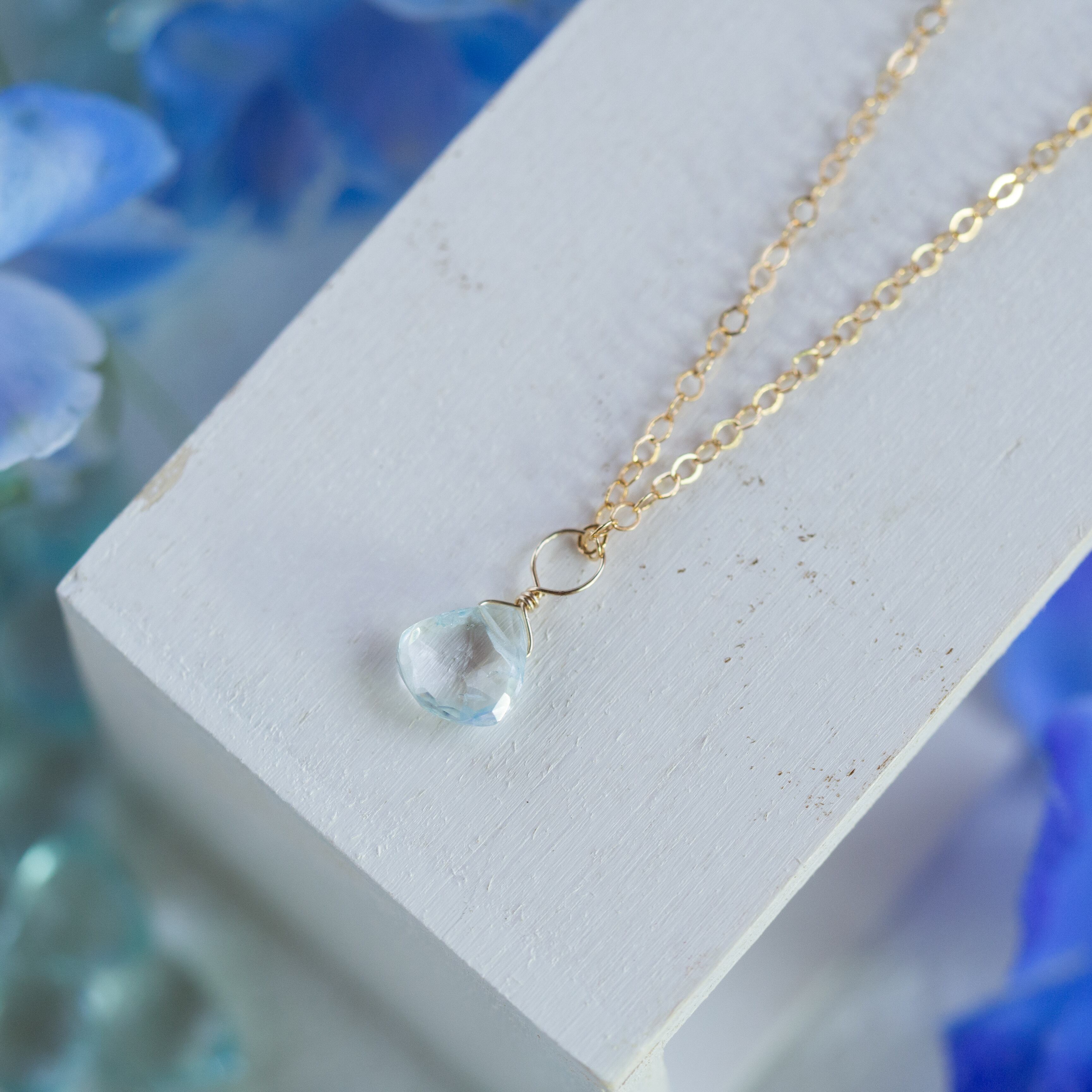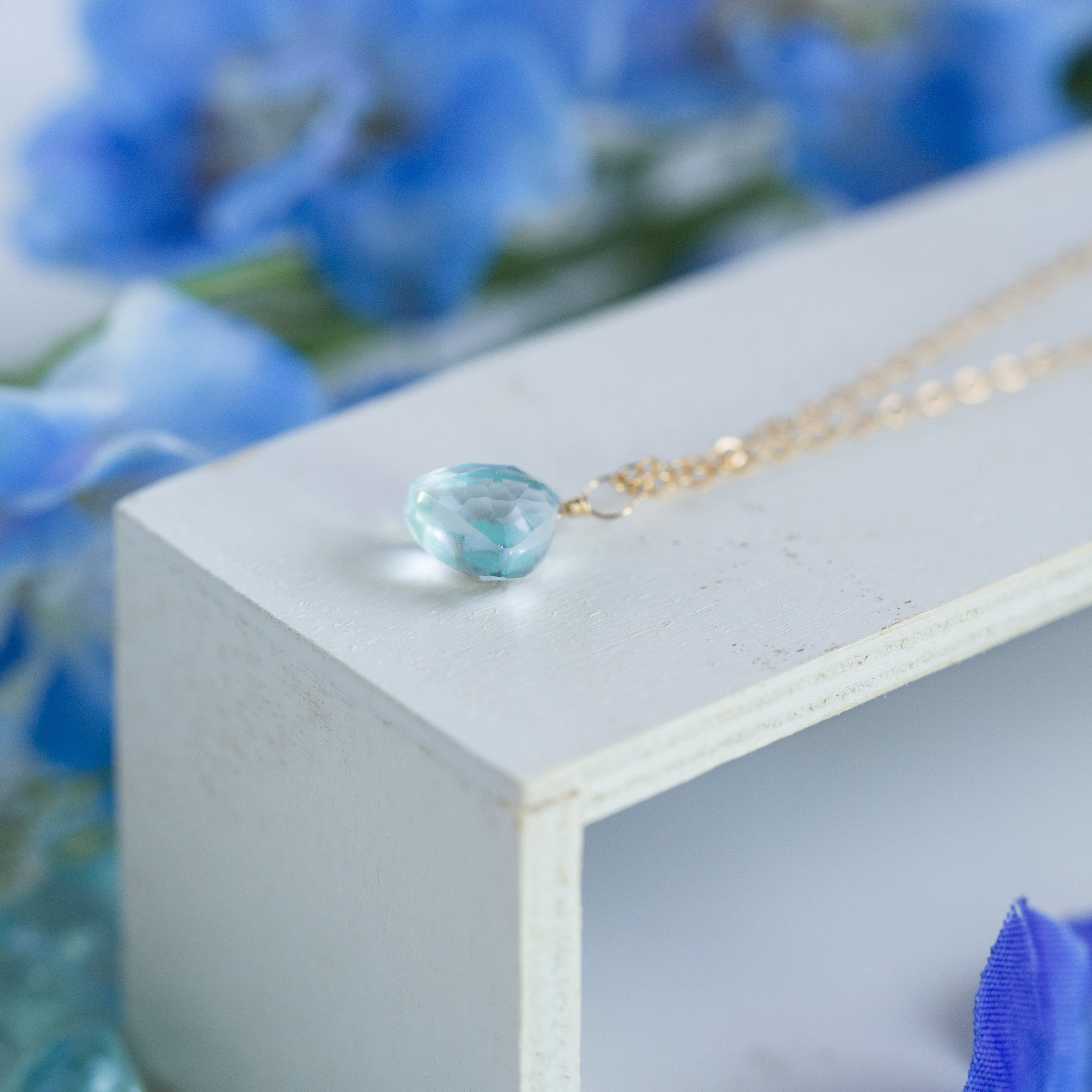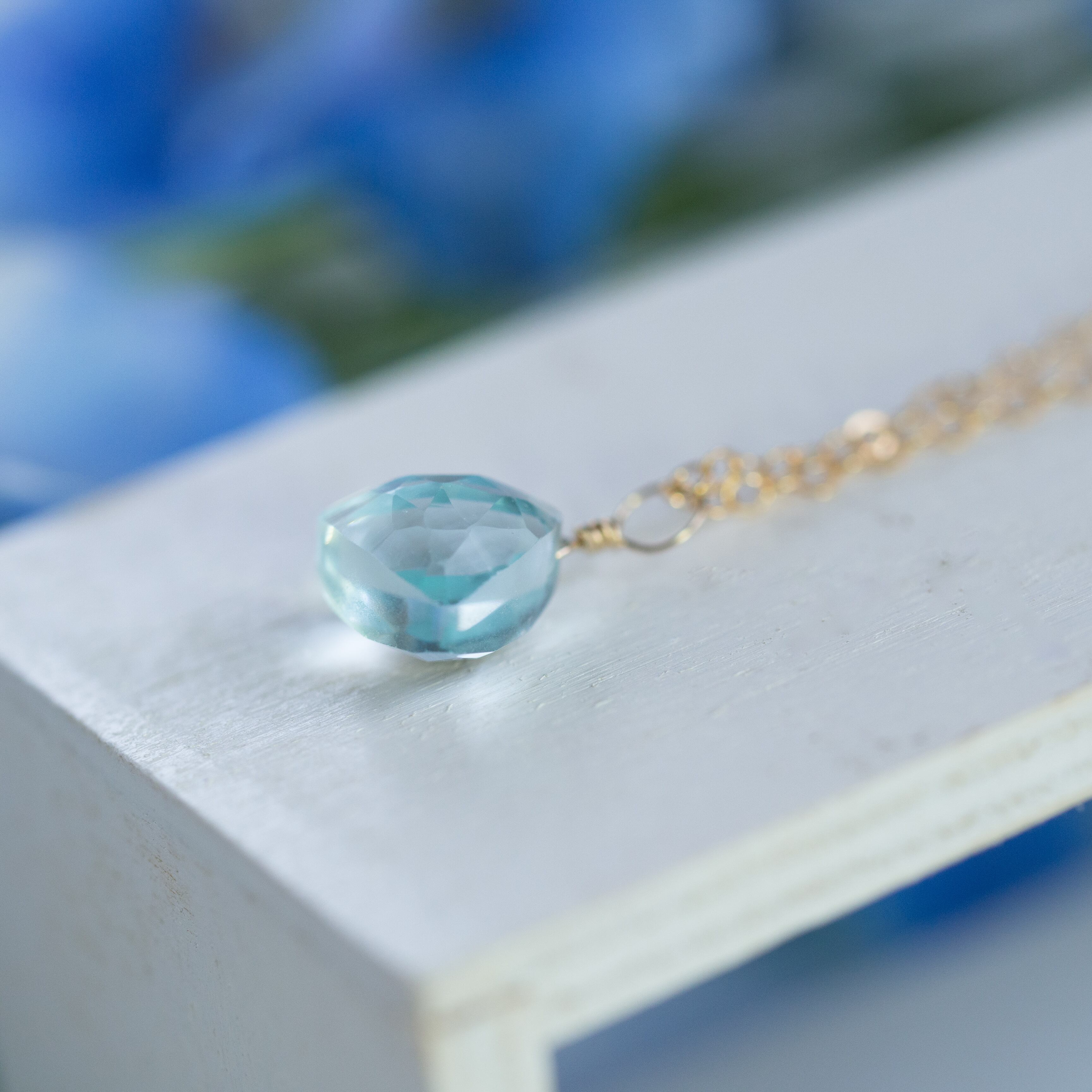 《3月誕生石》小さな恋の物語♡アクアマリンのハート型ファセットペンダント♡《14kgf》