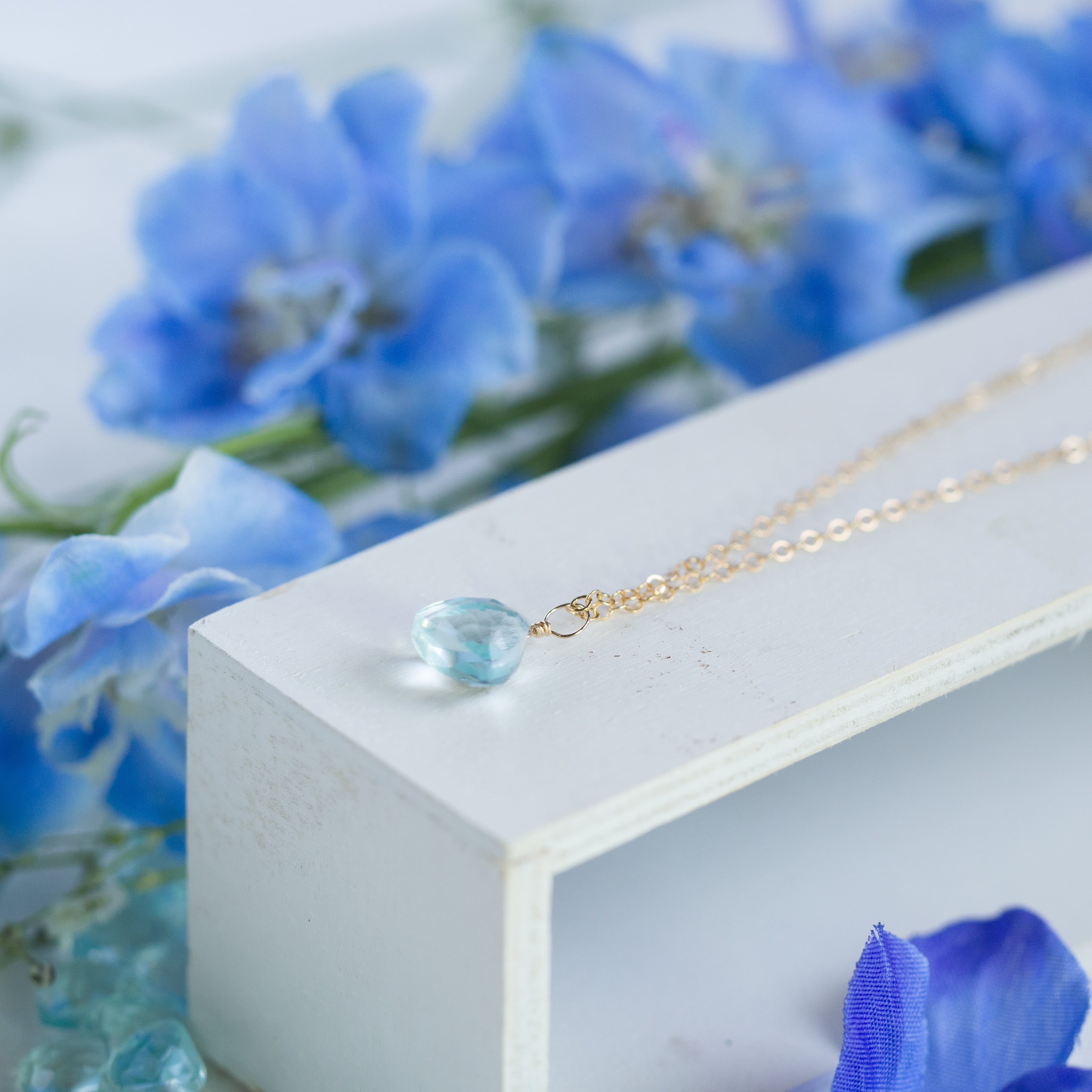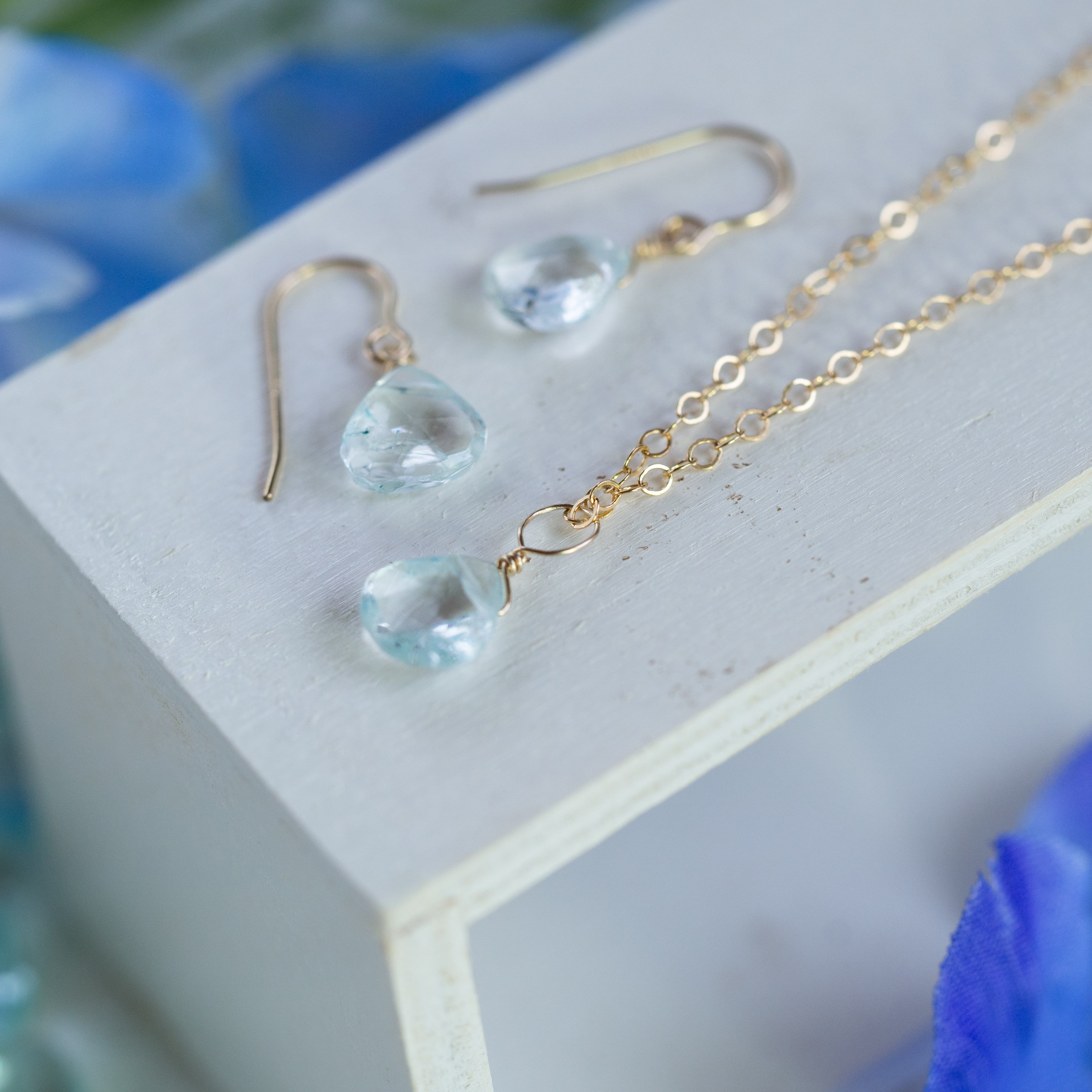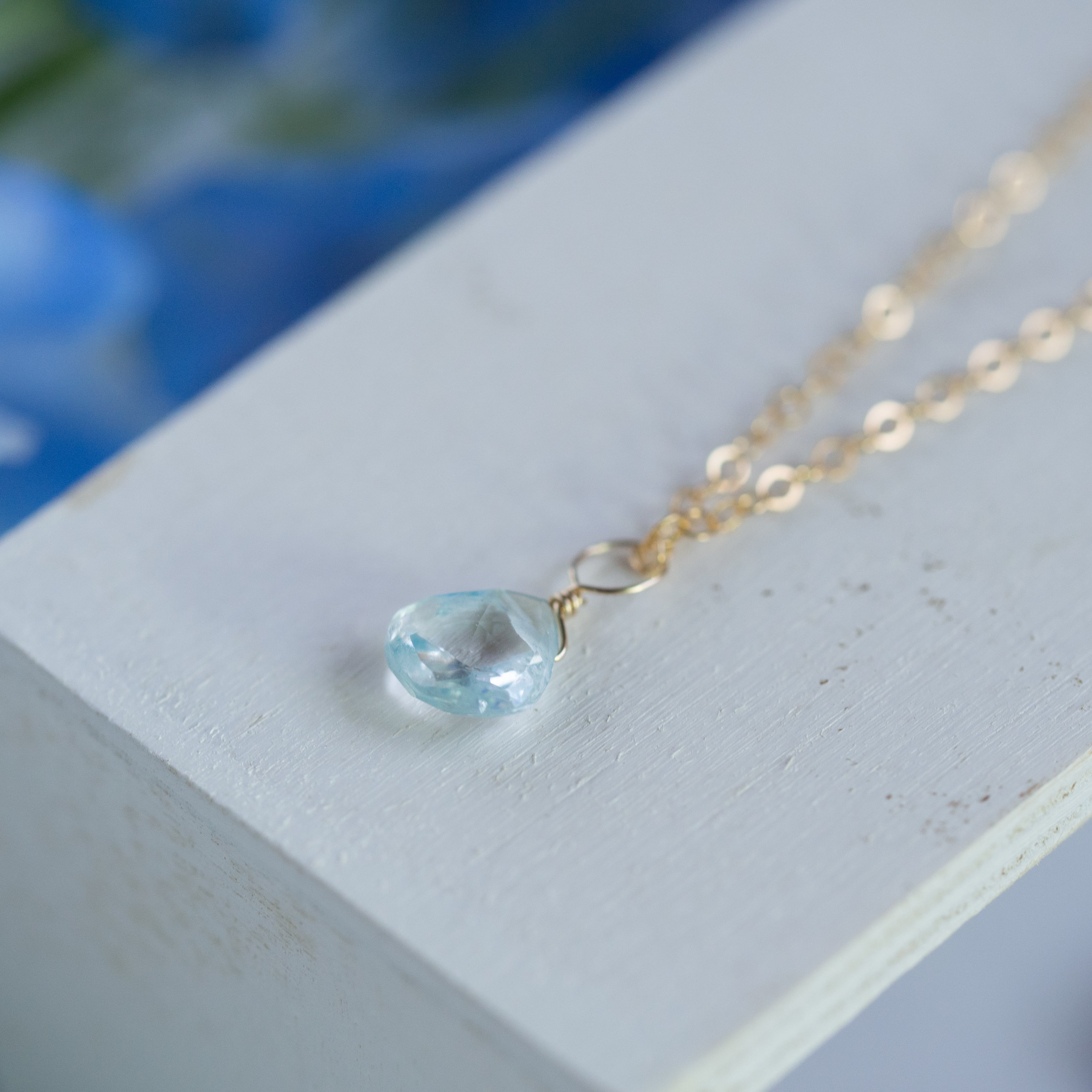 《3月誕生石》小さな恋の物語♡アクアマリンのハート型ファセットペンダント♡《14kgf》