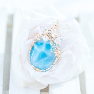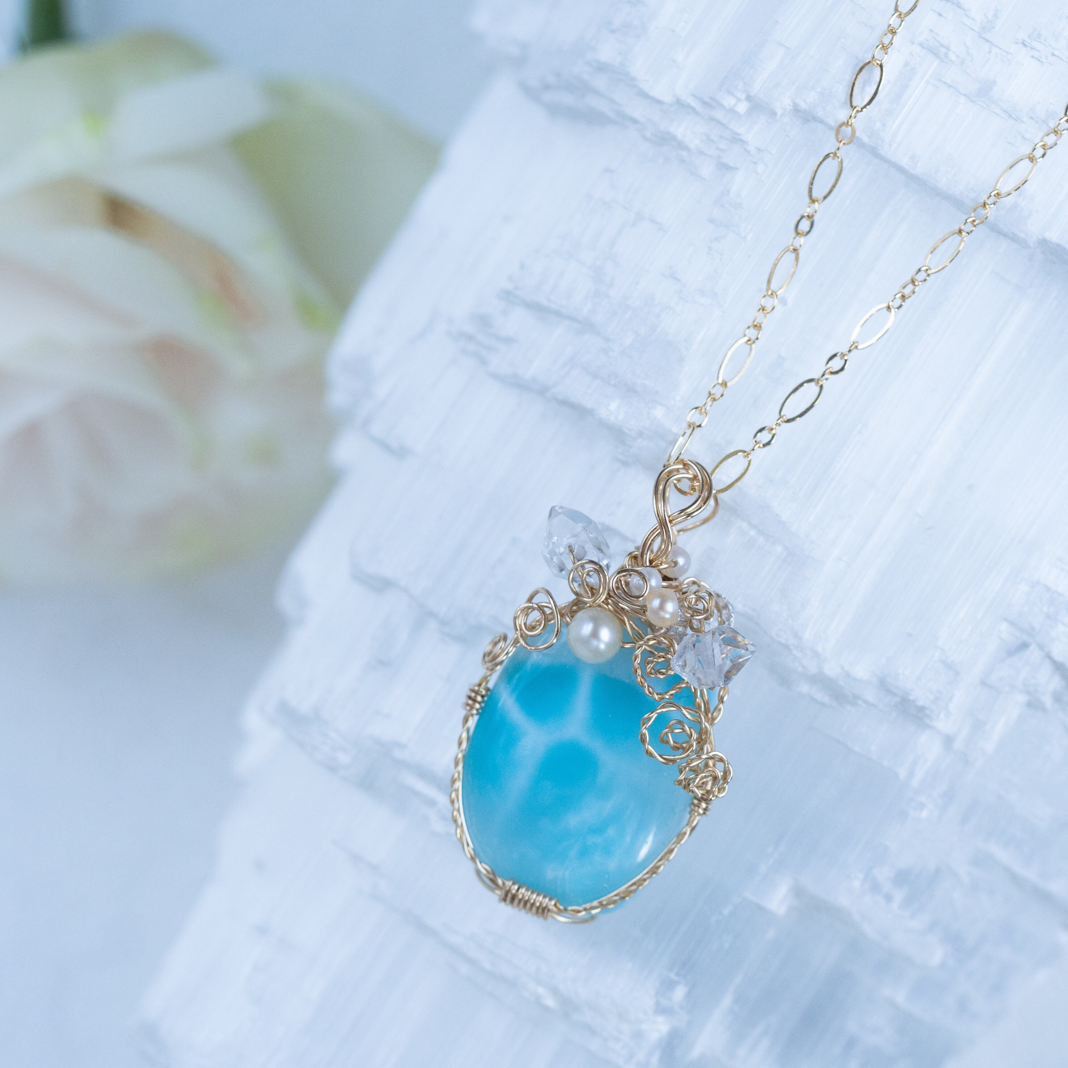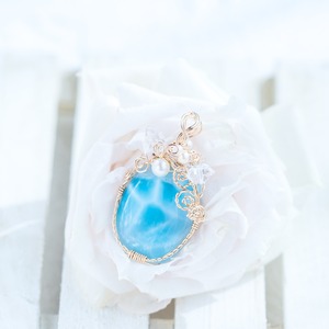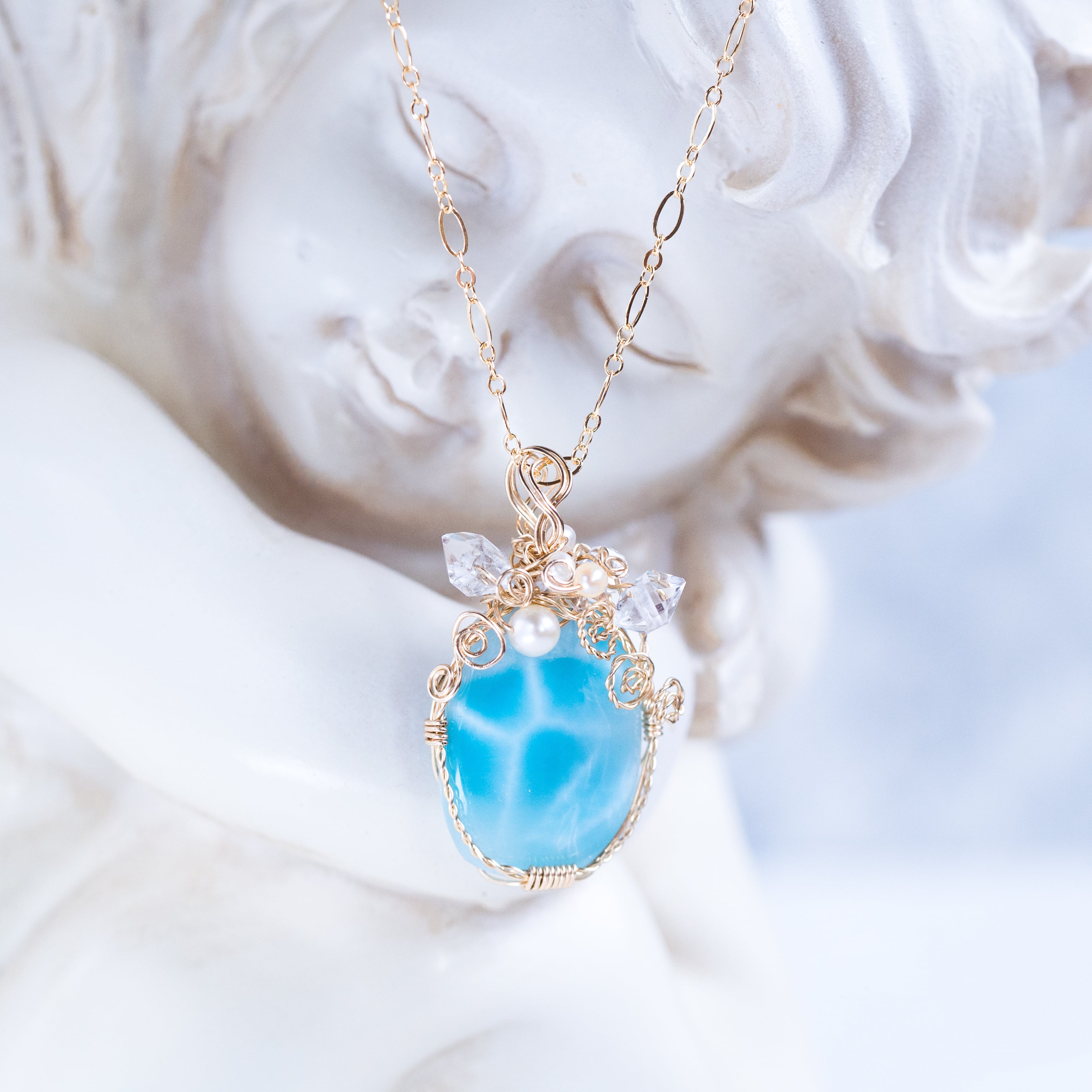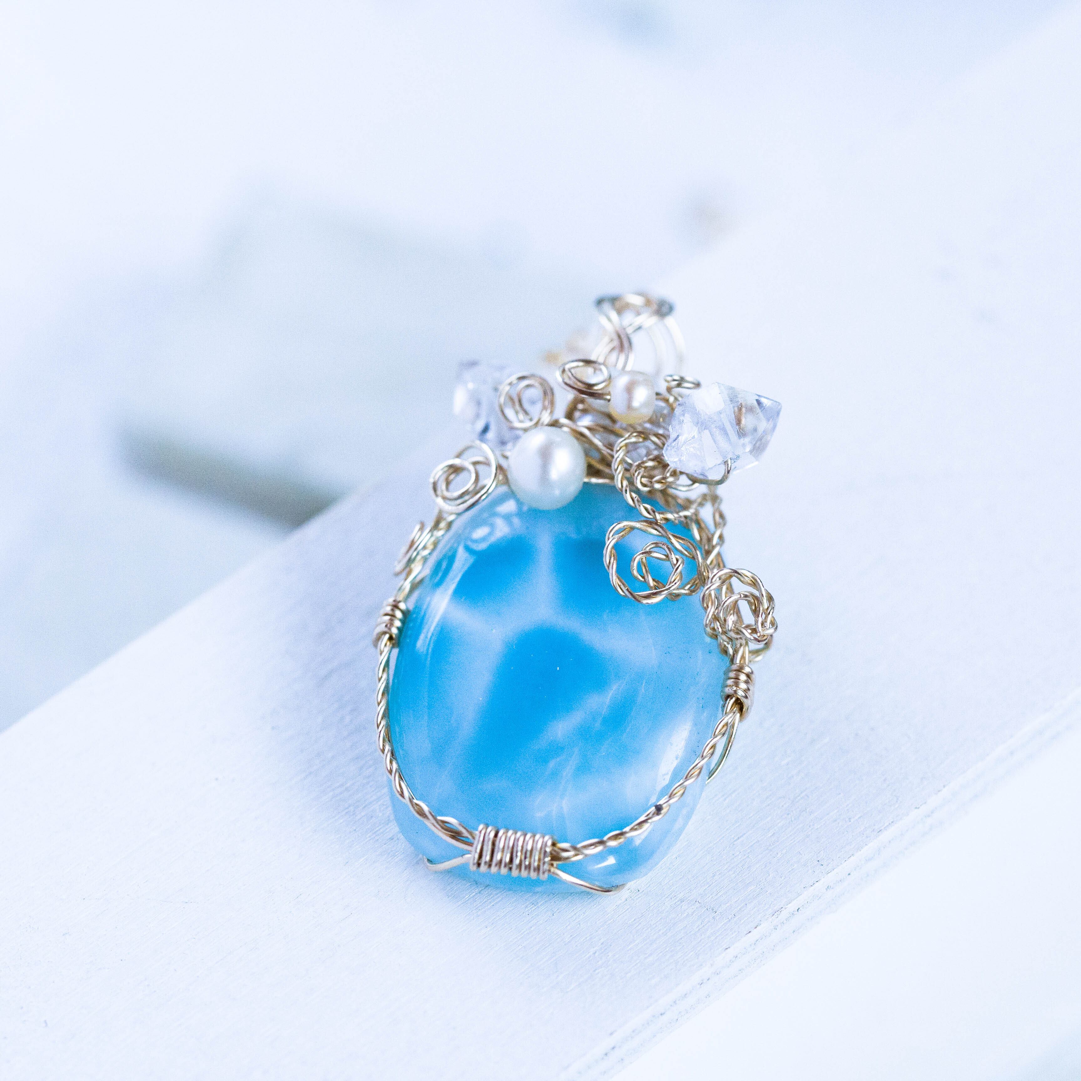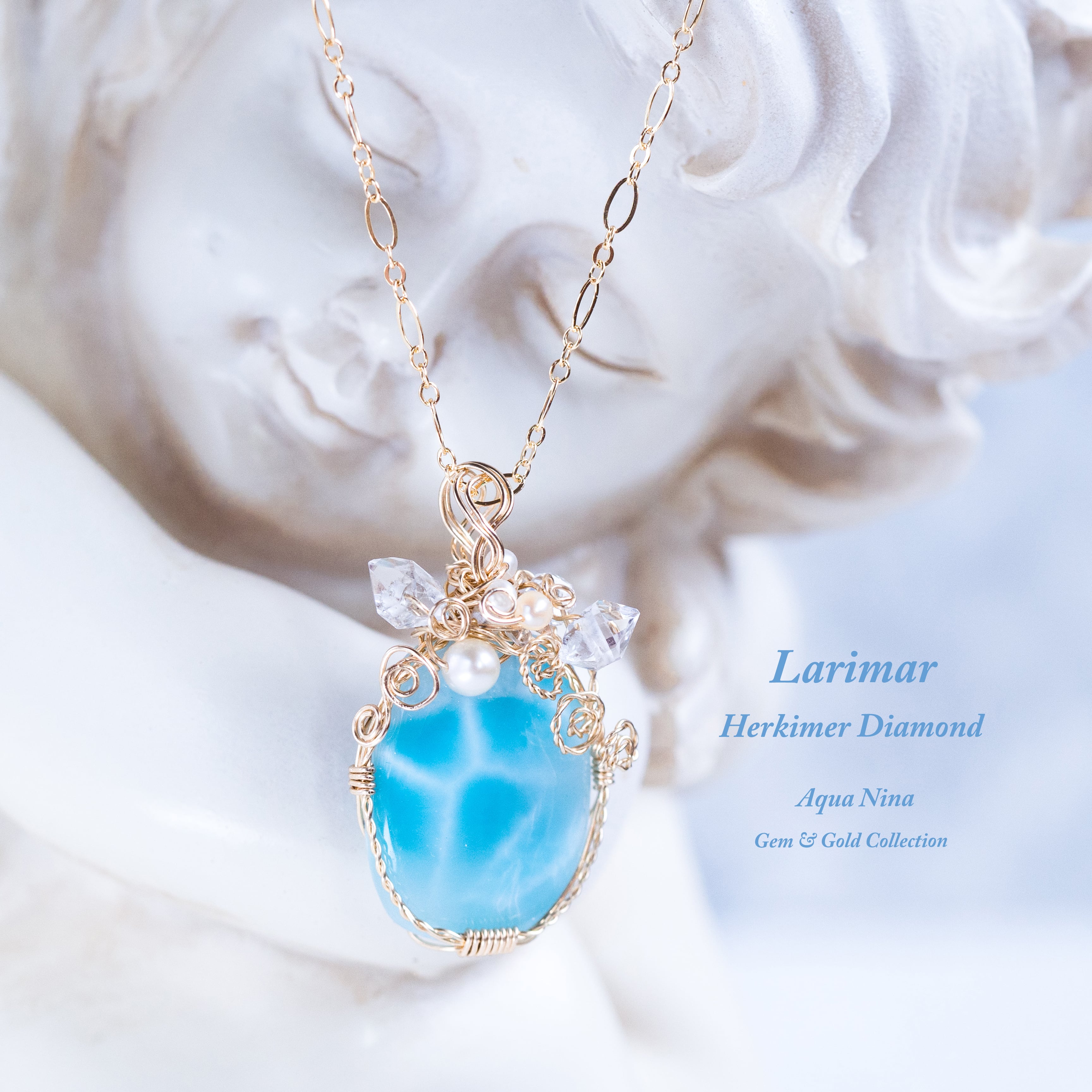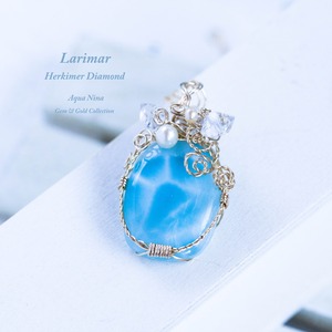 ♡水瓶座満月“スタージョンムーン”特別制作♡希少☆ラリマーとハーキマーダイヤモンドのペンダント《一点もの》14kgf