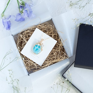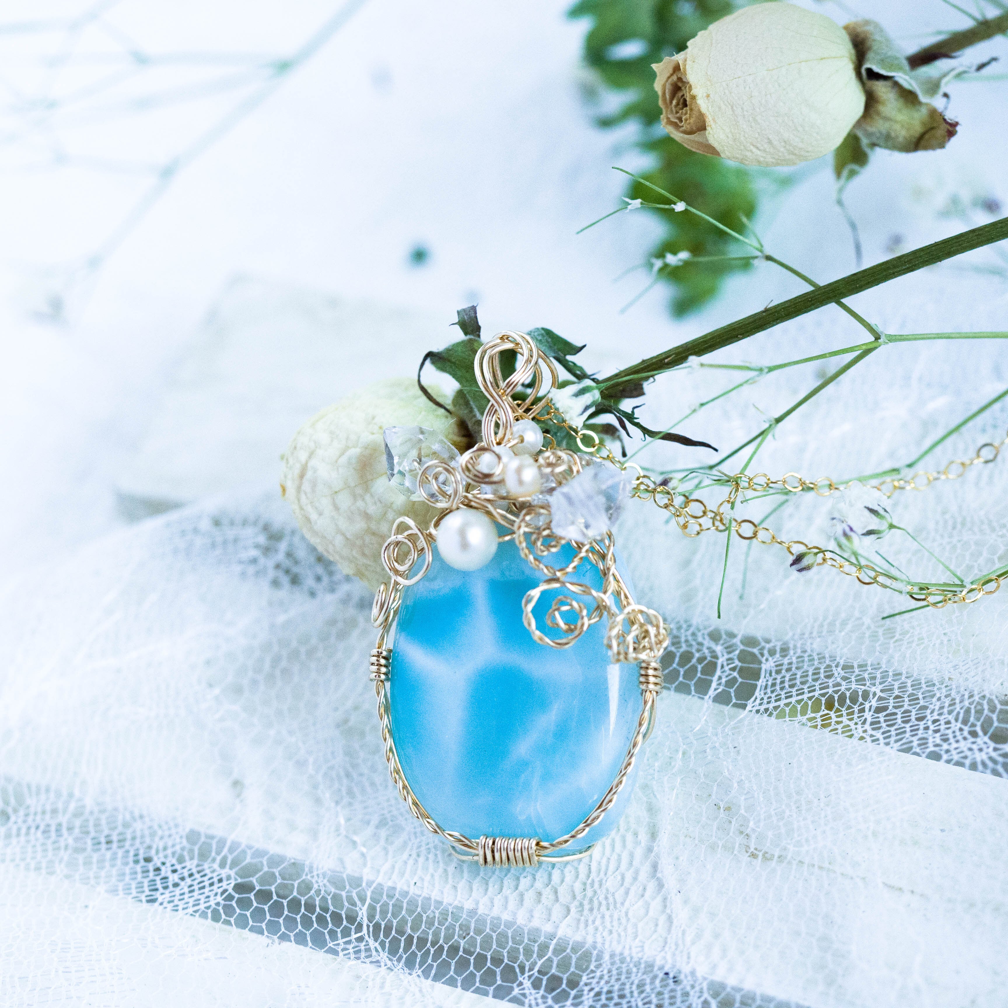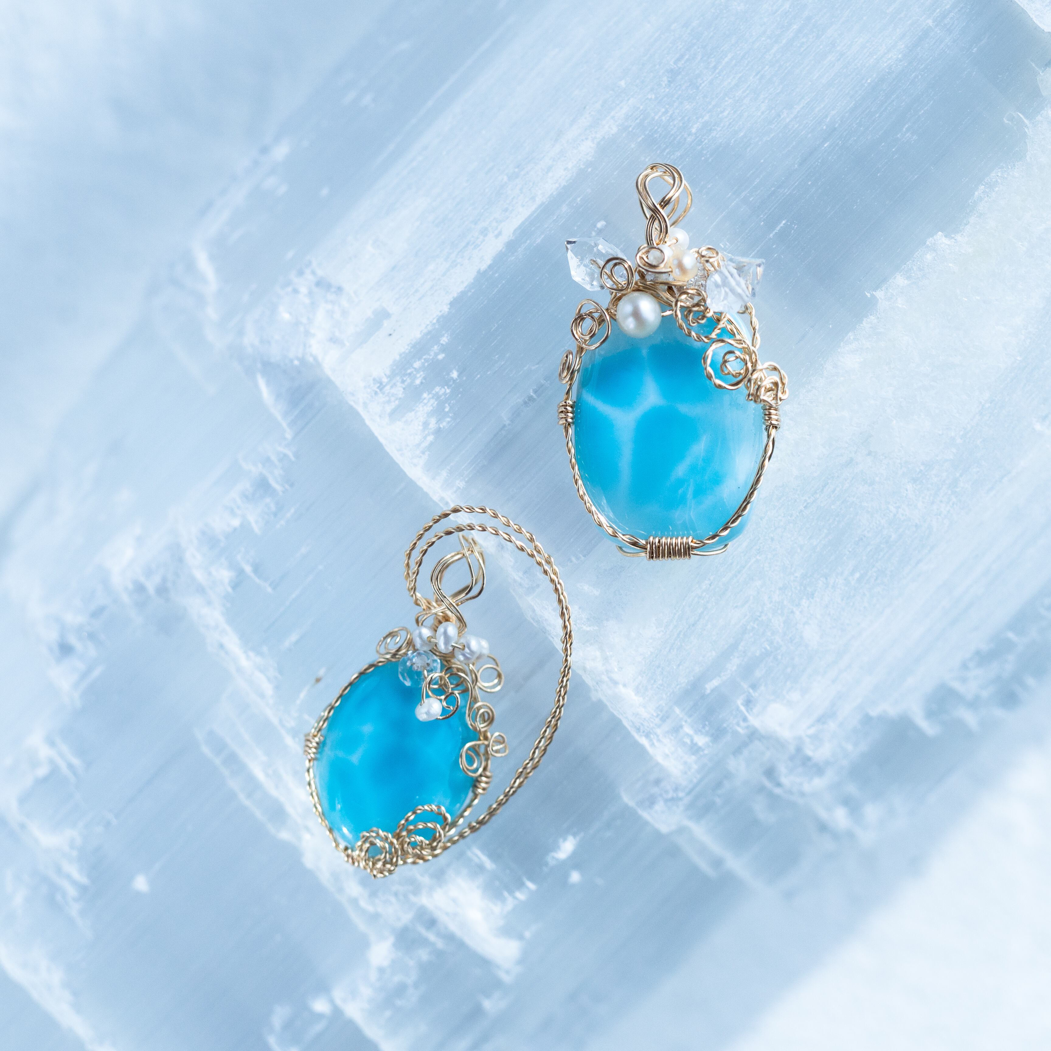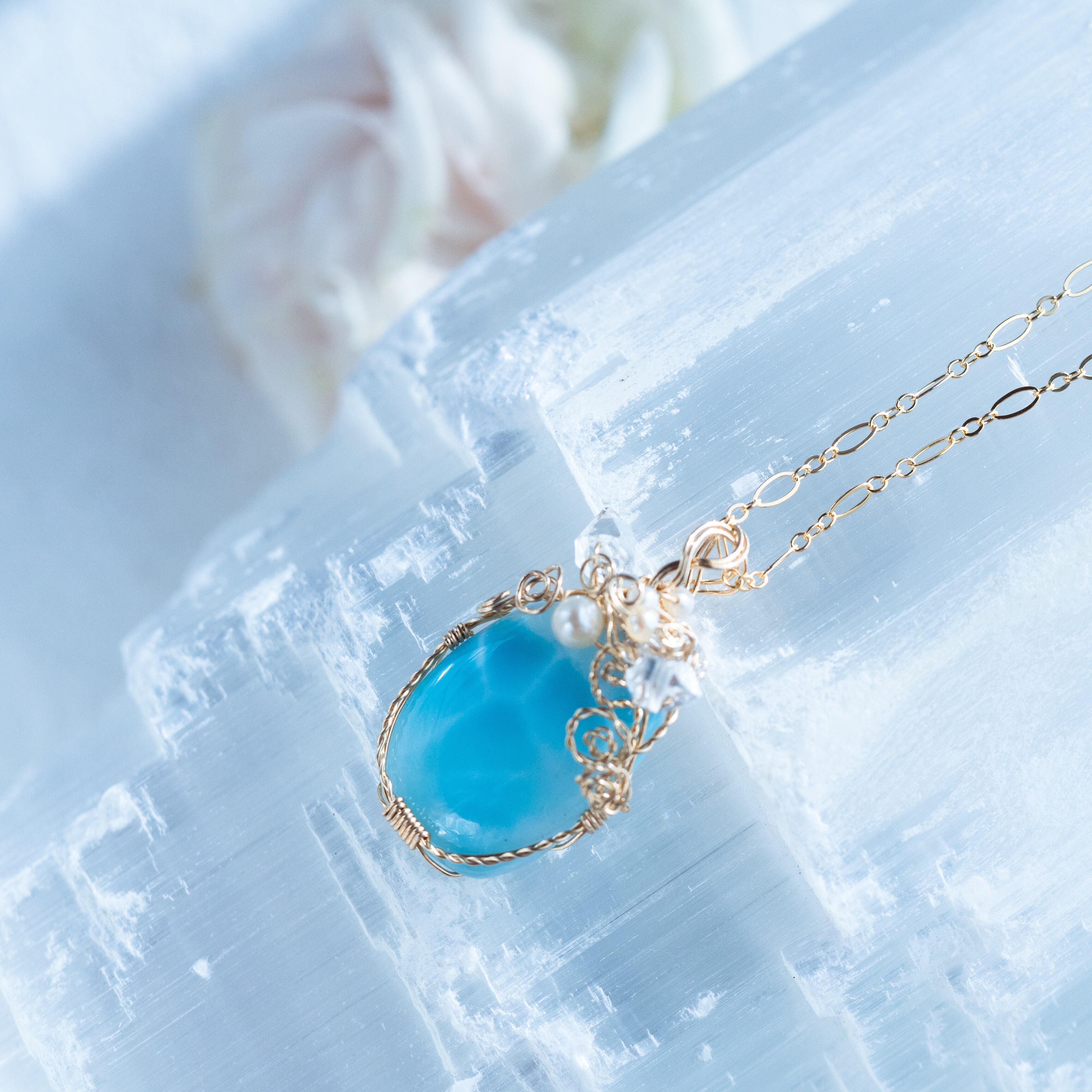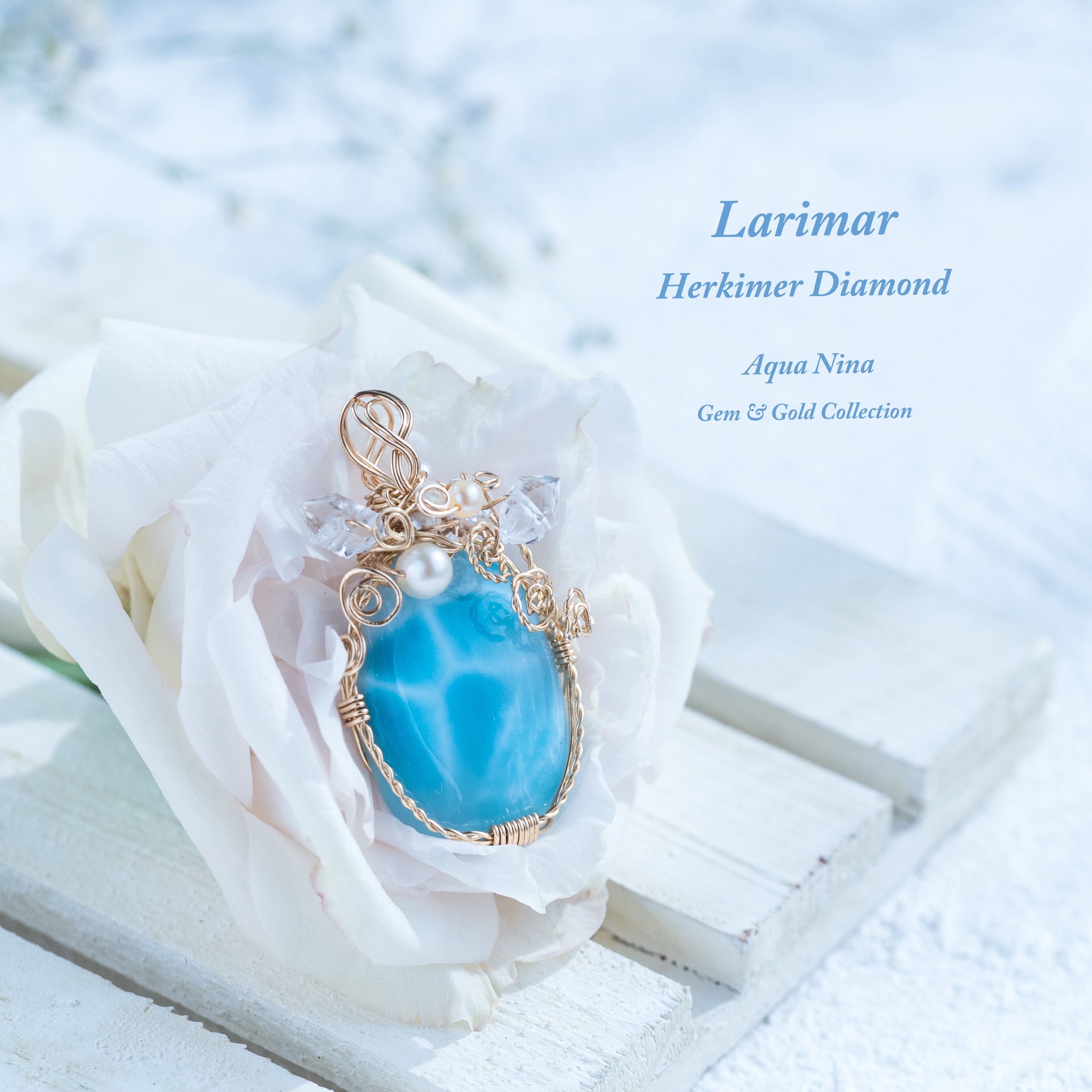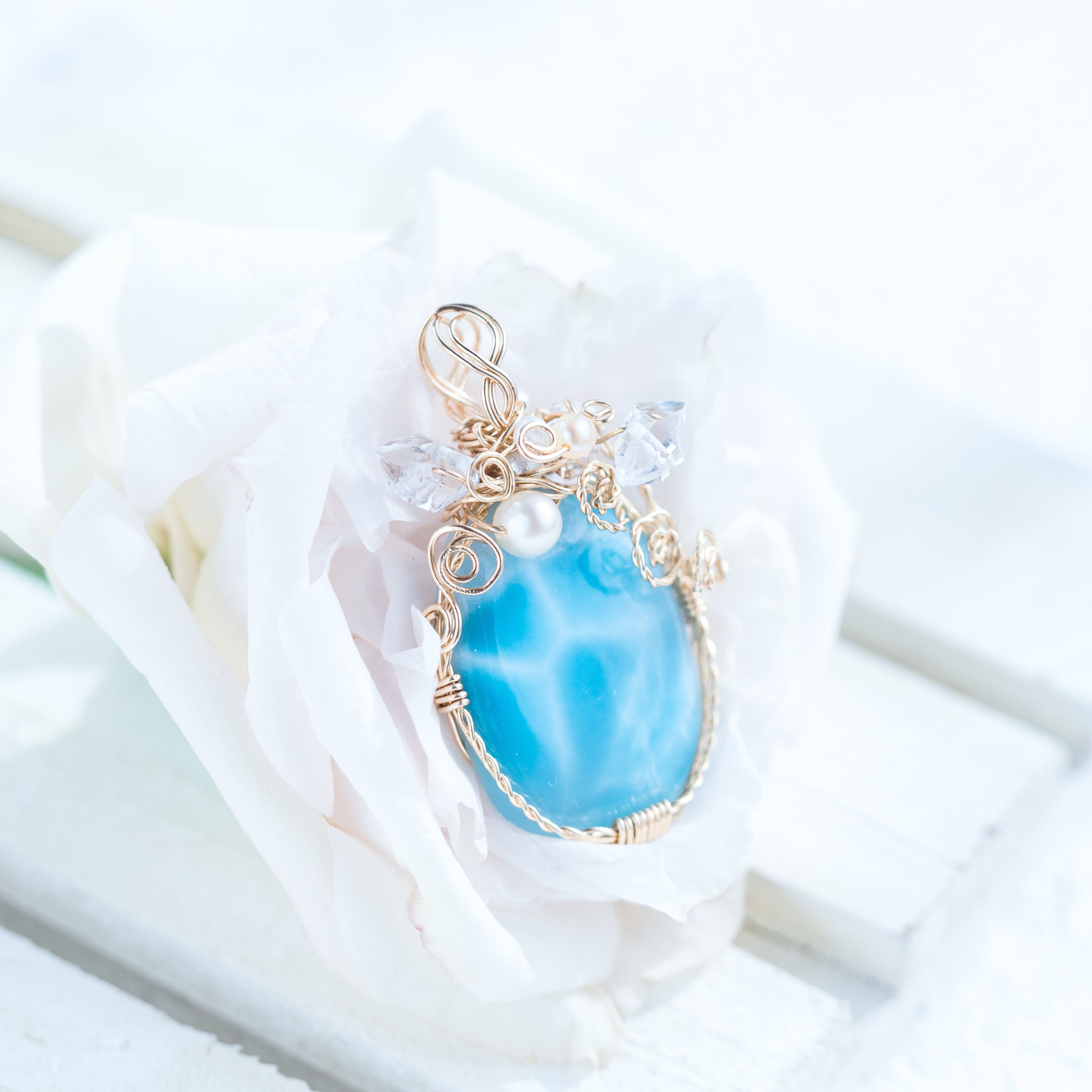 ♡水瓶座満月“スタージョンムーン”特別制作♡希少☆ラリマーとハーキマーダイヤモンドのペンダント《一点もの》14kgf