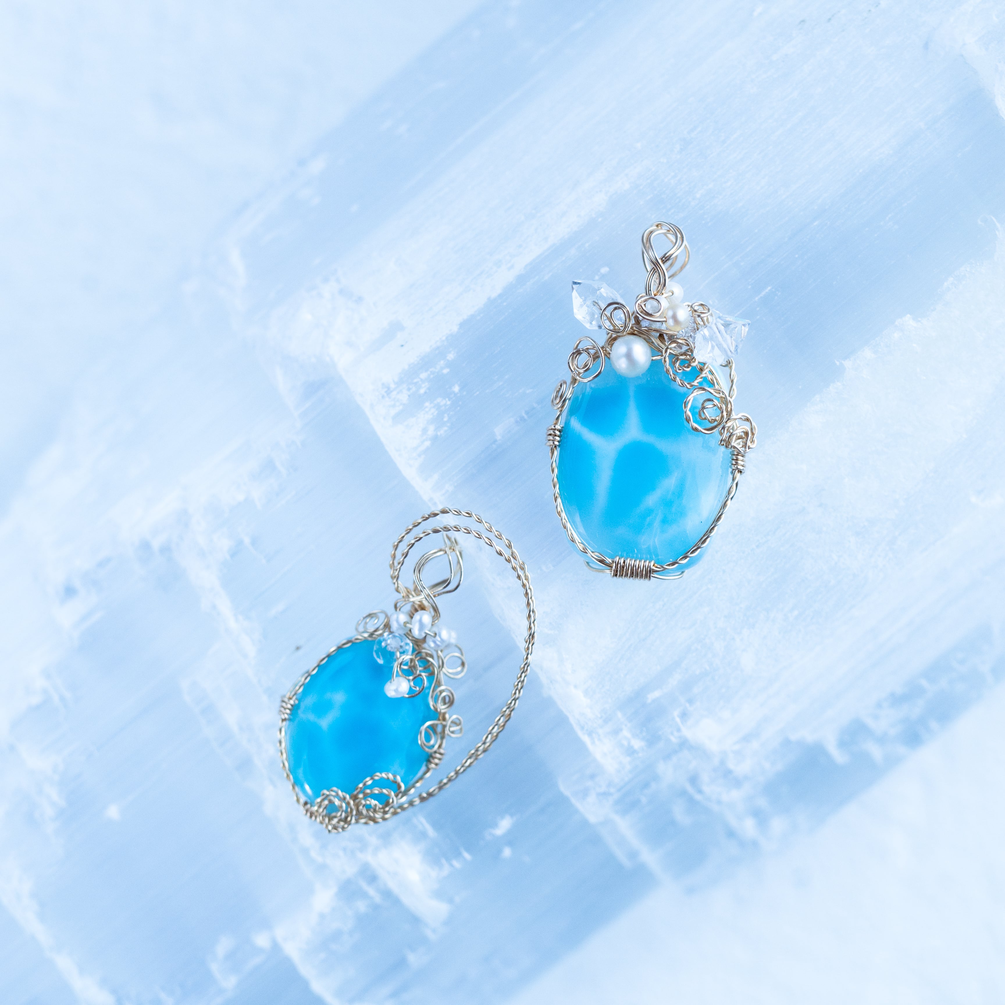 ♡ラリマーとハーキマーダイヤモンドのペンダント《一点もの》♡水瓶座満月“スタージョンムーン”特別制作♡希少14kgf