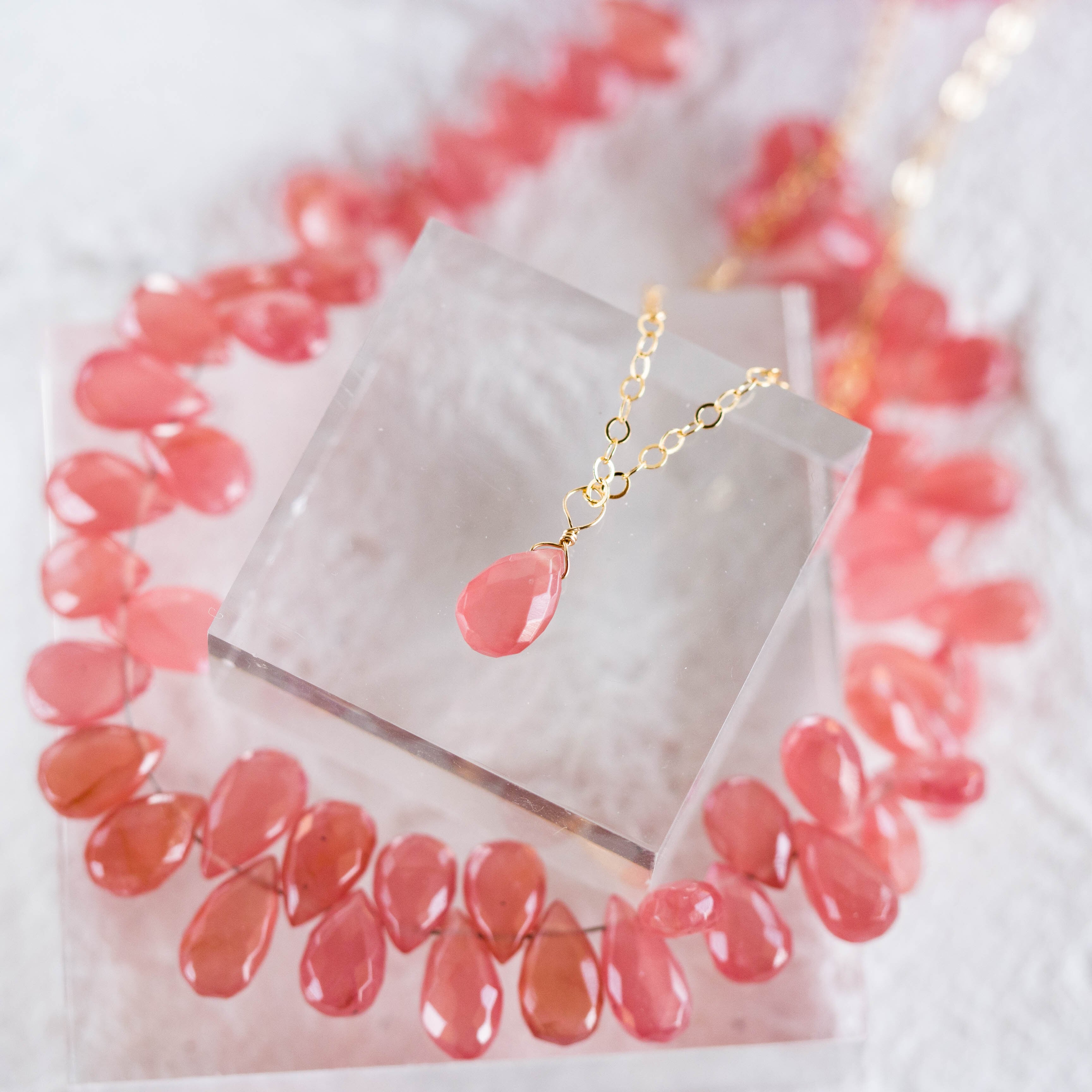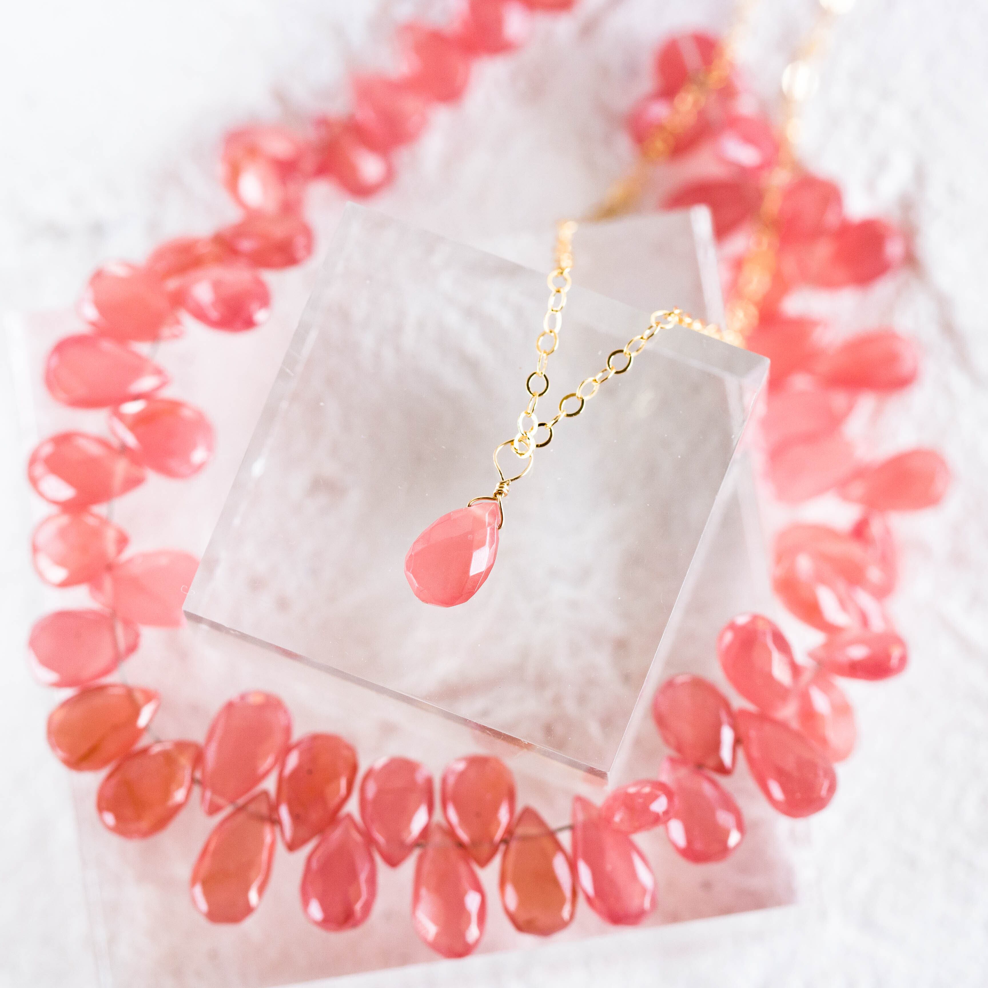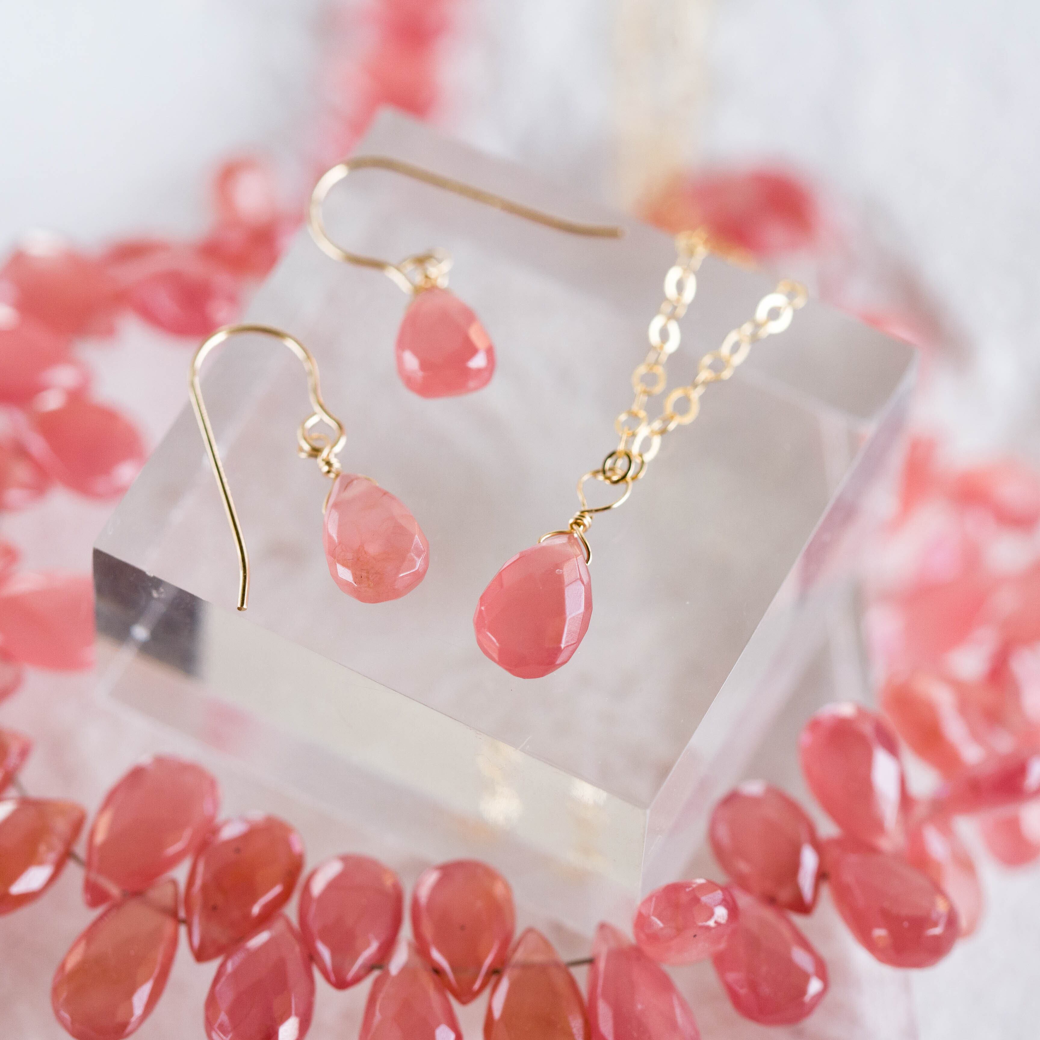 セット販売☆高品質インカローズ・ロードクロサイトファセットペアシェイプAAA★一粒ペンダントとピアス☆ギフトラッピング無料