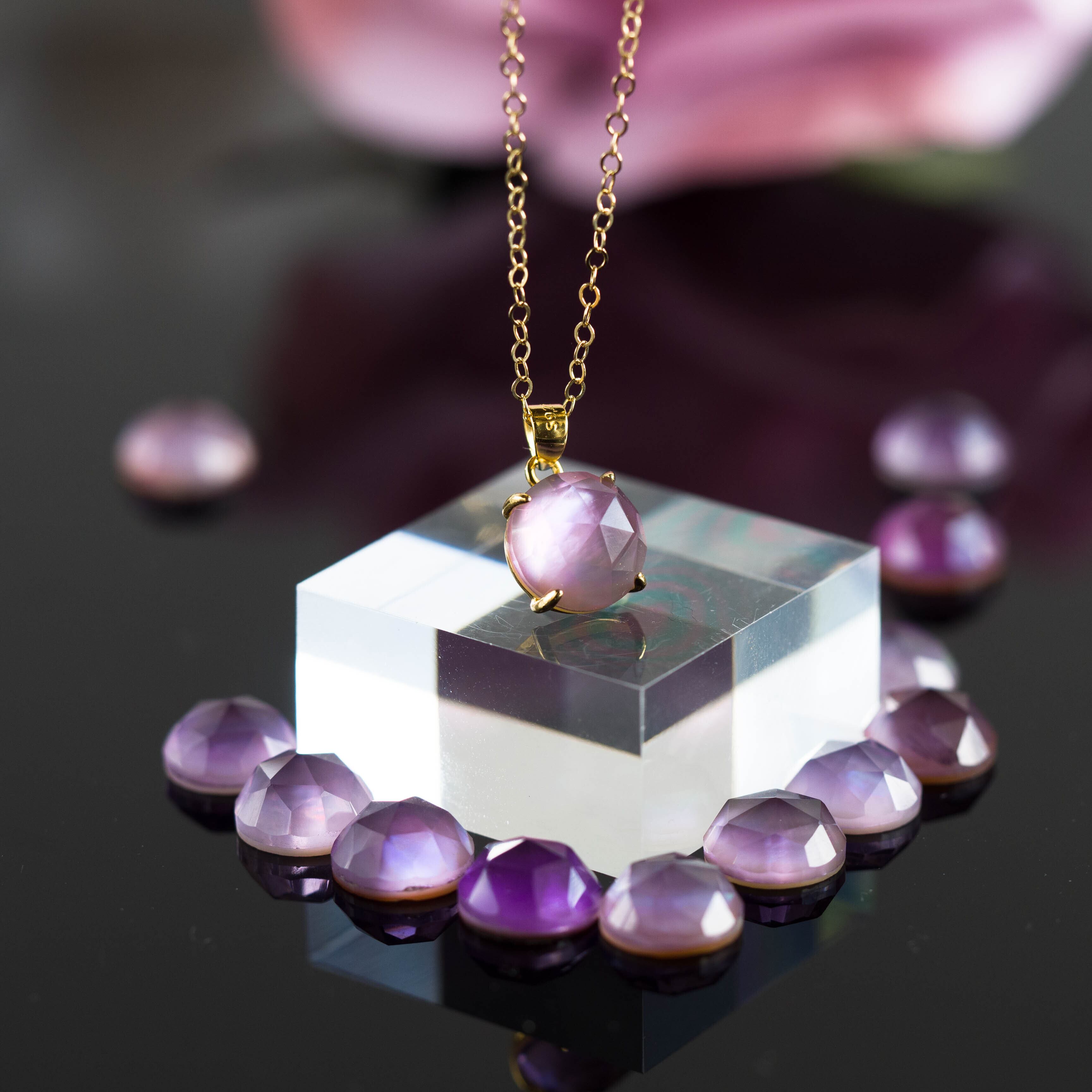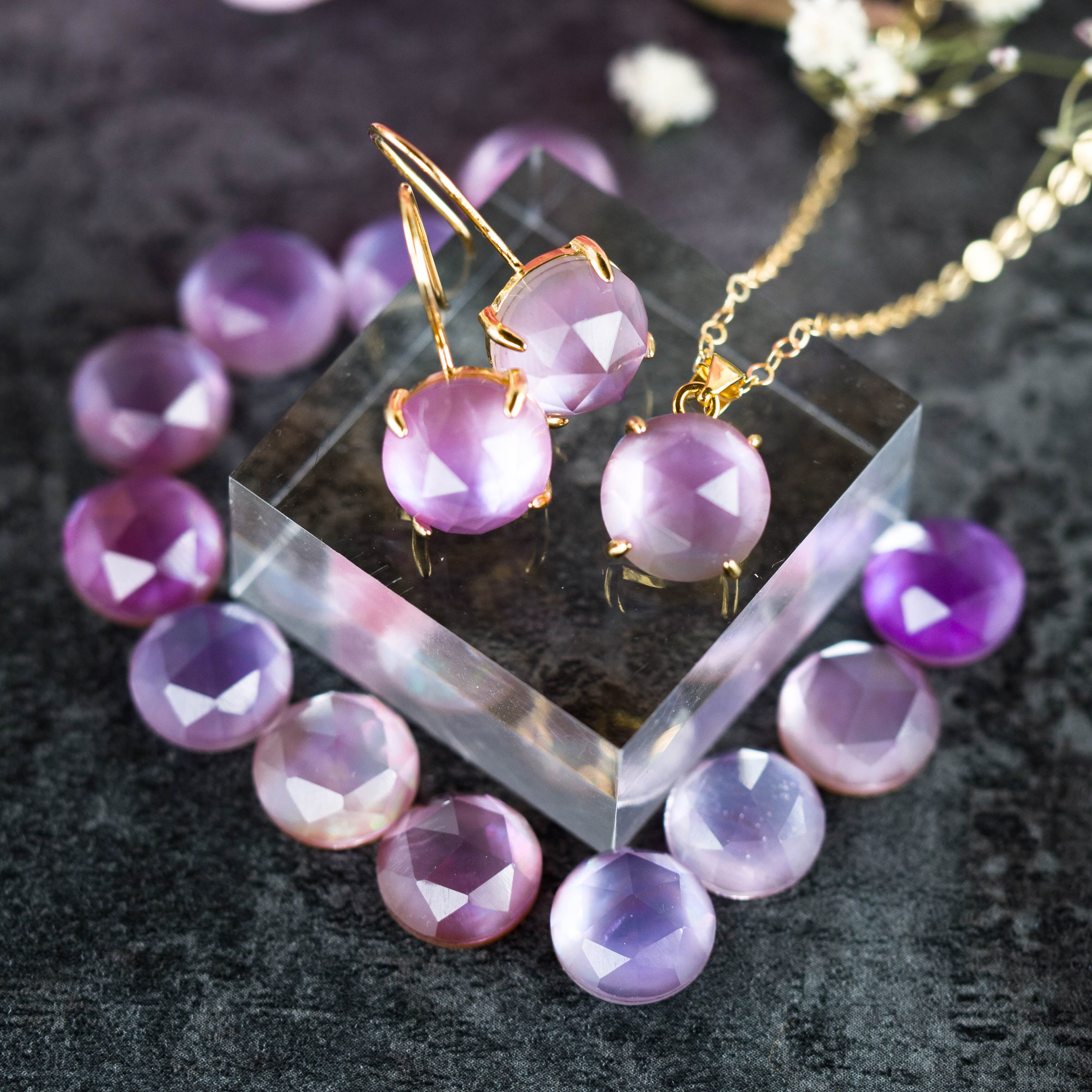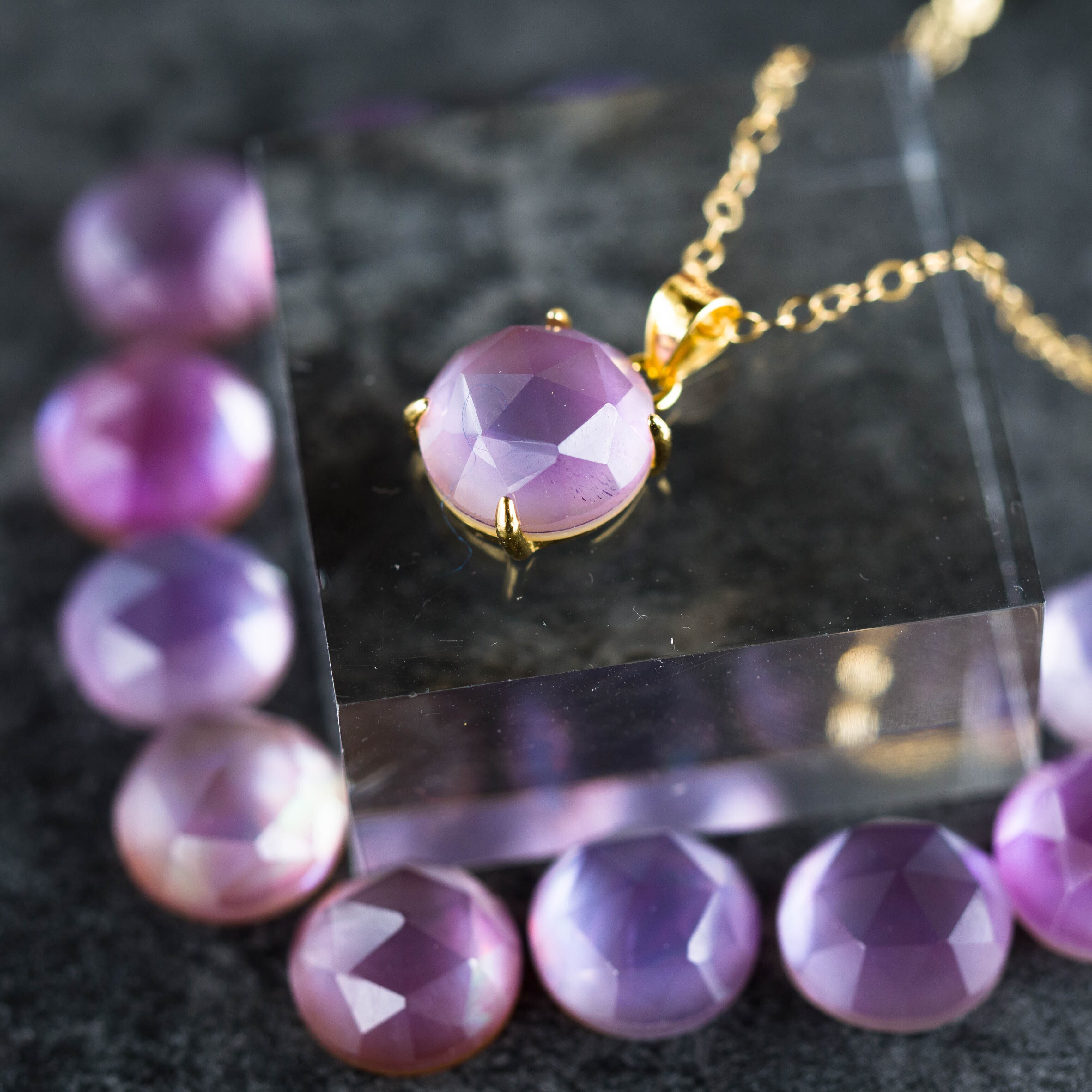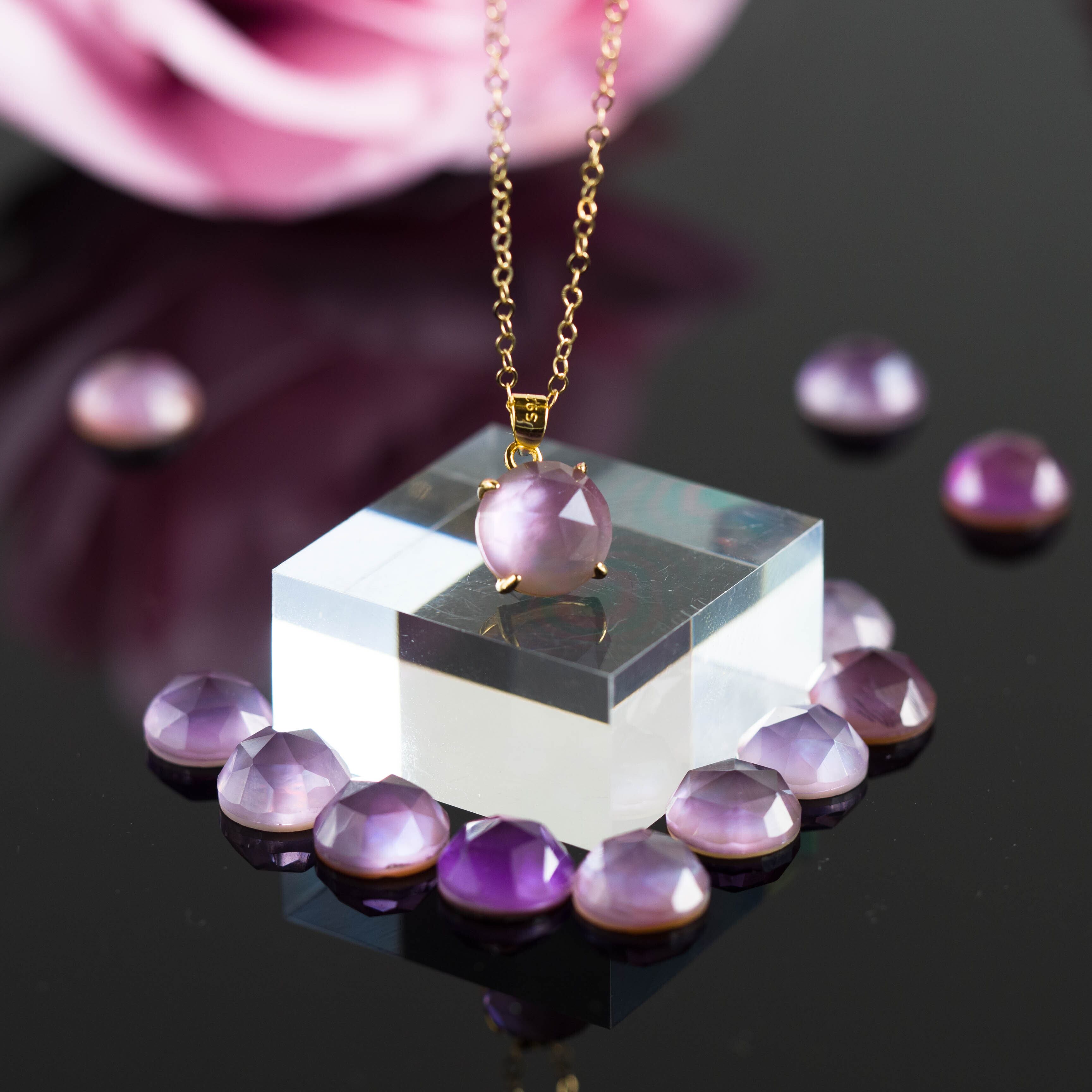 《Lilac / スミレ色の春~2月誕生石・宝石質アメジストとホワイトシェル(白蝶貝)・淡いパステルカラーのペンダント》