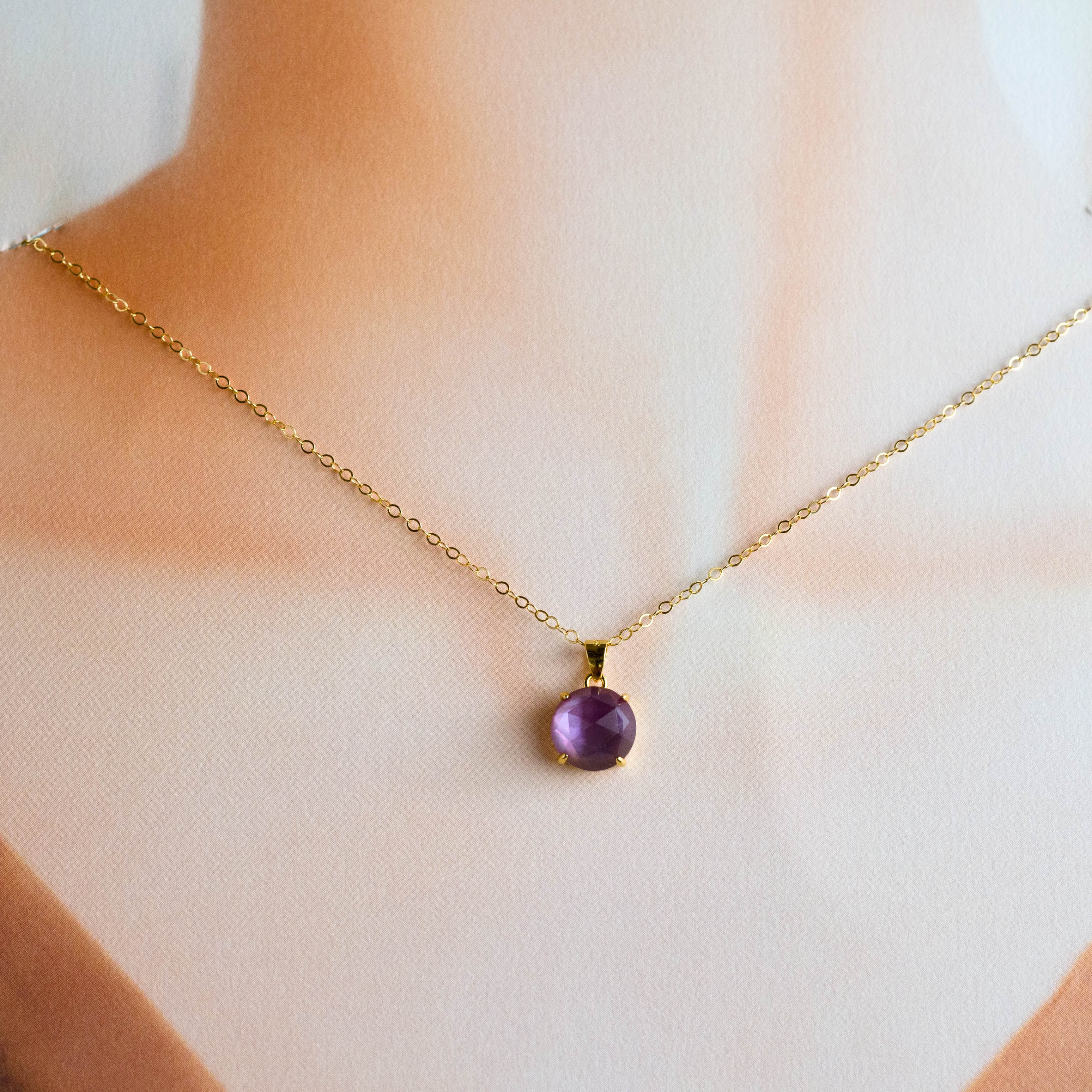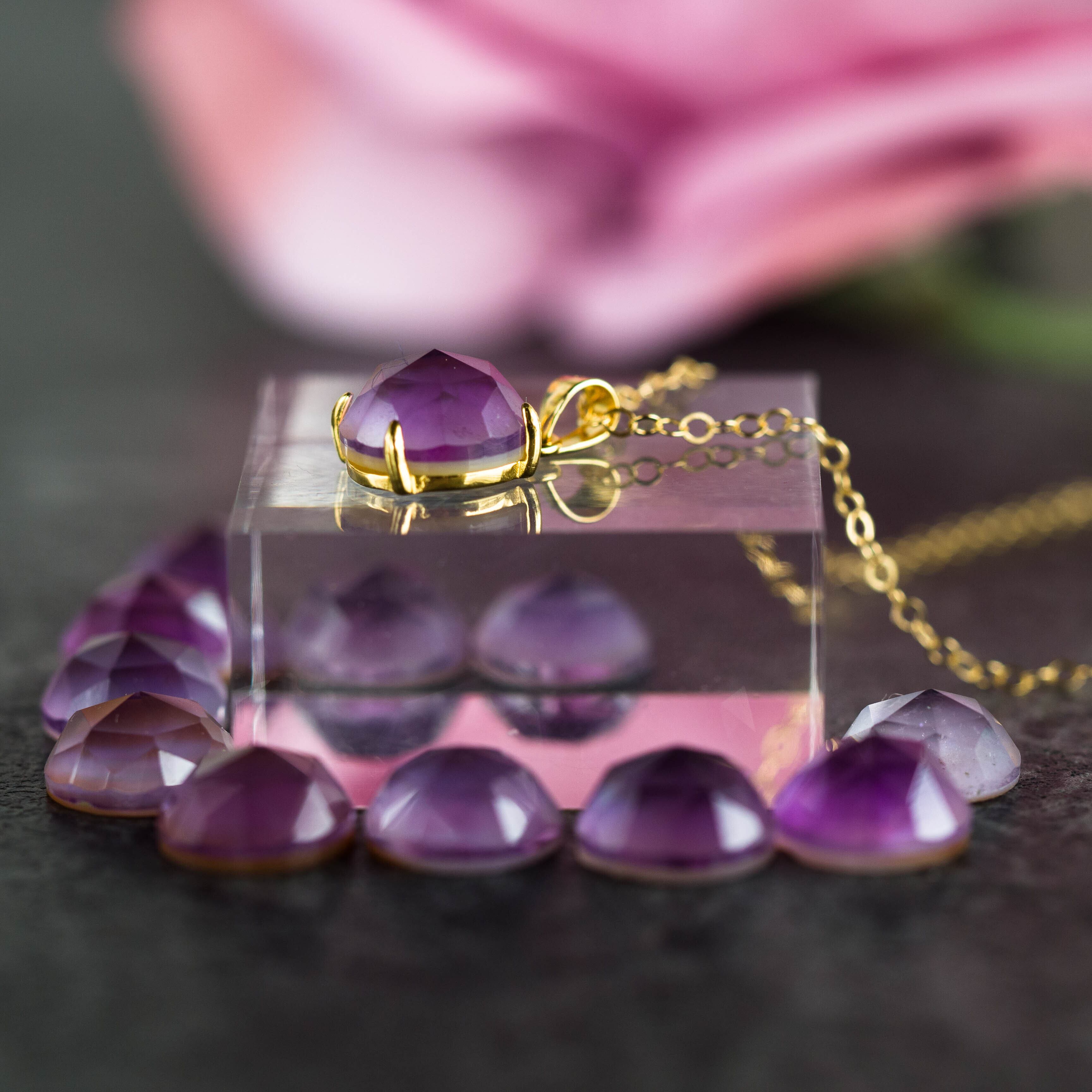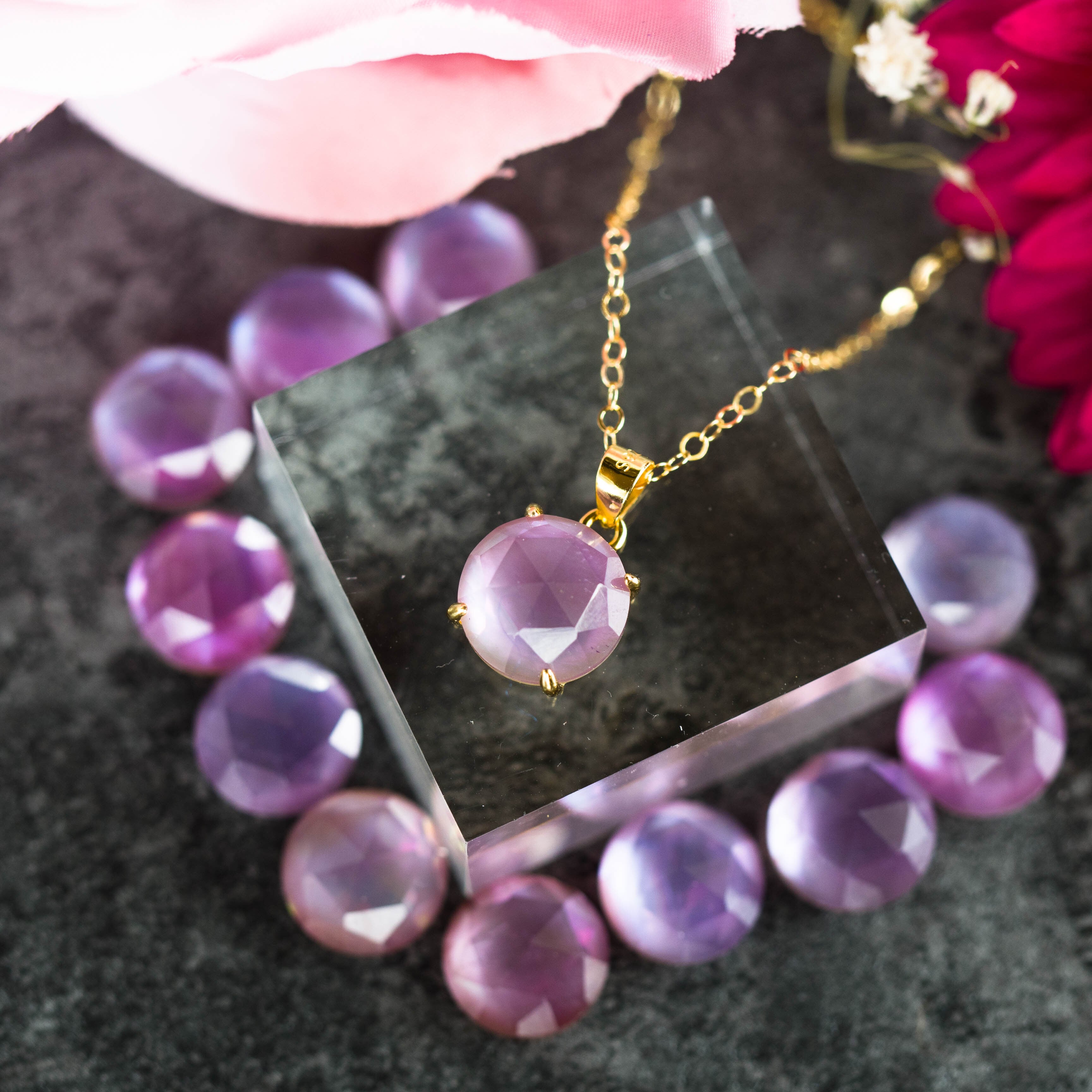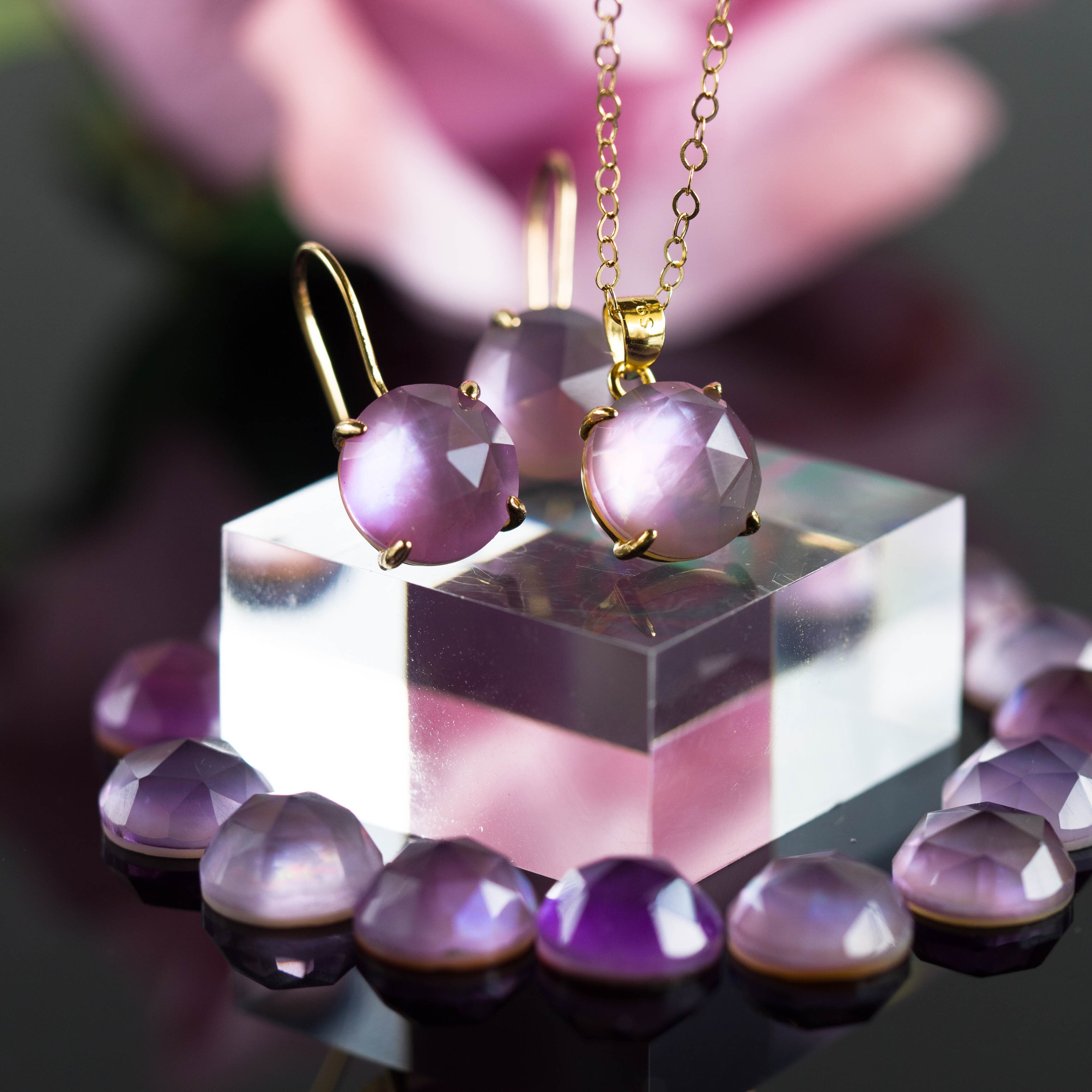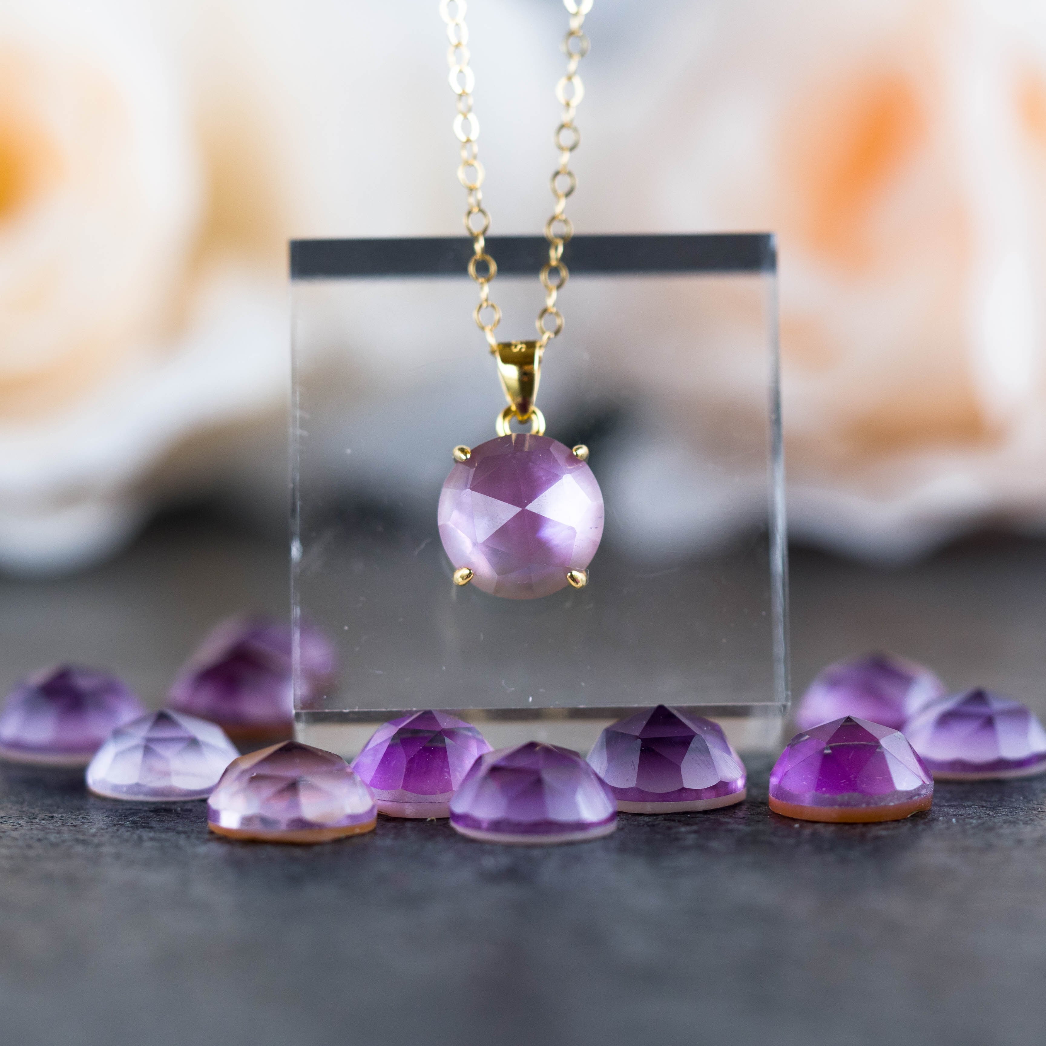 《Lilac / スミレ色の春~2月誕生石・宝石質アメジストとホワイトシェル(白蝶貝)・淡いパステルカラーのペンダント》