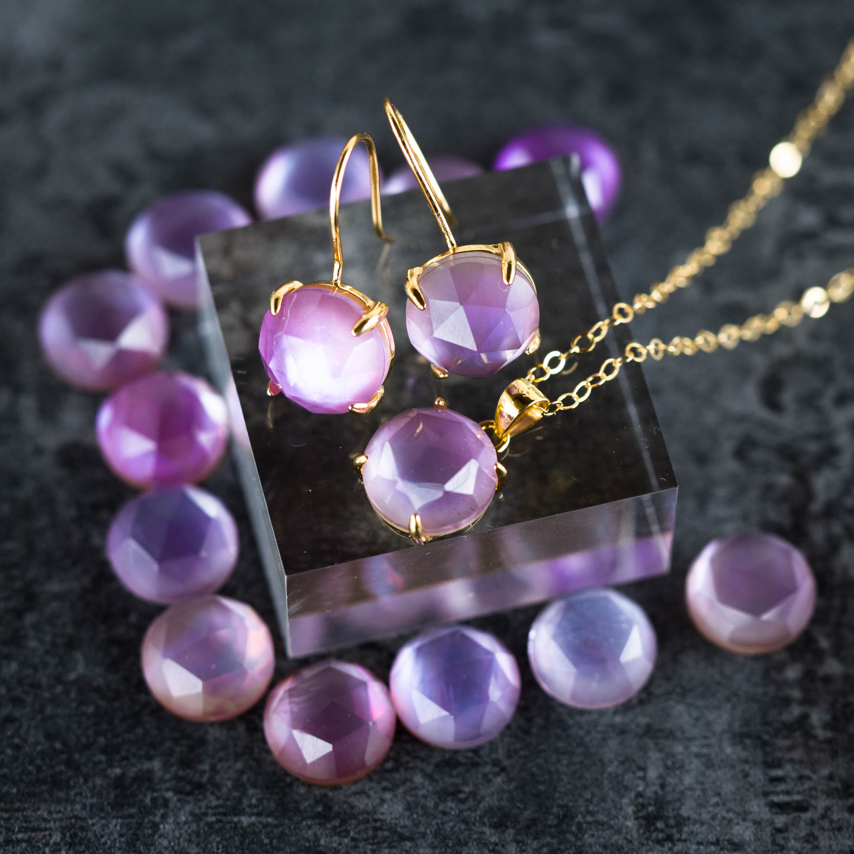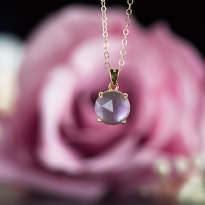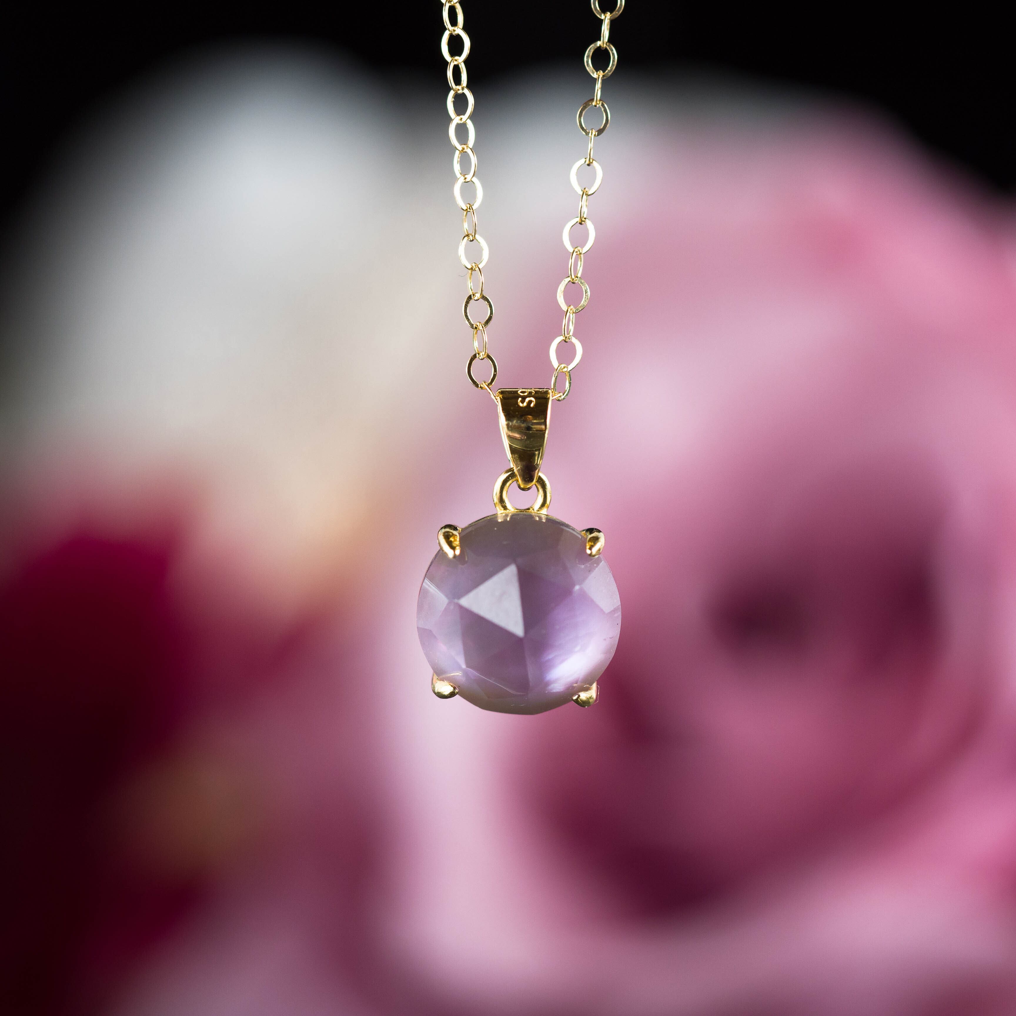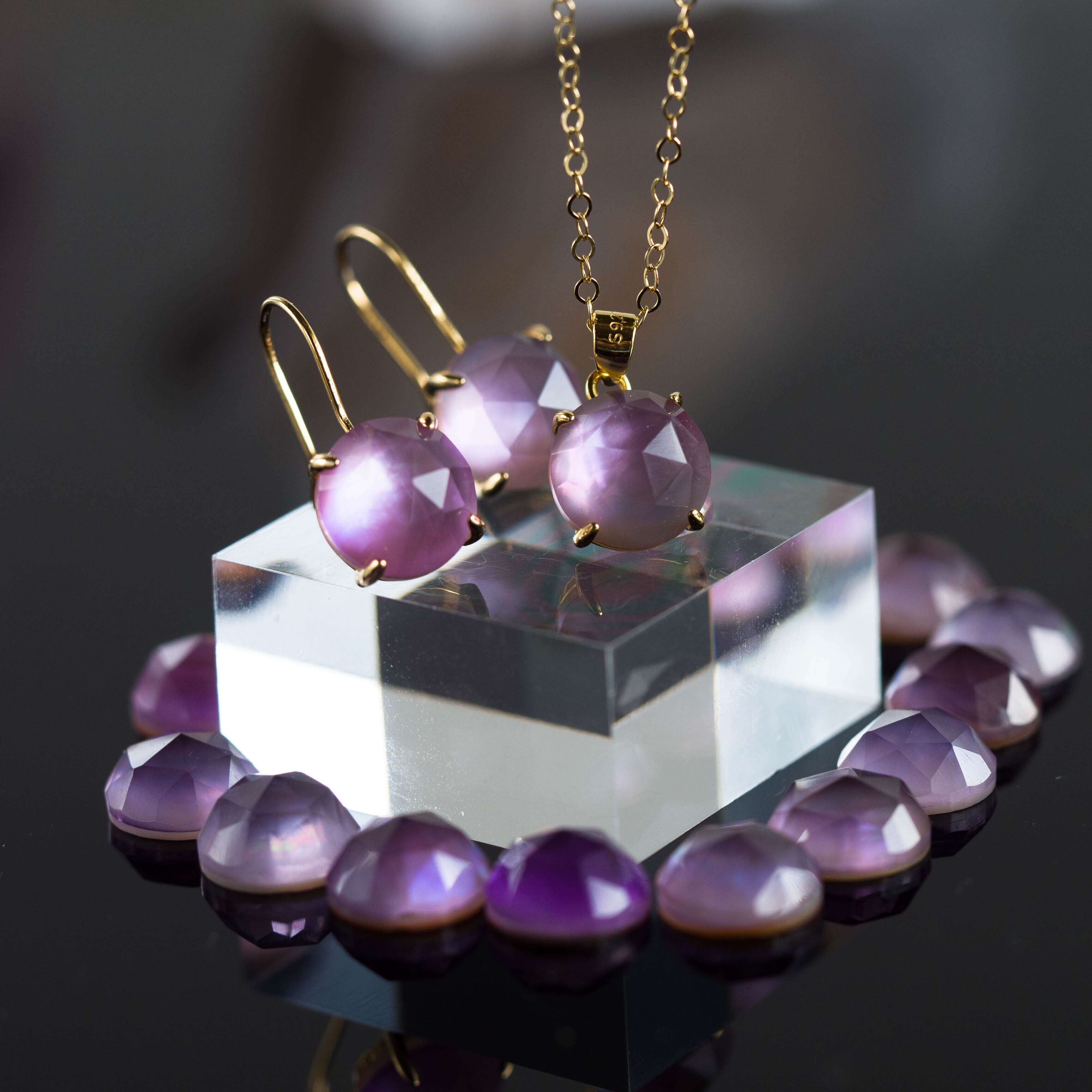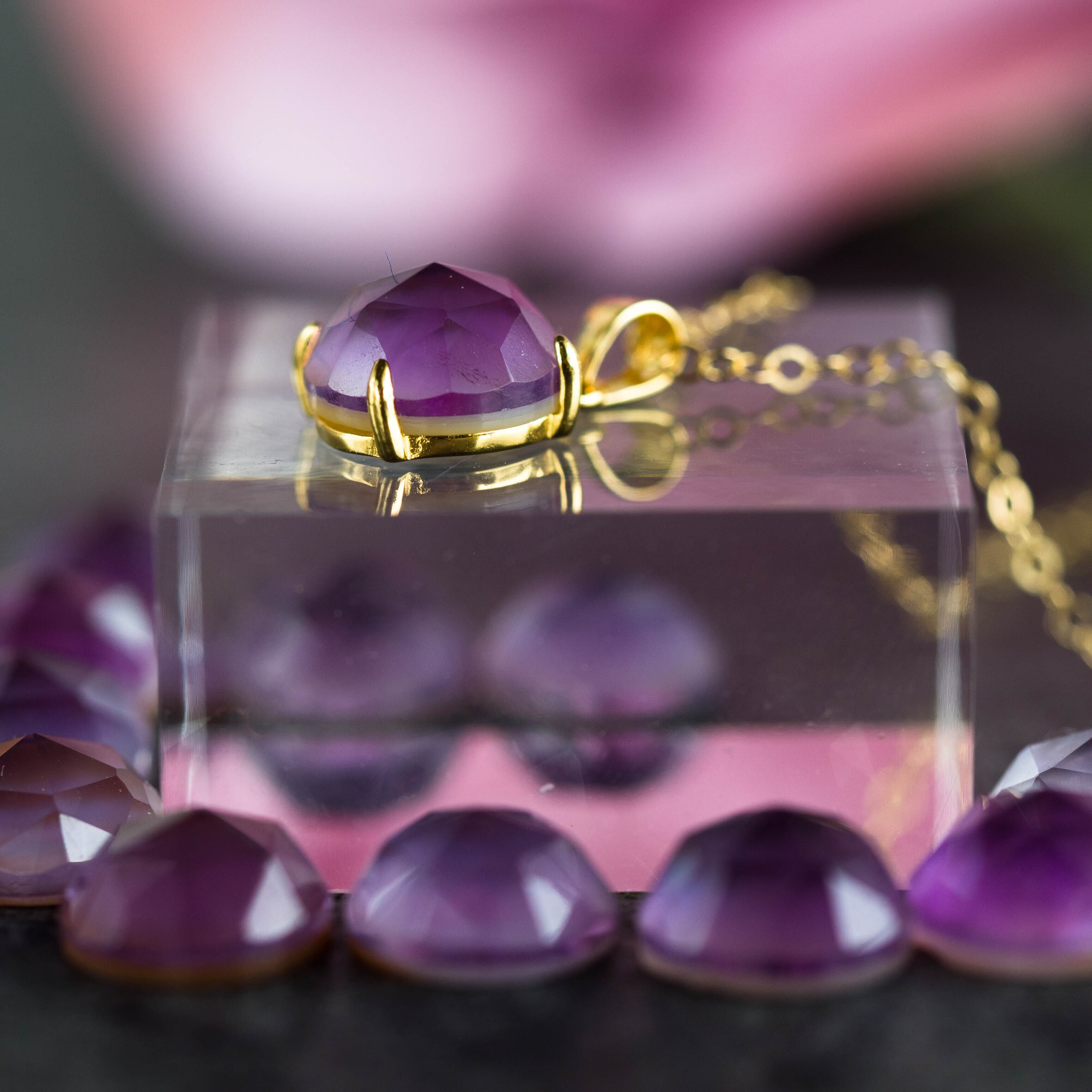 《Lilac / スミレ色の春~2月誕生石・宝石質アメジストとホワイトシェル(白蝶貝)・淡いパステルカラーのペンダント》